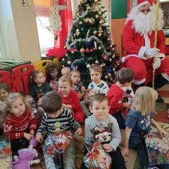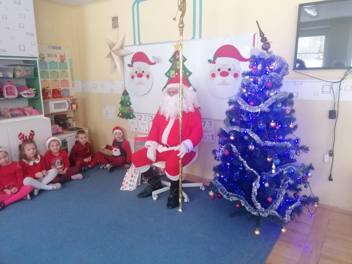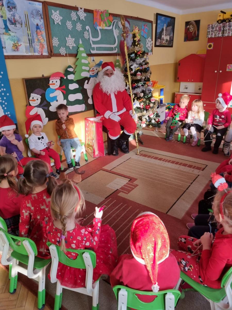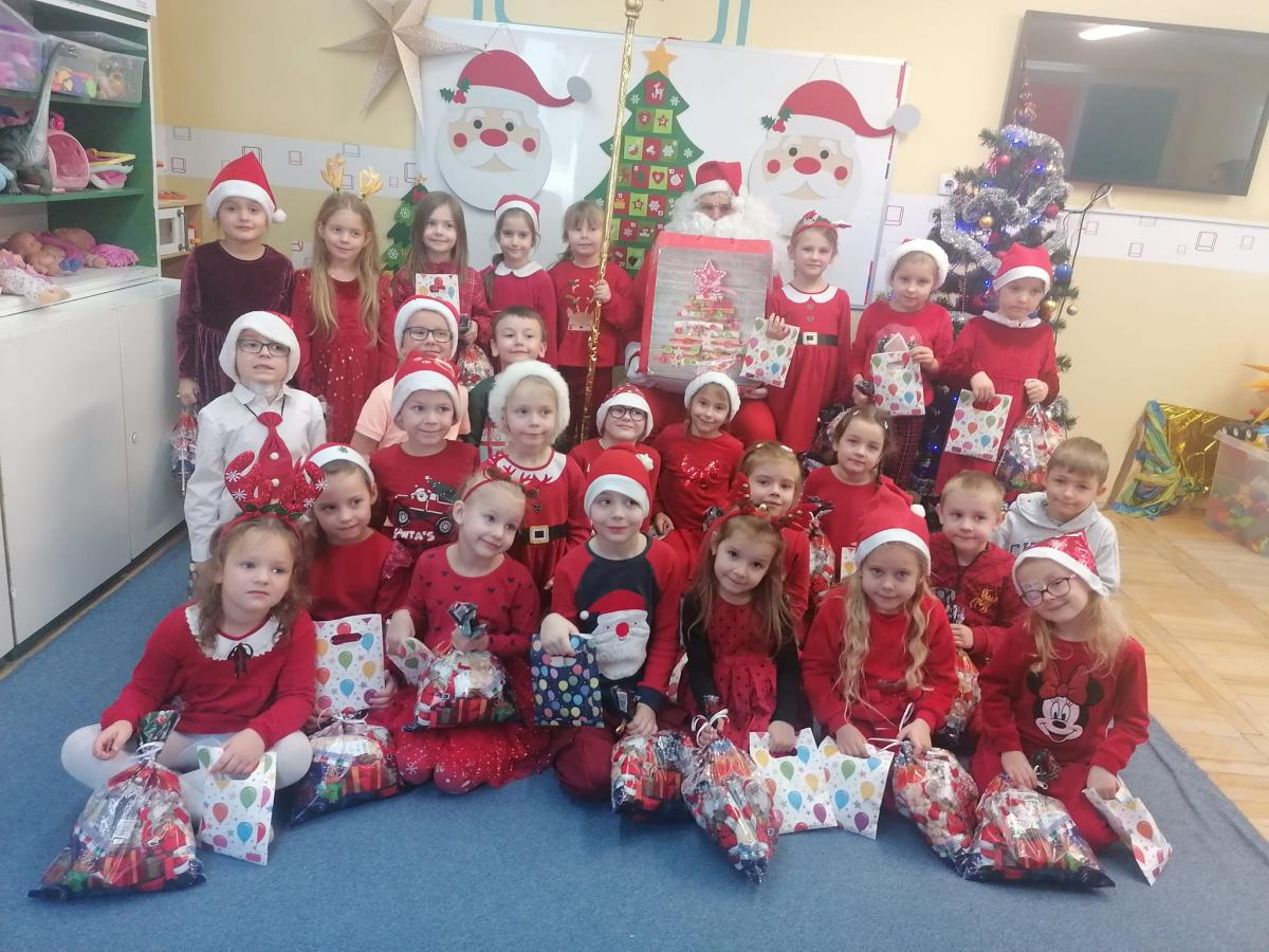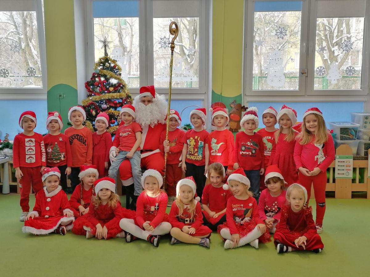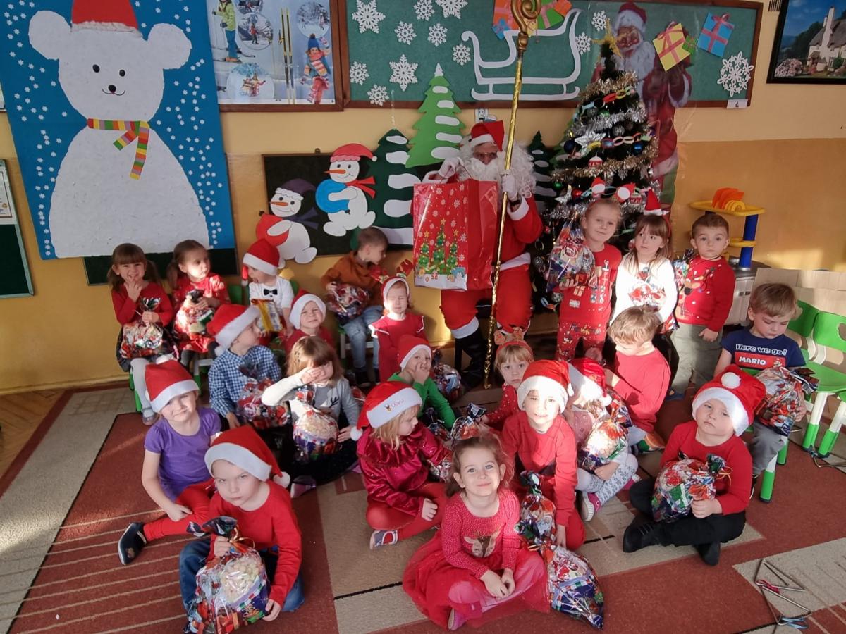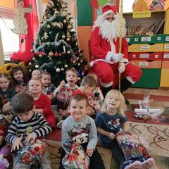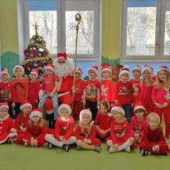 W środę, 6 grudnia wszystkie przedszkolaki z niecierpliwością wyglądały wizyty Świętego Mikołaja. Niezwykły gość przyniósł wszystkim dzieciom słodkie upominki. Dzieci z radością powitały go śpiewem świątecznych piosenek. Święty Mikołaj, ubrany w charakterystyczny czerwony strój, z workiem prezentów, rozmawiał z przedszkolakami słuchając ich marzeń i pytań. Po tak niezwykłej wizycie wszystkie dzieci czuły się wyjątkowo!