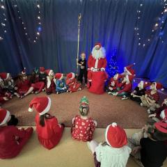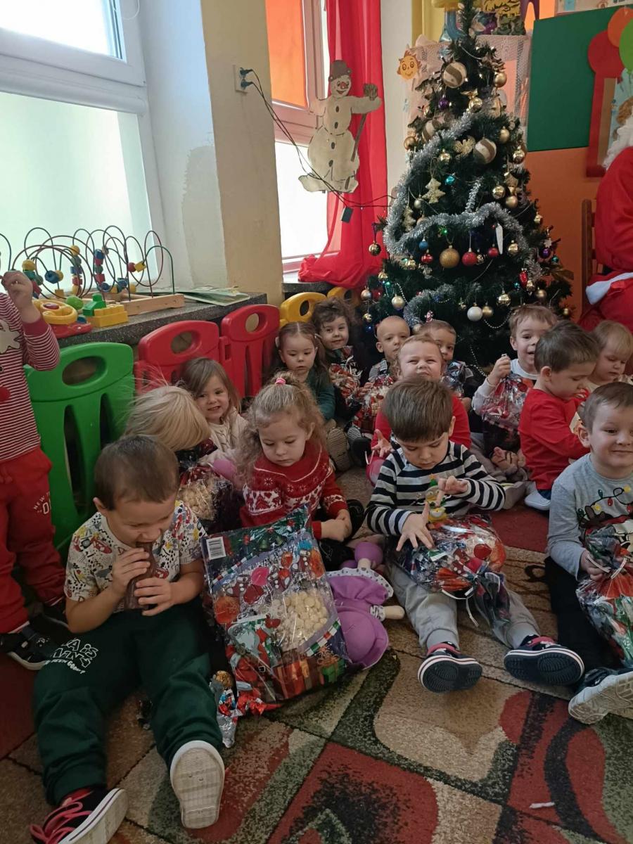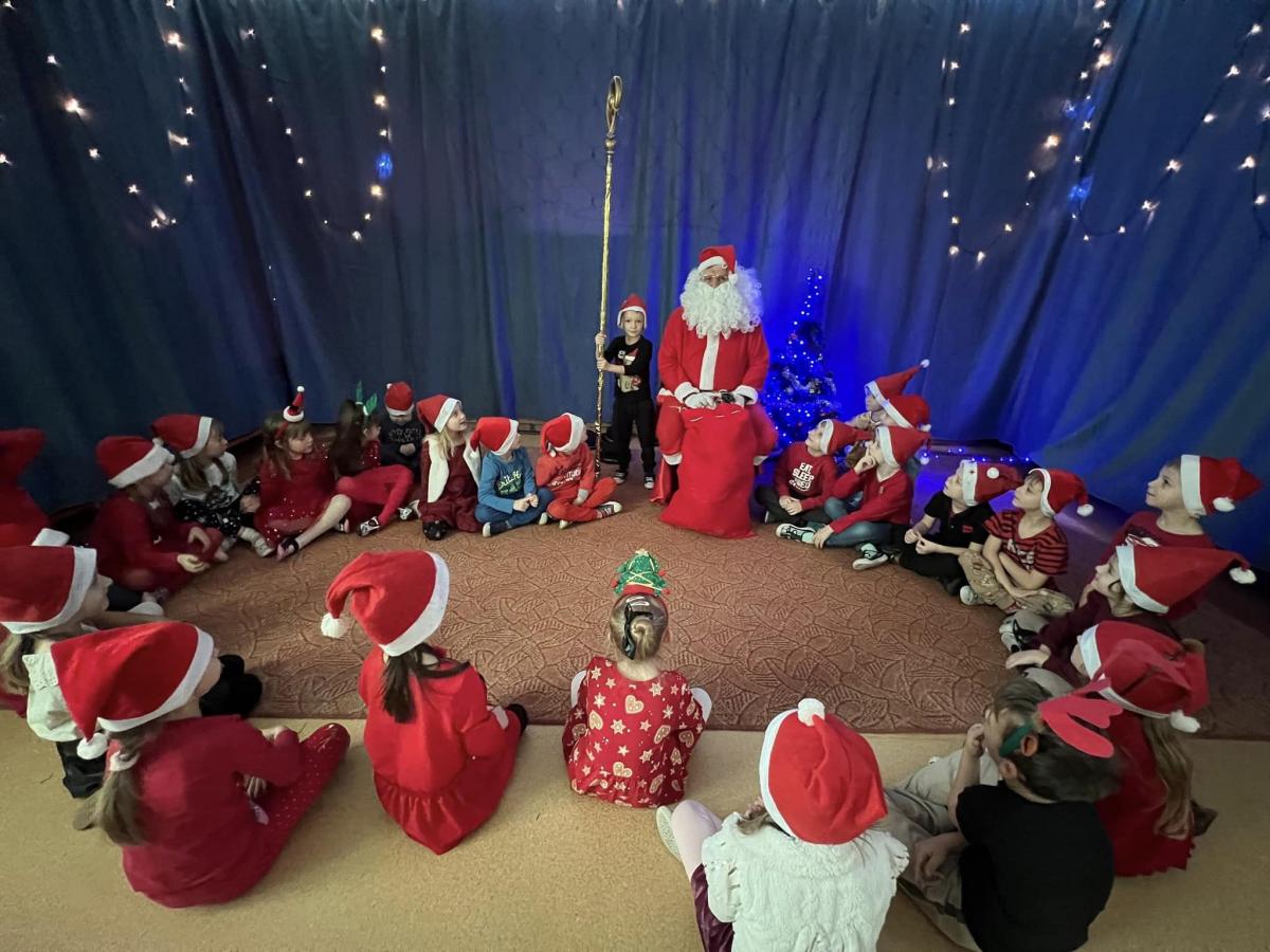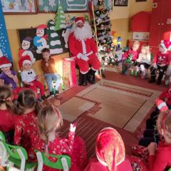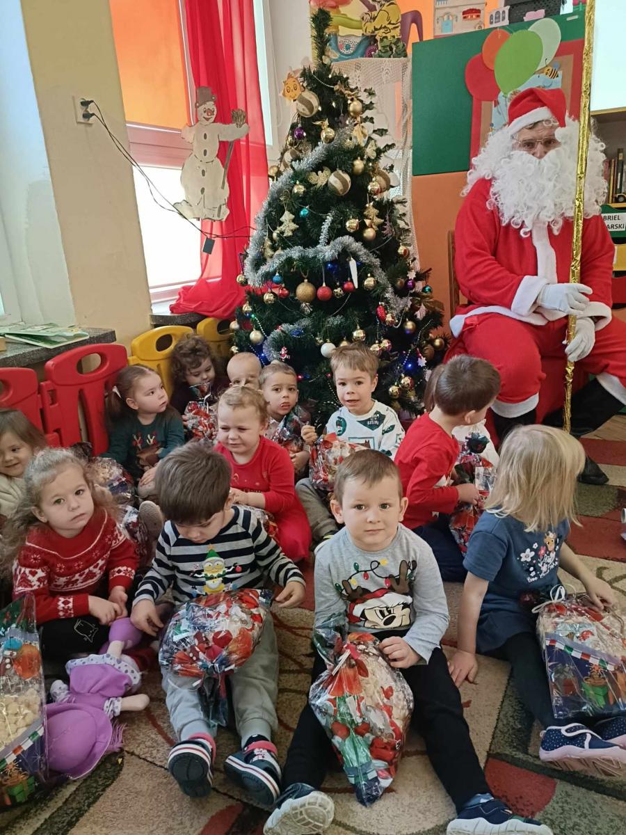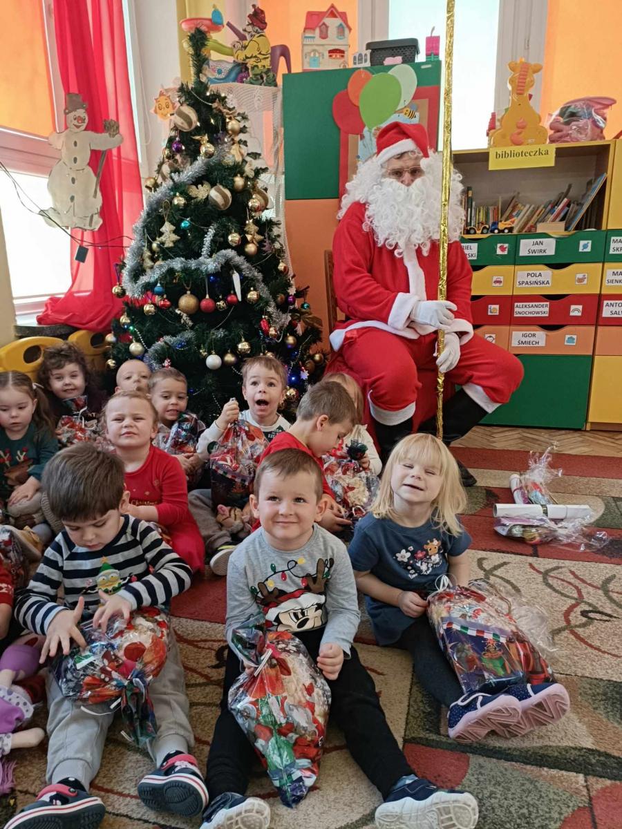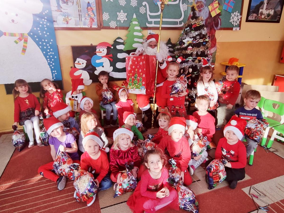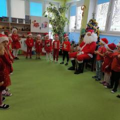 W środę, 6 grudnia wszystkie przedszkolaki z niecierpliwością wyglądały wizyty Świętego Mikołaja. Niezwykły gość przyniósł wszystkim dzieciom słodkie upominki. Dzieci z radością powitały go śpiewem świątecznych piosenek. Święty Mikołaj, ubrany w charakterystyczny czerwony strój, z workiem prezentów, rozmawiał z przedszkolakami słuchając ich marzeń i pytań. Po tak niezwykłej wizycie wszystkie dzieci czuły się wyjątkowo!