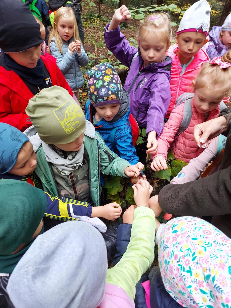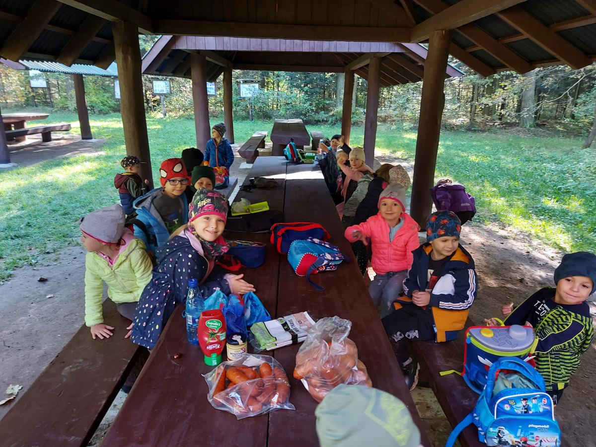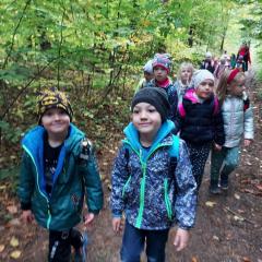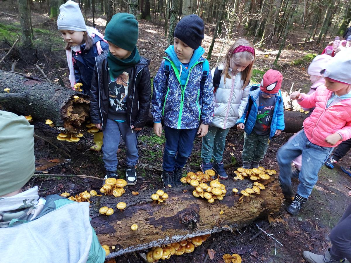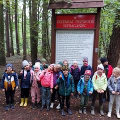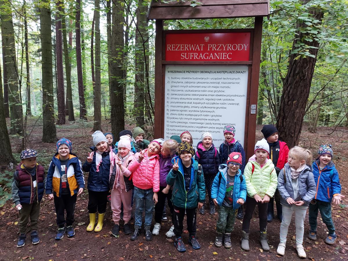 Wiele przyrodniczych ciekawostek czekało na Biedroneczki w Rezerwacie Przyrody Sufraganiec. Dzieci przeszły scieżką edukacyjną, aż do polany gdzie rozpaliliśmy ognisko i jedliśmy pyszne kiełbaski. Podczas wycieczki przedszkolaki rozróżniały drzewa iglaste od liściastych, dowiedziały się jak należy zachowywać si w lesie, czyim jest domem, i jak rozpoznawać ślady zwierząt w lesie. Dzieci znalazły wiele gatunków grzybów między innymi rodzinę muchomorów oraz prawdziwka. Naładowani pozytywną energią z drzewa wróciliśmy do przedszkola.
