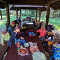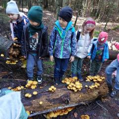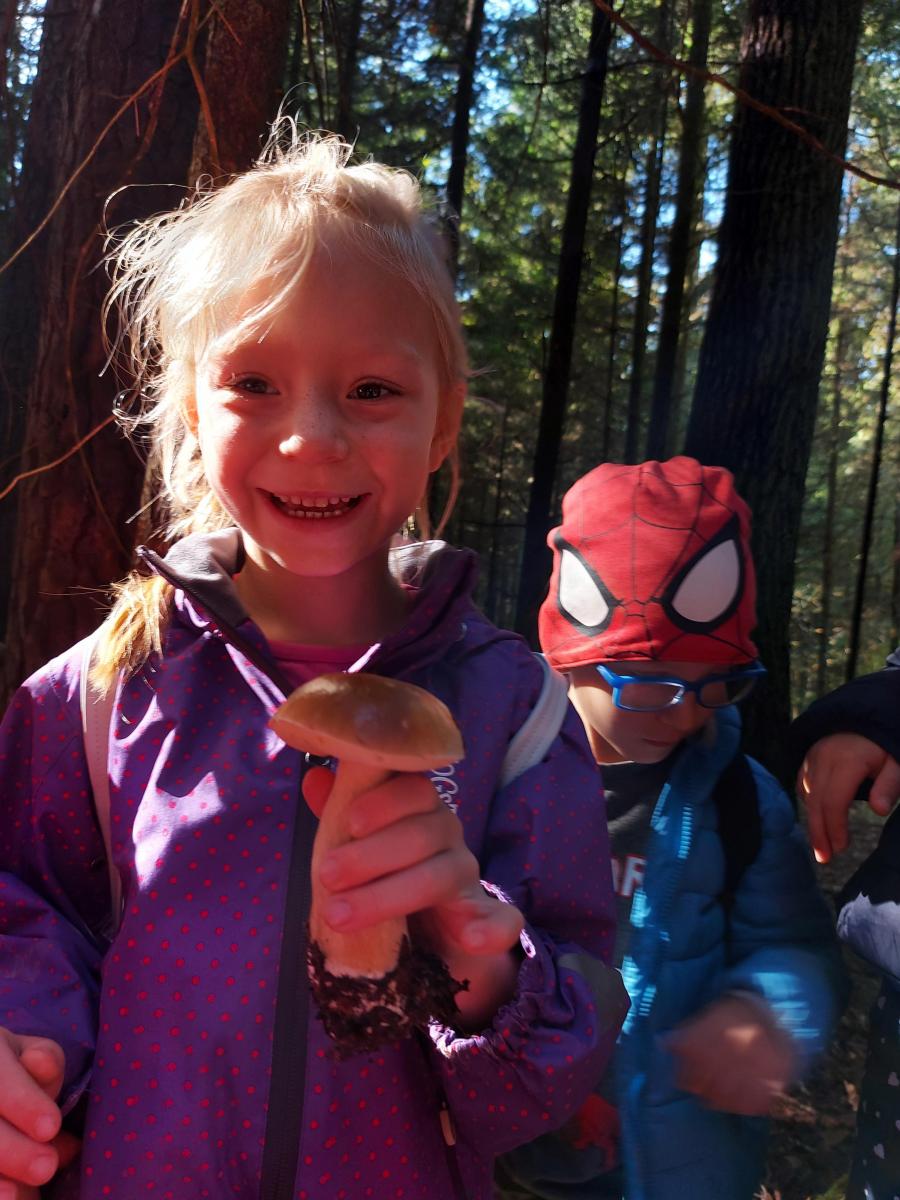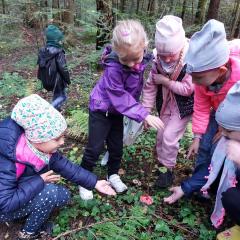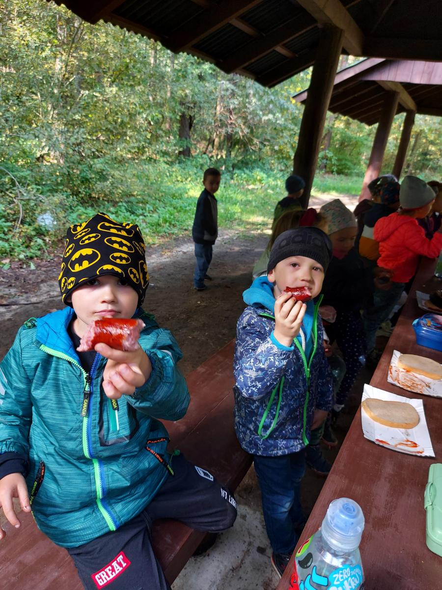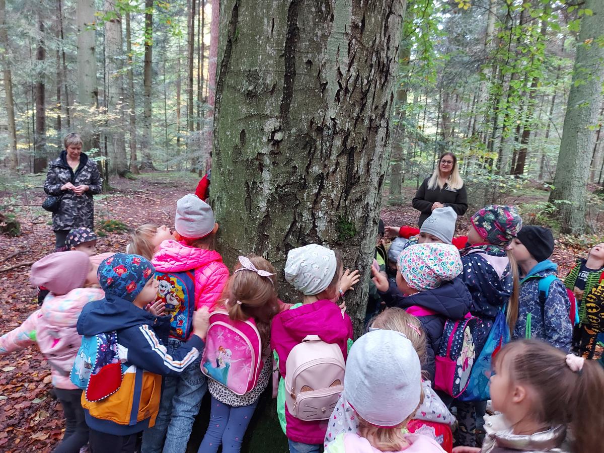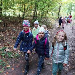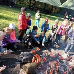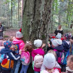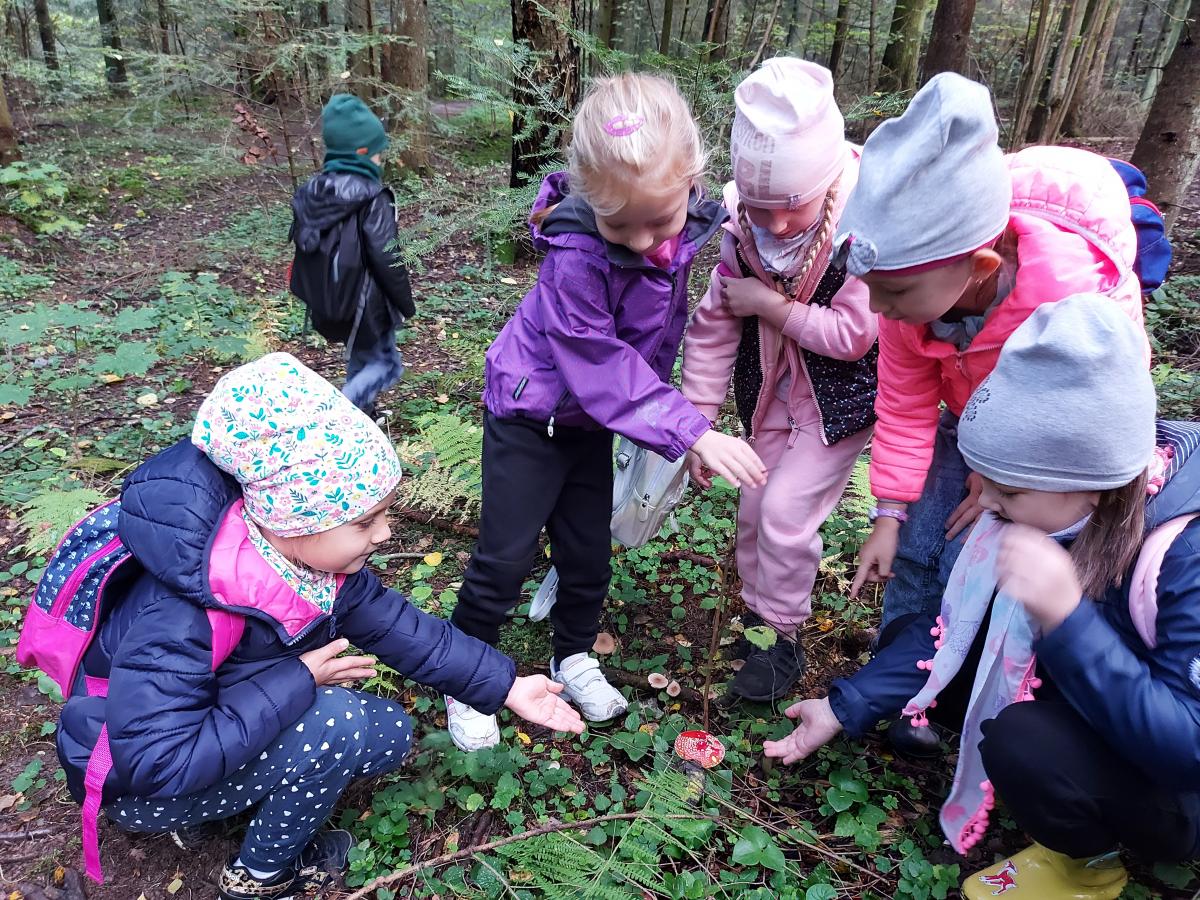 Wiele przyrodniczych ciekawostek czekało na Biedroneczki w Rezerwacie Przyrody Sufraganiec. Dzieci przeszły scieżką edukacyjną, aż do polany gdzie rozpaliliśmy ognisko i jedliśmy pyszne kiełbaski. Podczas wycieczki przedszkolaki rozróżniały drzewa iglaste od liściastych, dowiedziały się jak należy zachowywać si w lesie, czyim jest domem, i jak rozpoznawać ślady zwierząt w lesie. Dzieci znalazły wiele gatunków grzybów między innymi rodzinę muchomorów oraz prawdziwka. Naładowani pozytywną energią z drzewa wróciliśmy do przedszkola.