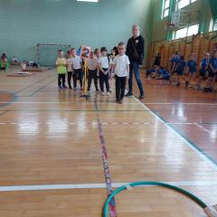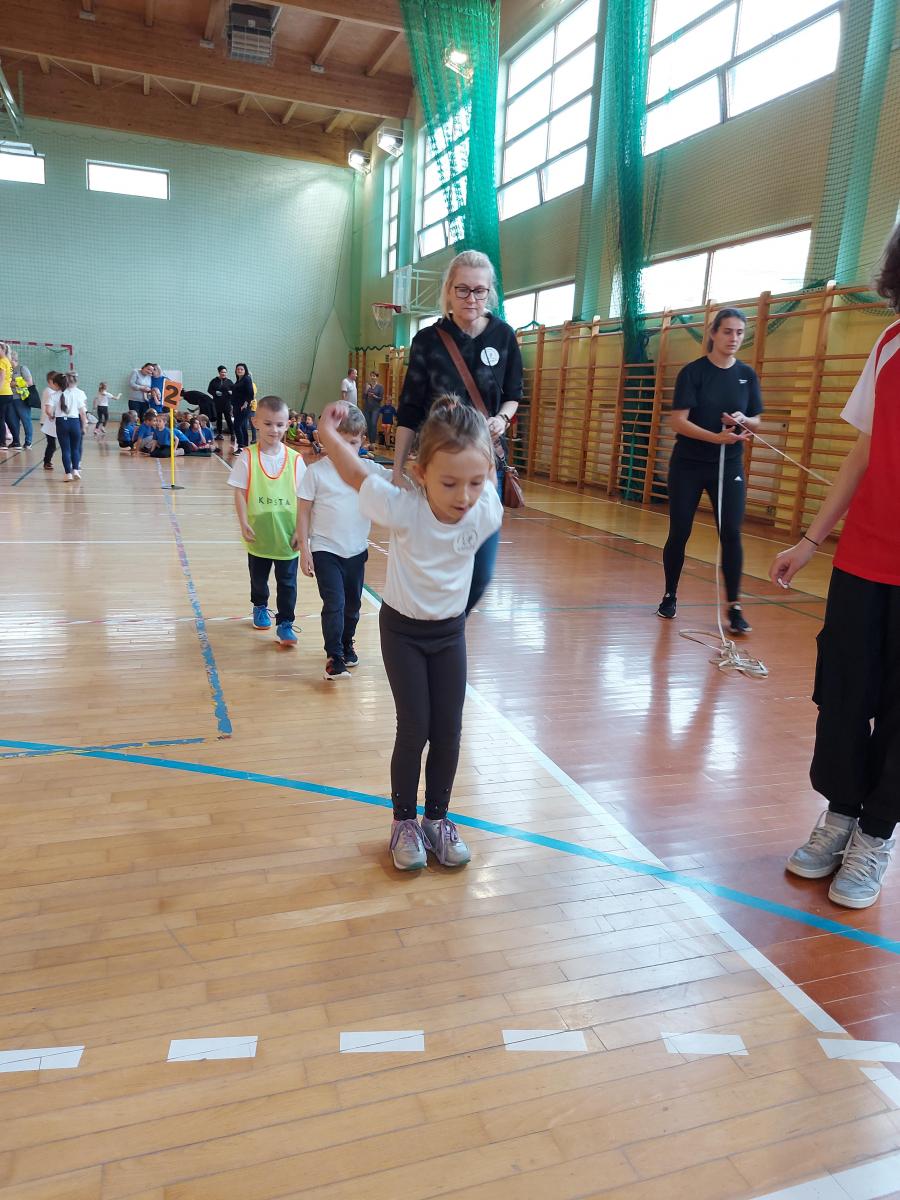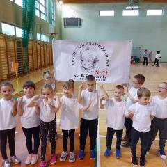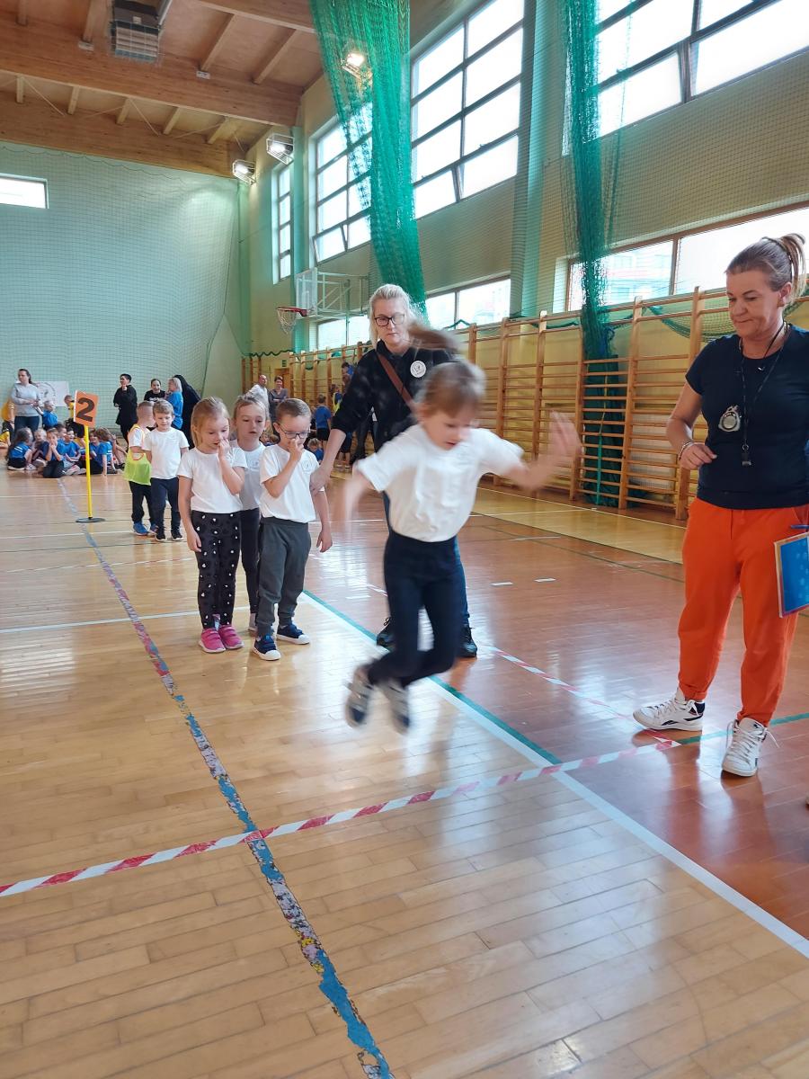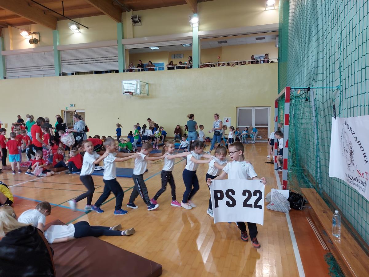 10 dzieci z najstarszych grup reprezentowało naszą placówkę w II Świętokrzyskiej Olimpiadzie Przedszkolaka. Dzieci miały do pokonania cztery konkurencję: bieg z pałeczką sztafetową, tor przeszkód, skok w dal, rzut woreczkiem do koła hula hop. Wszyscy świetnie się bawiliśmy, przedszkolaki otrzymały pamiątkowy dyplom oraz słodki poczęstunek.