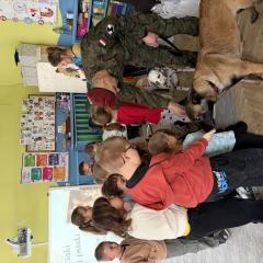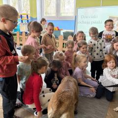 Goście przyjechali wraz ze swoimi czworonożnymi podopiecznymi, aby w ciekawy i przystępny sposób przybliżyć Pszczółkom świat psów rasowych. Dzieci miały okazję zobaczyć różne rasy, poznać ich wygląd, usposobienie oraz dowiedzieć się, jak należy prawidłowo opiekować się psem.