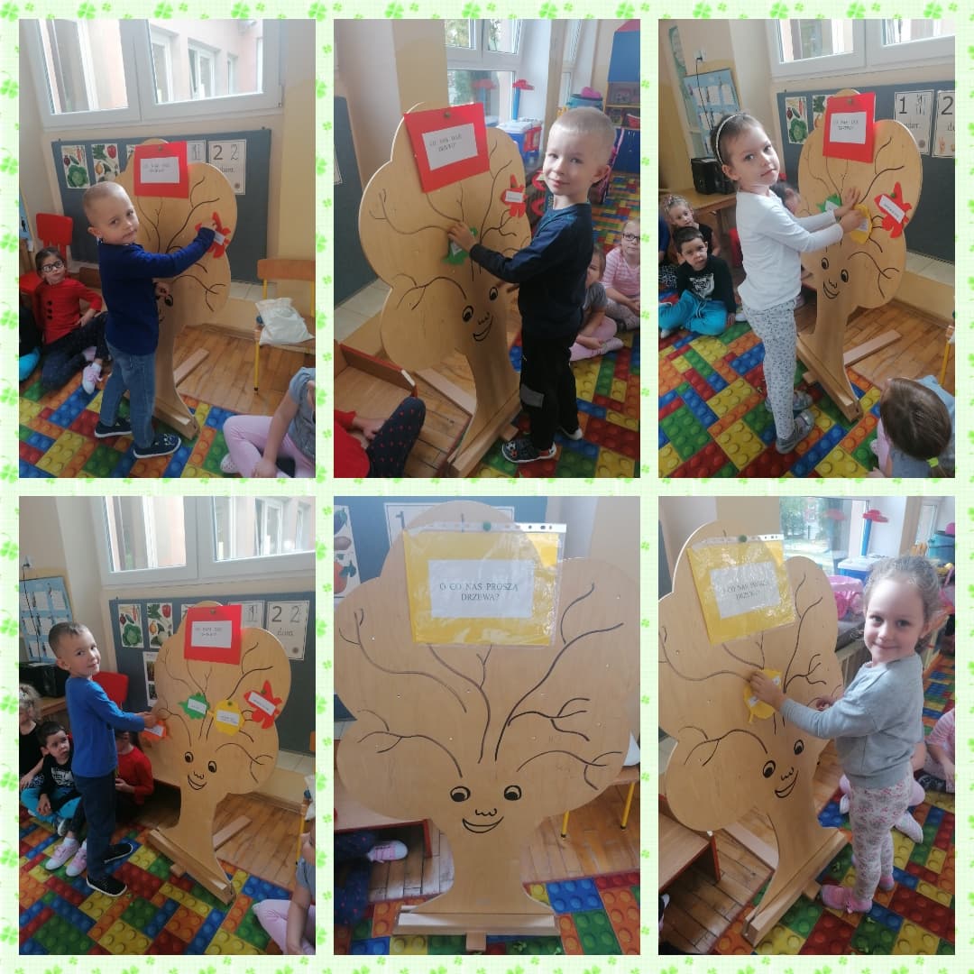 Dzisiejszego dnia Misie obchodziły Światowy Dzień Drzewa. Dzieci dowiedziały się jak należy dbać o drzewa, co wolno ,a czego nie powinno się robić przebywając w lesie lub parku. Dzieci uczestniczyły w ciekawych zajęciach z wykorzystaniem maty, wspólnie wykonały jesienne drzewo. Inauguracją tak wyjątkowego dnia było zasadzenie sadzonek drzew w ogrodzie przedszkolnym.