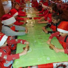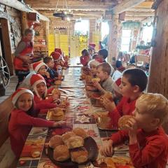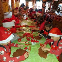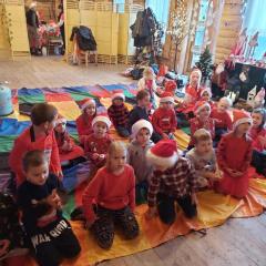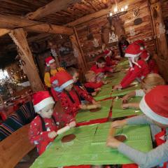 Zbliżają się święta. W Fabryce Prezentów Świętego Mikołaja elfy nie nadążają z produkcją prezentów. Dzieci z grupy Biedronki i Smerfy postanowiły pomóc w przygotowywaniach i w tym celu udały się na wycieczkę. W fabryce uruchomiono 3 linie produkcyjne: linia produkcji świątecznych pierniczków, linia tworzenia świątecznych stroików oraz linia produkcyjna kula śniegowa. W trakcie pracy pomocnicy Św. Mikołaja mieli do dyspozycji stołówkę ze świątecznymi specjałami, a na koniec pracy fabrykę odwiedził Białobrody, który dokonał kontroli jakości wykonanych prezentów.