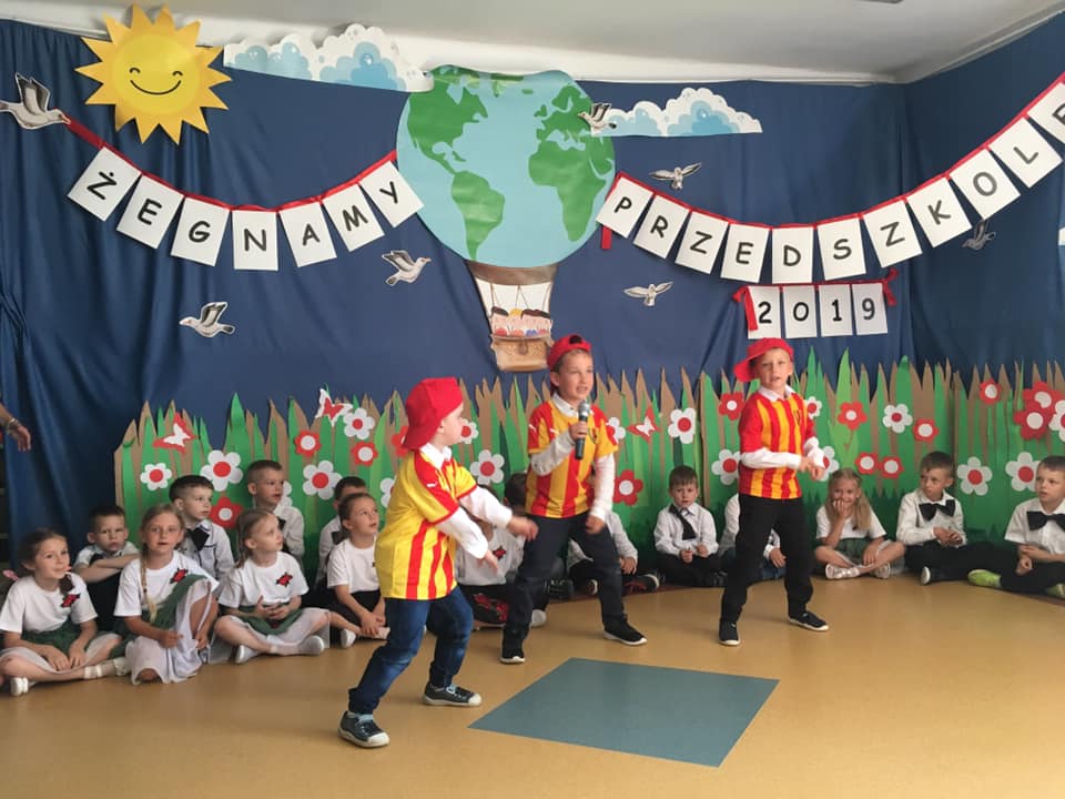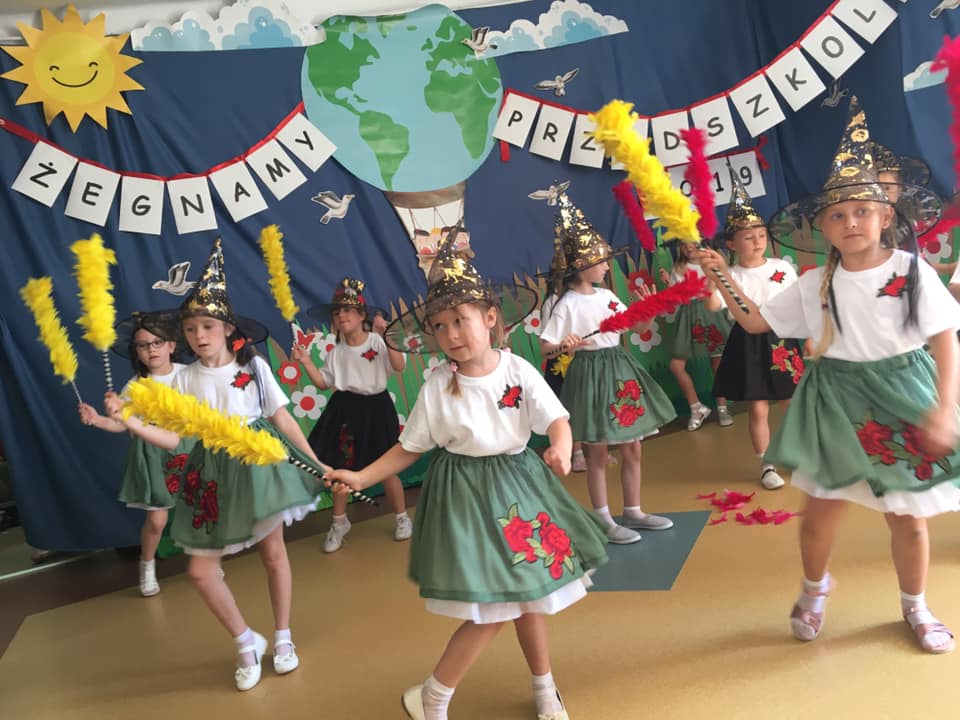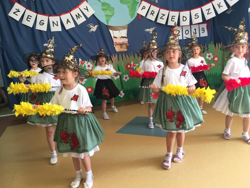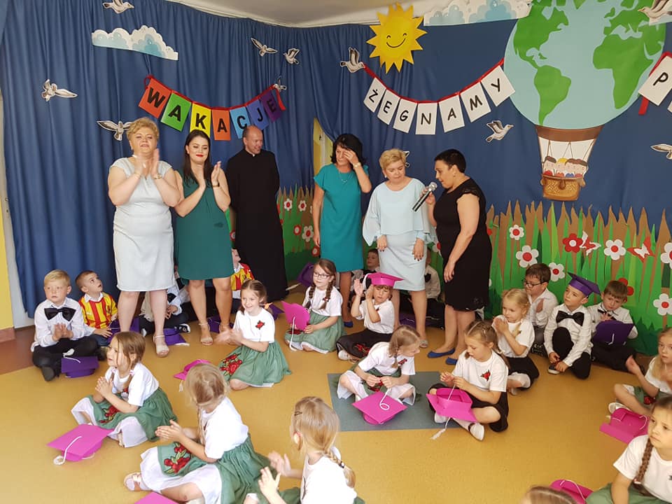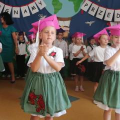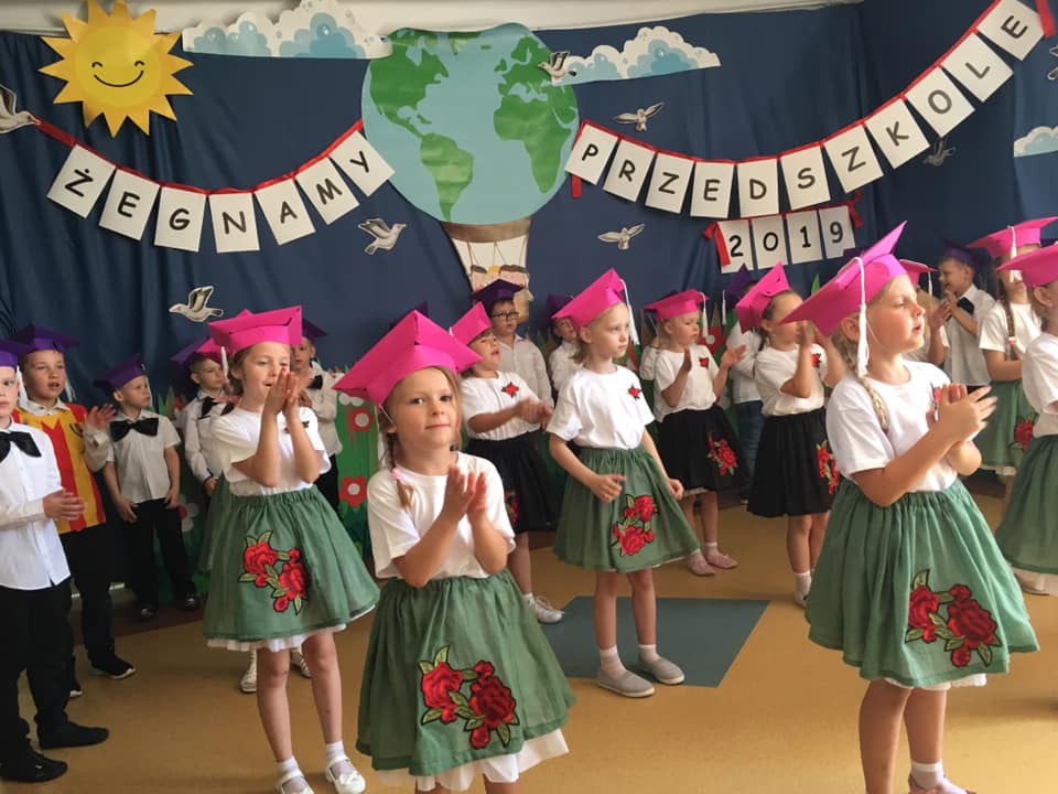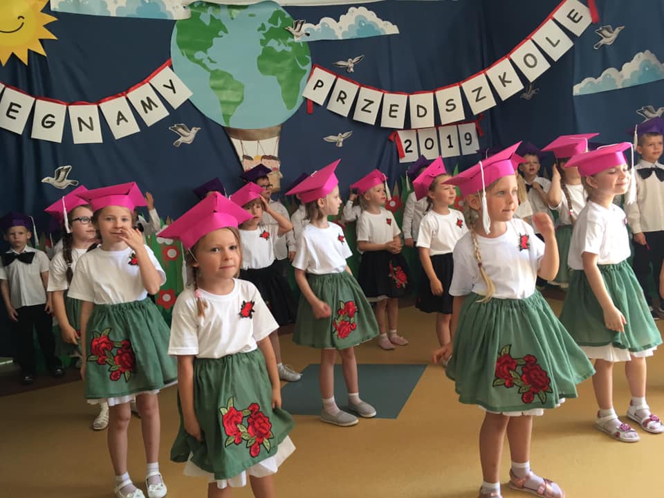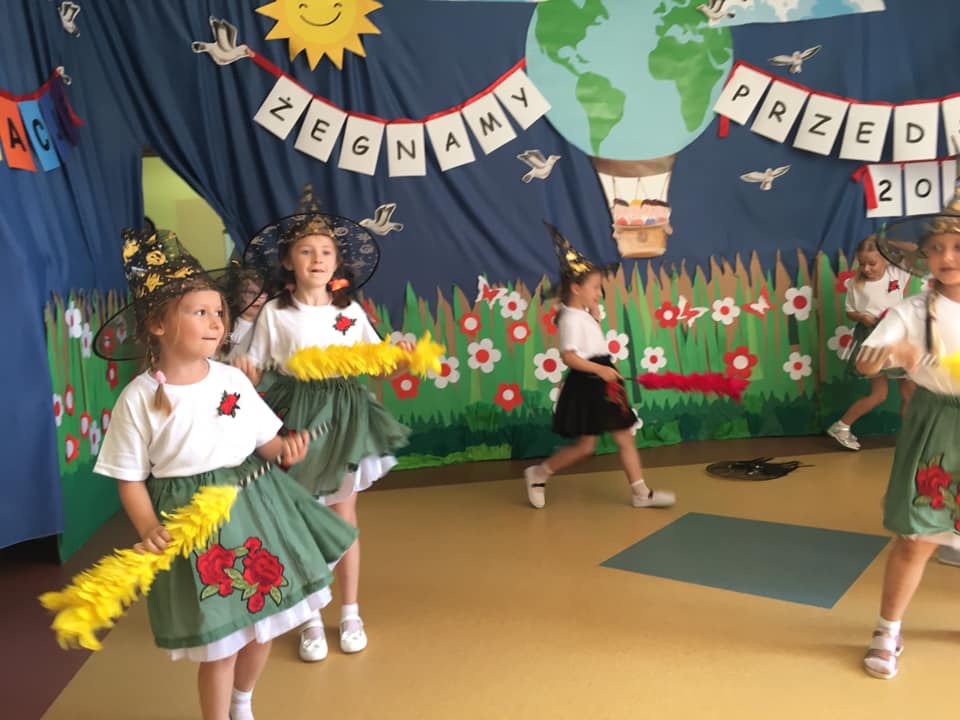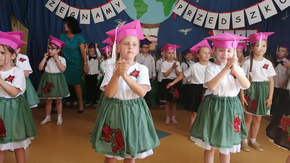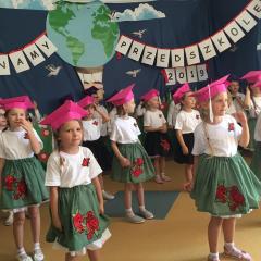 W dniu 11 czerwca odbyła się uroczystość pożegnania przedszkola przez dzieci sześcioletnie z grupy Tropiciele. Tematyka programu artystycznego uroczystości związana z Polską naszym regionem i przedszkolem. Dzieci zaprezentowały się wspaniale. Nasi mali aktorzy prezentowali tańce, śpiewali piosenki i recytowali wiersze. Zwieńczeniem uroczystego pożegnanie było wręczenie dyplomów ukończenia przedszkola i pamiątkowych książek. Na koniec w górę powędrowały birety, a potem od rodziców pyszny tort i szampan.