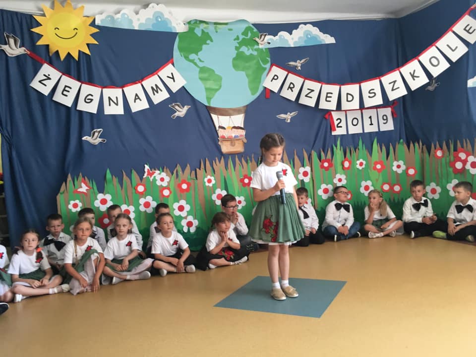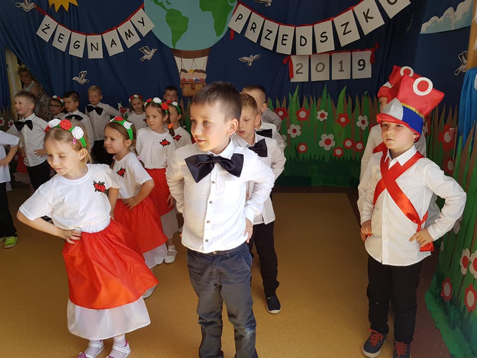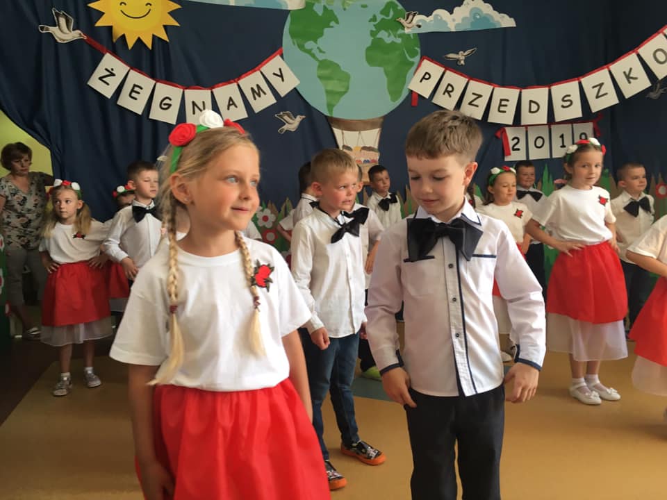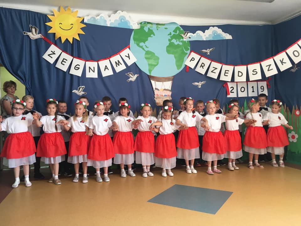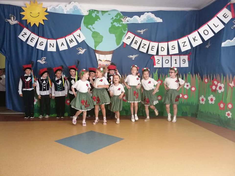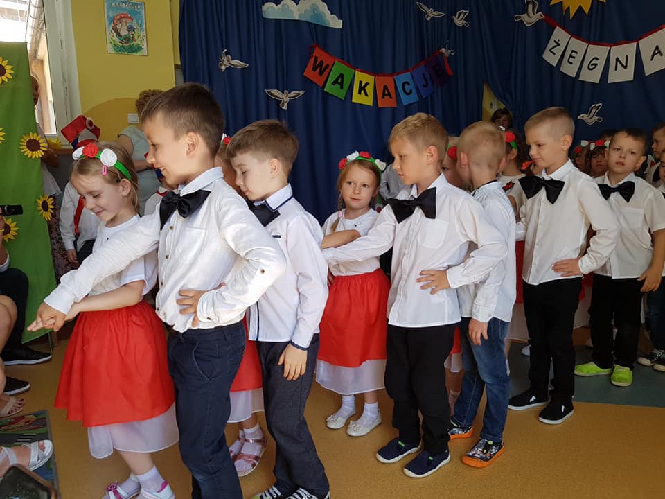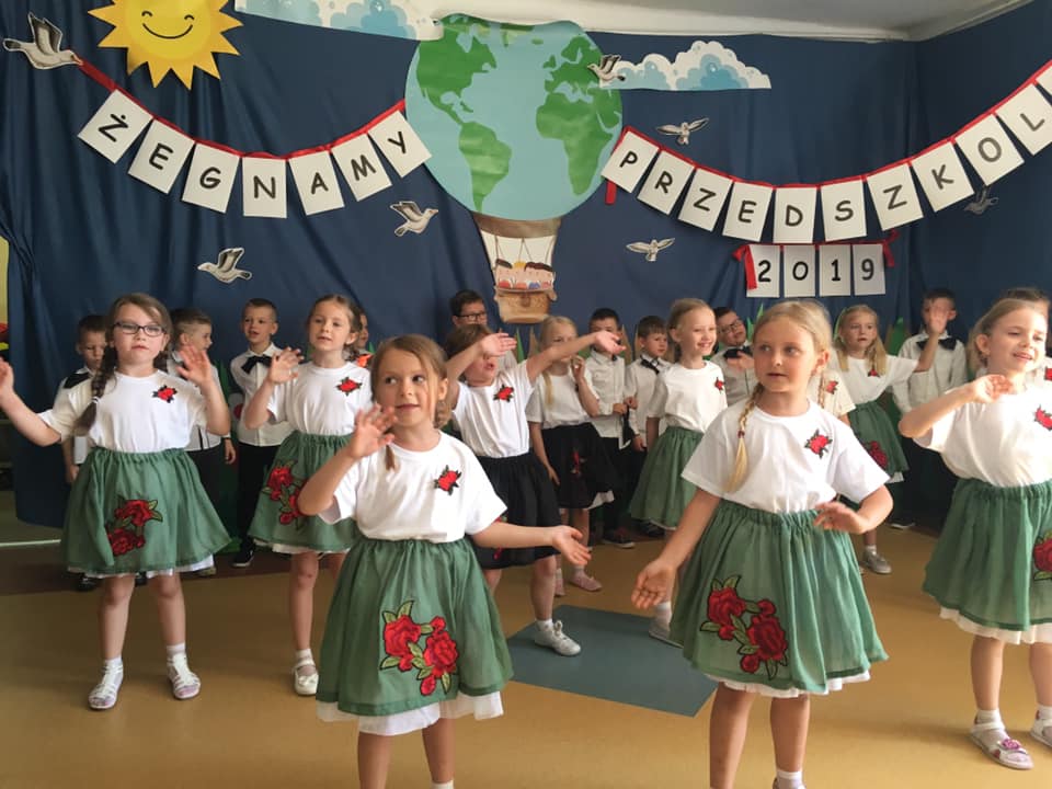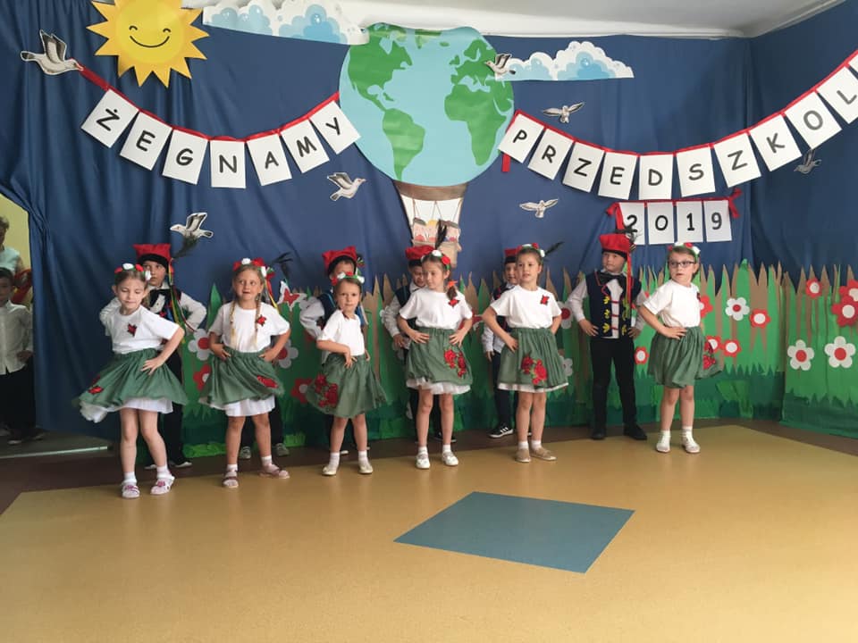 W dniu 11 czerwca odbyła się uroczystość pożegnania przedszkola przez dzieci sześcioletnie z grupy Tropiciele. Tematyka programu artystycznego uroczystości związana z Polską naszym regionem i przedszkolem. Dzieci zaprezentowały się wspaniale. Nasi mali aktorzy prezentowali tańce, śpiewali piosenki i recytowali wiersze. Zwieńczeniem uroczystego pożegnanie było wręczenie dyplomów ukończenia przedszkola i pamiątkowych książek. Na koniec w górę powędrowały birety, a potem od rodziców pyszny tort i szampan.