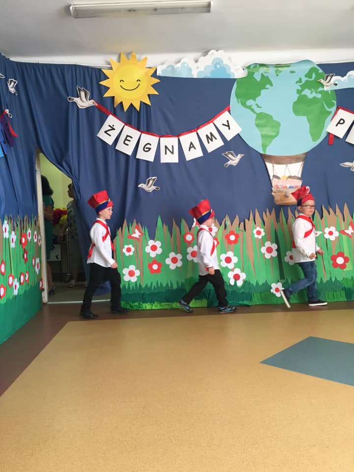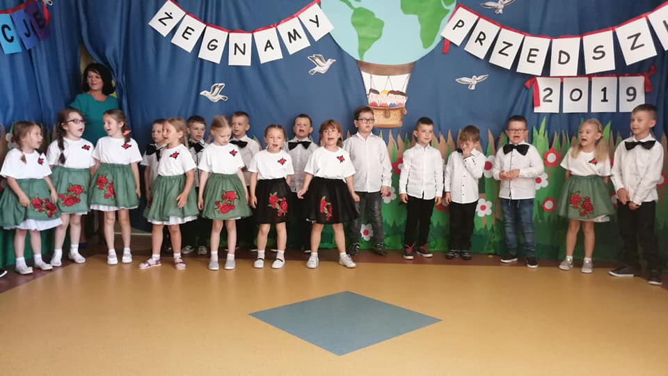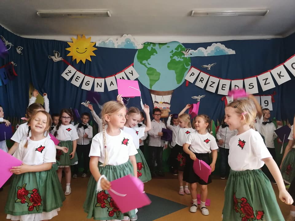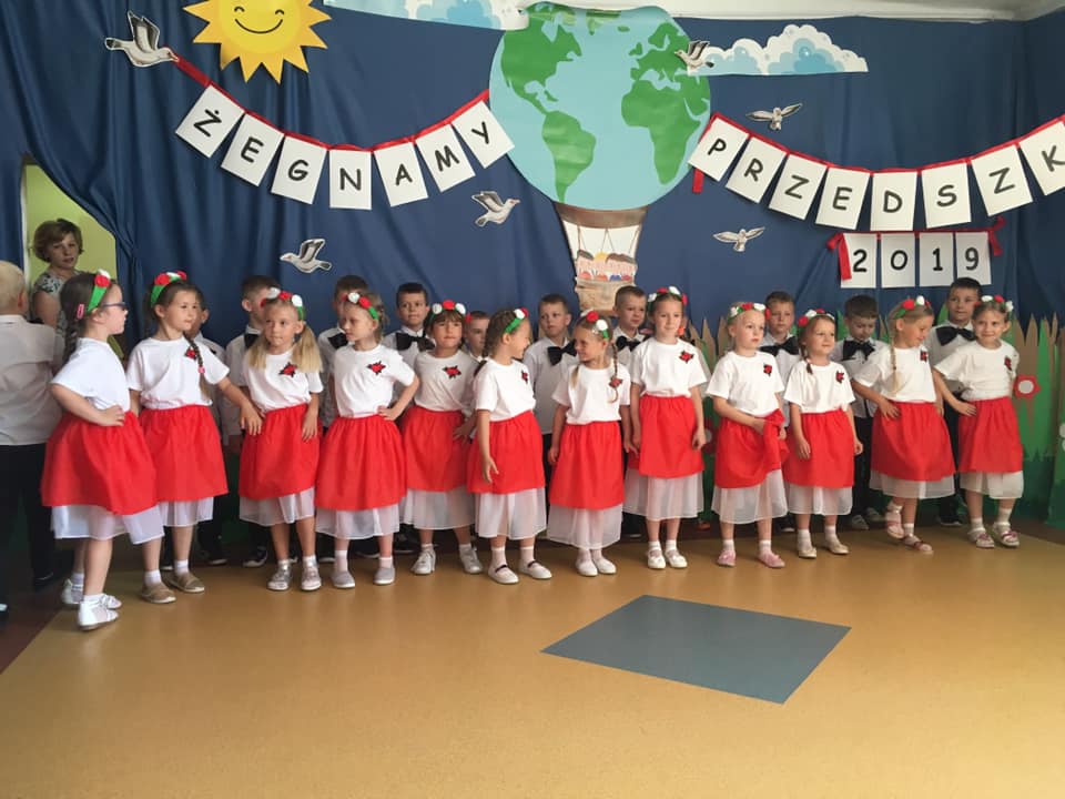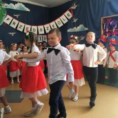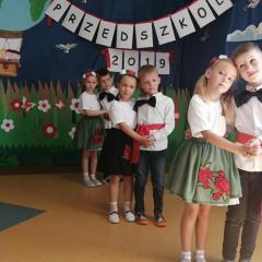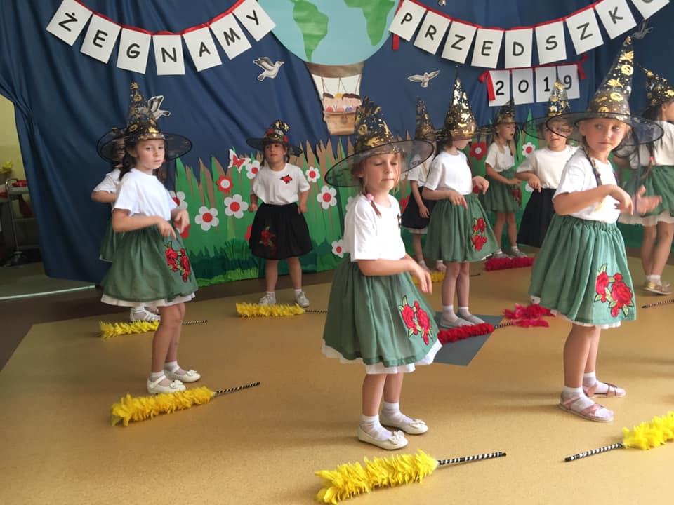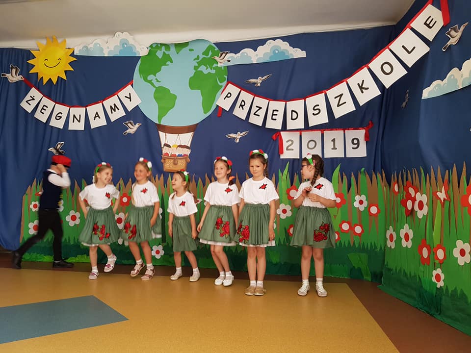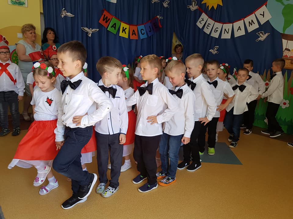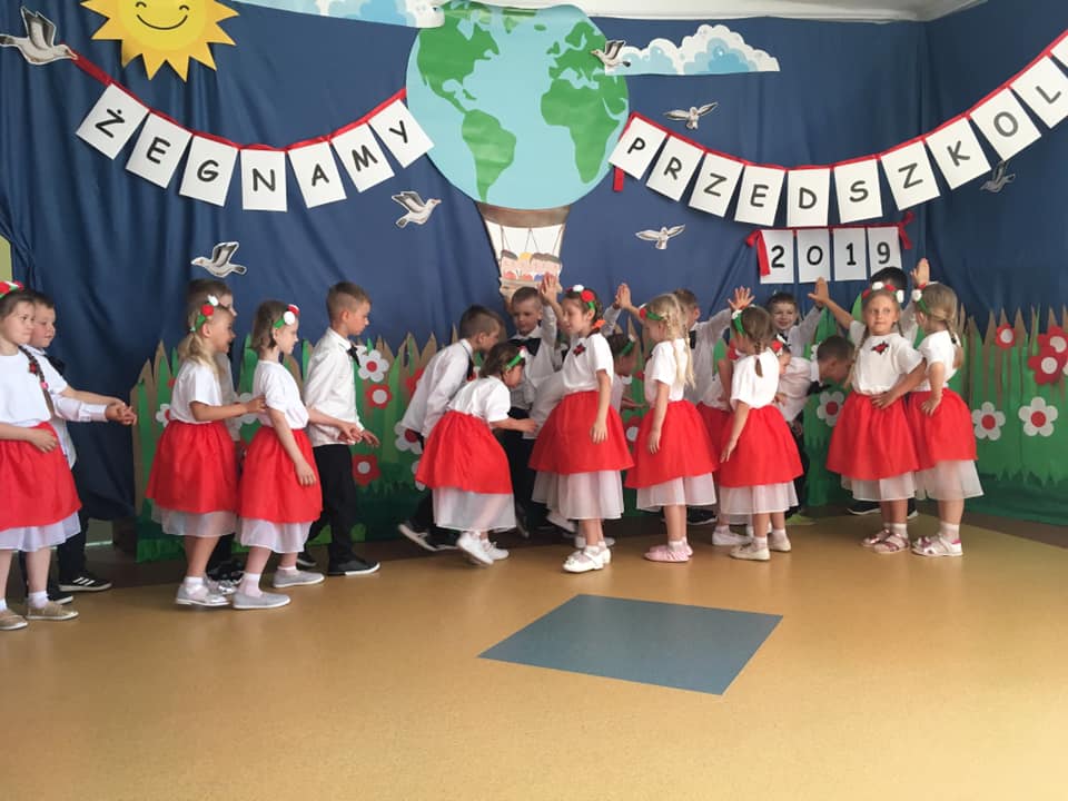 W dniu 11 czerwca odbyła się uroczystość pożegnania przedszkola przez dzieci sześcioletnie z grupy Tropiciele. Tematyka programu artystycznego uroczystości związana z Polską naszym regionem i przedszkolem. Dzieci zaprezentowały się wspaniale. Nasi mali aktorzy prezentowali tańce, śpiewali piosenki i recytowali wiersze. Zwieńczeniem uroczystego pożegnanie było wręczenie dyplomów ukończenia przedszkola i pamiątkowych książek. Na koniec w górę powędrowały birety, a potem od rodziców pyszny tort i szampan.