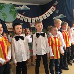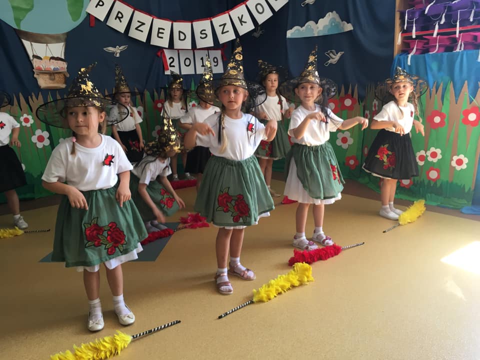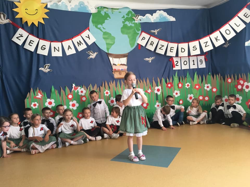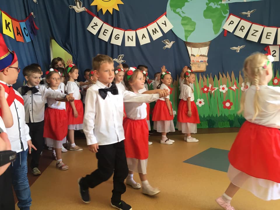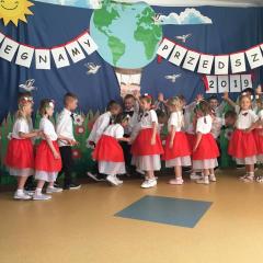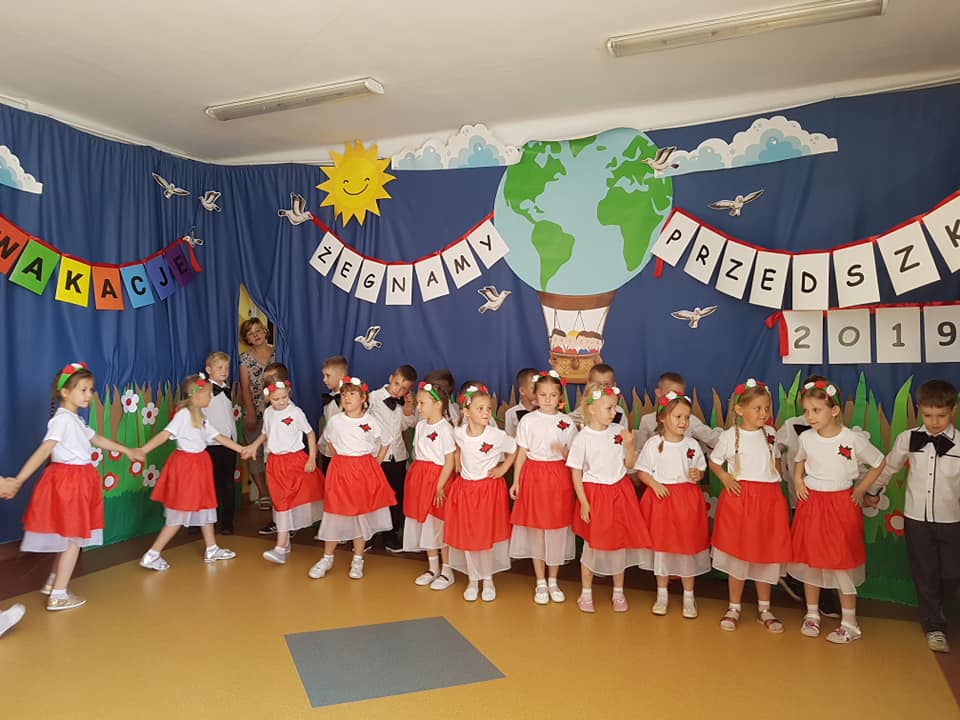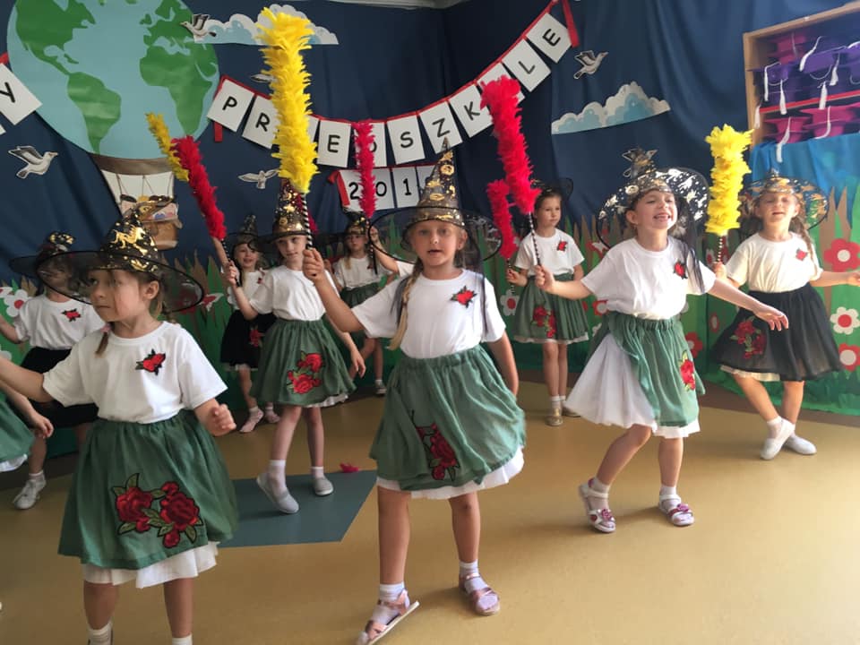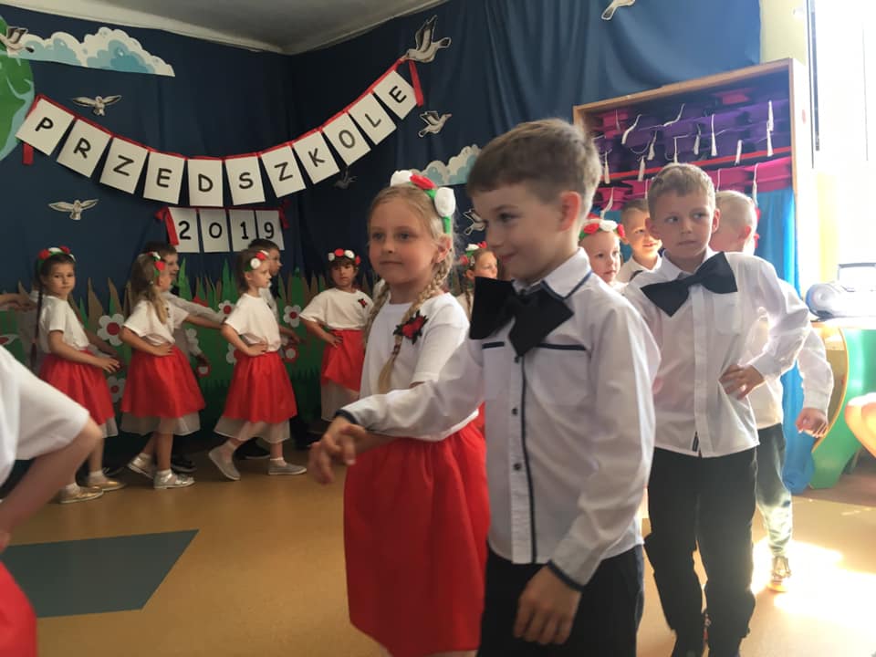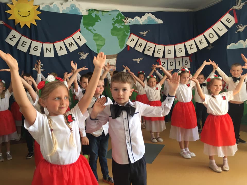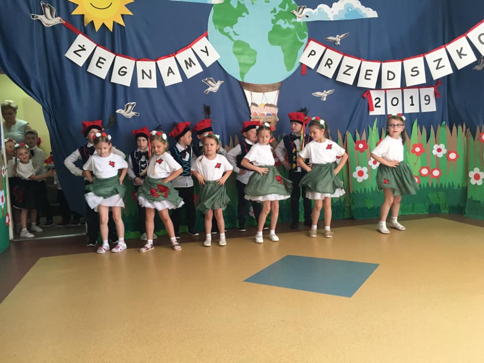 W dniu 11 czerwca odbyła się uroczystość pożegnania przedszkola przez dzieci sześcioletnie z grupy Tropiciele. Tematyka programu artystycznego uroczystości związana z Polską naszym regionem i przedszkolem. Dzieci zaprezentowały się wspaniale. Nasi mali aktorzy prezentowali tańce, śpiewali piosenki i recytowali wiersze. Zwieńczeniem uroczystego pożegnanie było wręczenie dyplomów ukończenia przedszkola i pamiątkowych książek. Na koniec w górę powędrowały birety, a potem od rodziców pyszny tort i szampan.