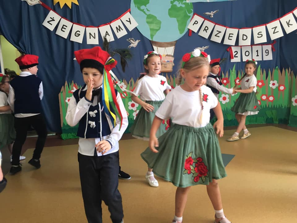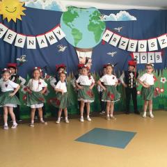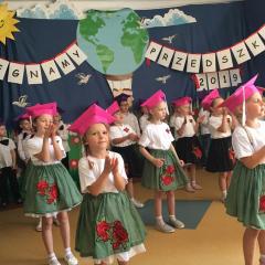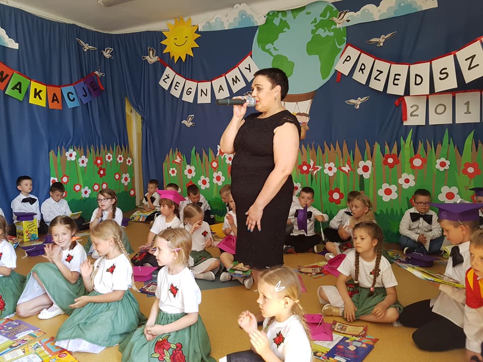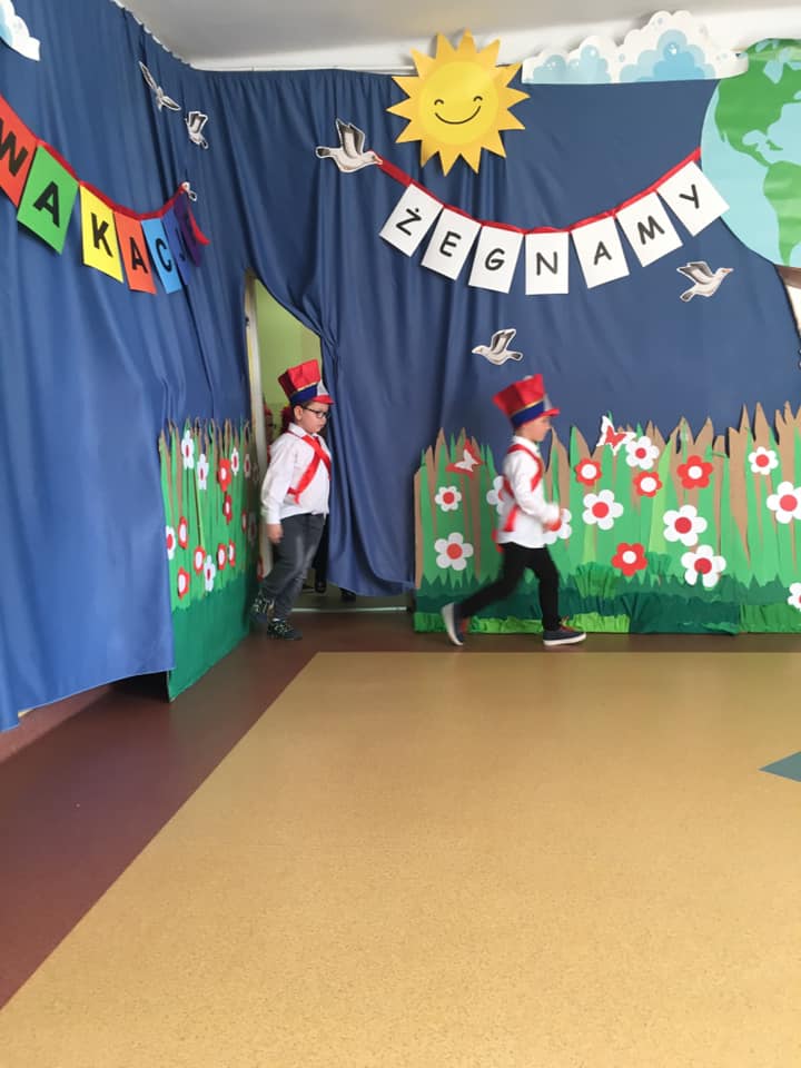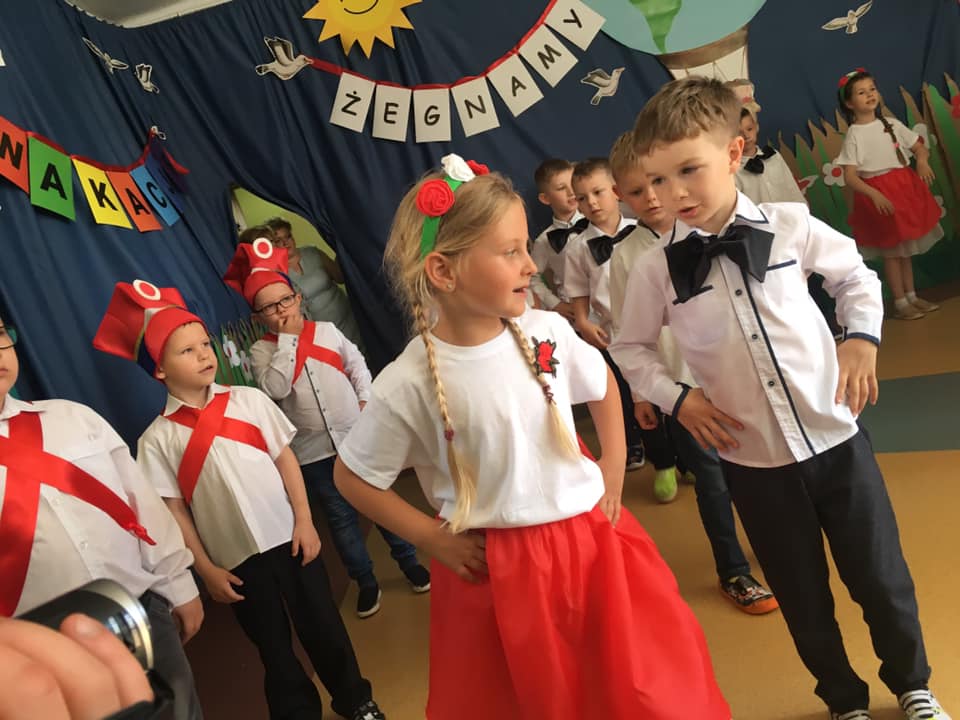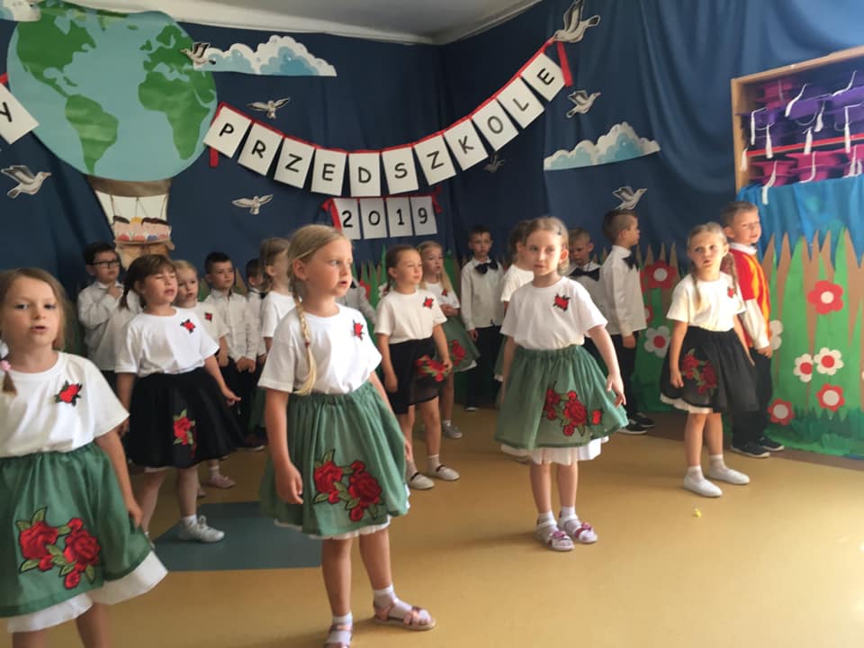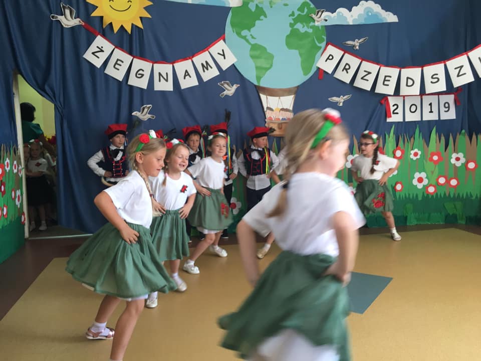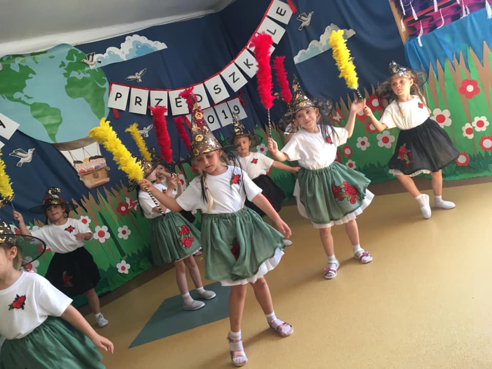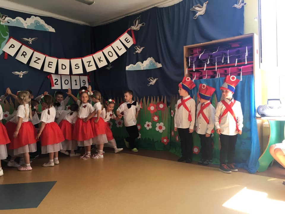 W dniu 11 czerwca odbyła się uroczystość pożegnania przedszkola przez dzieci sześcioletnie z grupy Tropiciele. Tematyka programu artystycznego uroczystości związana z Polską naszym regionem i przedszkolem. Dzieci zaprezentowały się wspaniale. Nasi mali aktorzy prezentowali tańce, śpiewali piosenki i recytowali wiersze. Zwieńczeniem uroczystego pożegnanie było wręczenie dyplomów ukończenia przedszkola i pamiątkowych książek. Na koniec w górę powędrowały birety, a potem od rodziców pyszny tort i szampan.