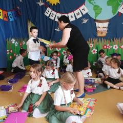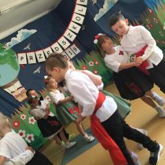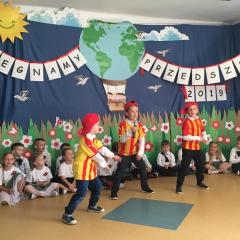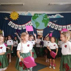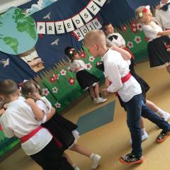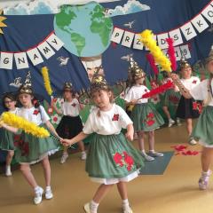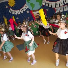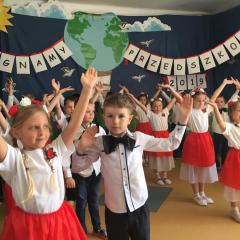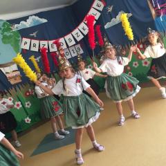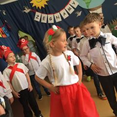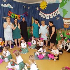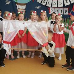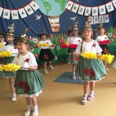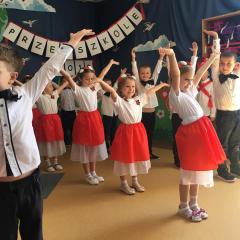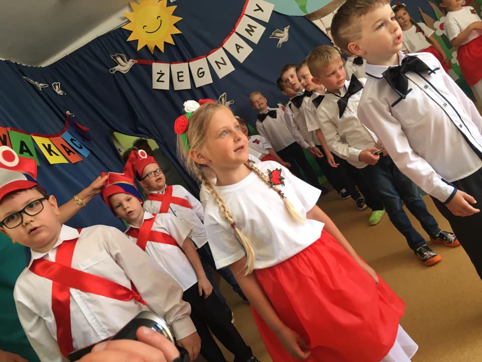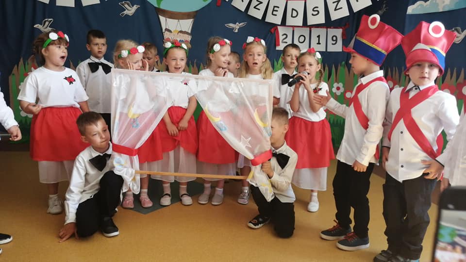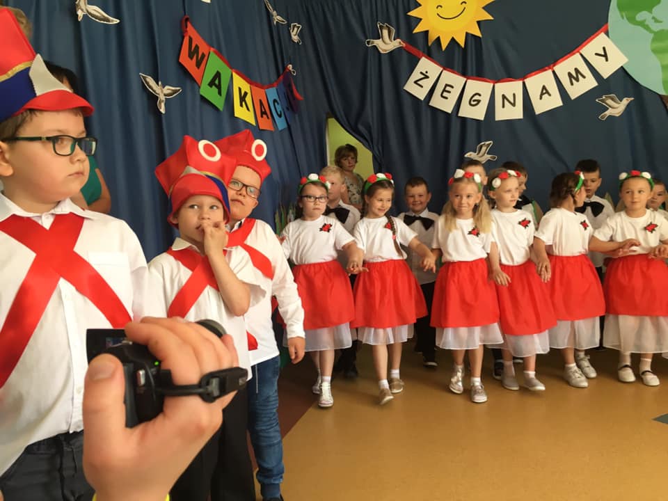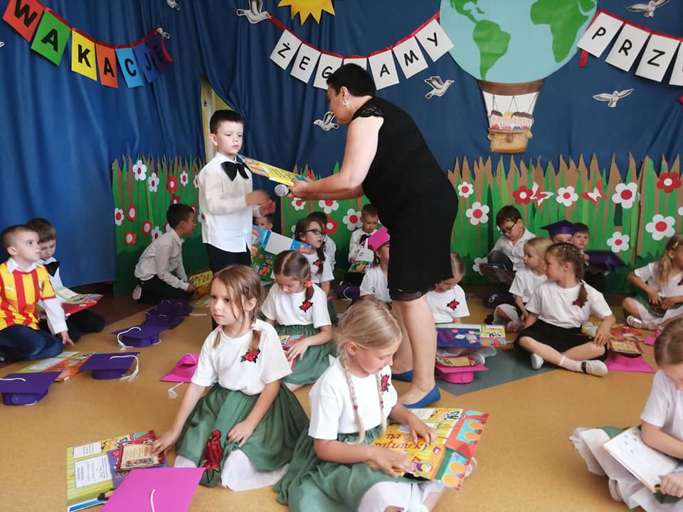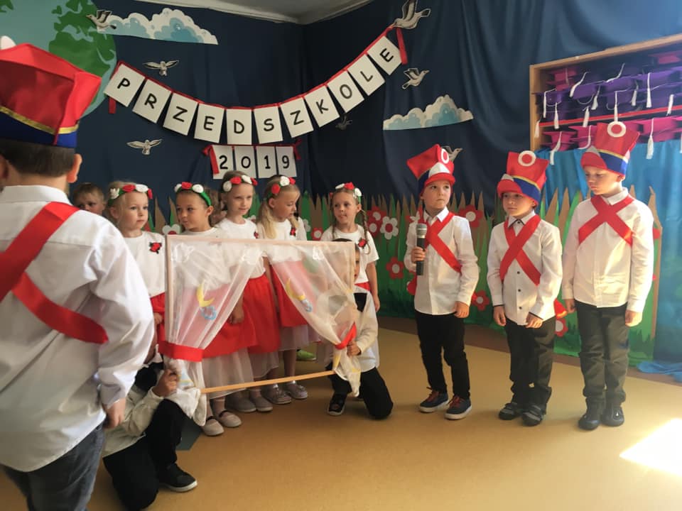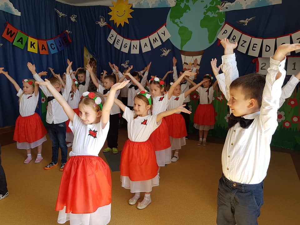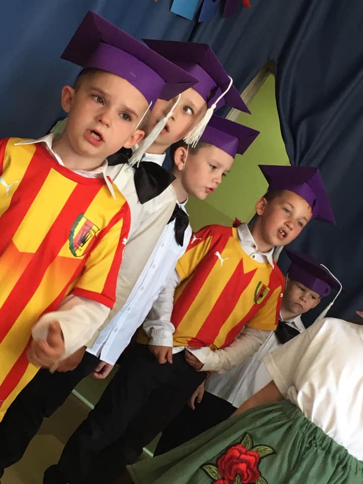 W dniu 11 czerwca odbyła się uroczystość pożegnania przedszkola przez dzieci sześcioletnie z grupy Tropiciele. Tematyka programu artystycznego uroczystości związana z Polską naszym regionem i przedszkolem. Dzieci zaprezentowały się wspaniale. Nasi mali aktorzy prezentowali tańce, śpiewali piosenki i recytowali wiersze. Zwieńczeniem uroczystego pożegnanie było wręczenie dyplomów ukończenia przedszkola i pamiątkowych książek. Na koniec w górę powędrowały birety, a potem od rodziców pyszny tort i szampan.