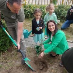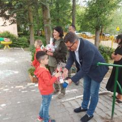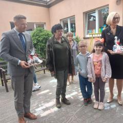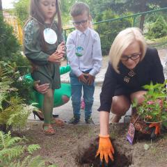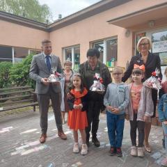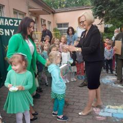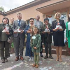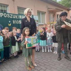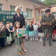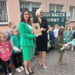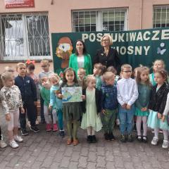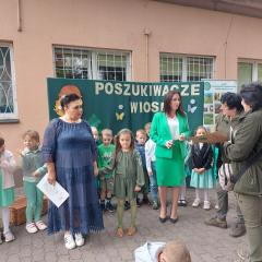 W dniu dzisiejszym w naszym przedszkolu miało miejsce uroczyste wręczenie nagród III edycji konkursu pt: "Poszukiwacze Wiosny" zorganizowanego przez Zespół Świętokrzyskich i Nadnidziańskich Parków Krajobrazowych. Uroczystość swą obecnością uświetliła wicemarszałek województwa świętokrzyskiego Renata Janik oraz wiceprezydent Kielc Marcin Chłodnicki. Nasi goście pomogli dzieciom z grupy Żabki w sadzeniu miododajnych krzewów, które od dzisiaj będą zdobić przedszkolny ogród.