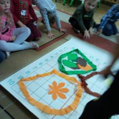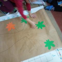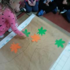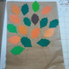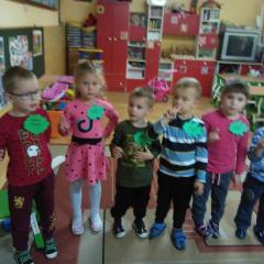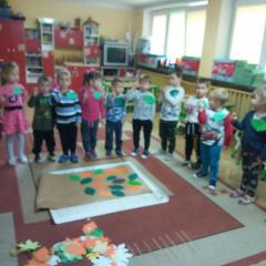 Z okazji Święta Drzewa rozmawialiśmy o tym jaką rolę pełnią drzewa w przyrodzie oraz jakie jest ich znaczenie w życiu człowieka. Rozpoznawaliśmy liście poszczególnych drzew i ich owoce, omawialiśmy ich wygląd, grupowaliśmy liście według kolorów, a następnie w kolorowych szrafach układaliśmy liście danego drzewa. Przyozdabialiśmy drzewo dębu -  liśćmi. Dzieci złożyły również przyrzeczenie,  że będą chronić i dbać o  przyrodę. Otrzymały odznaki "Strażnika Przyrody" Praca plastyczna - Kolorowanie wybranego przez siebie liścia.