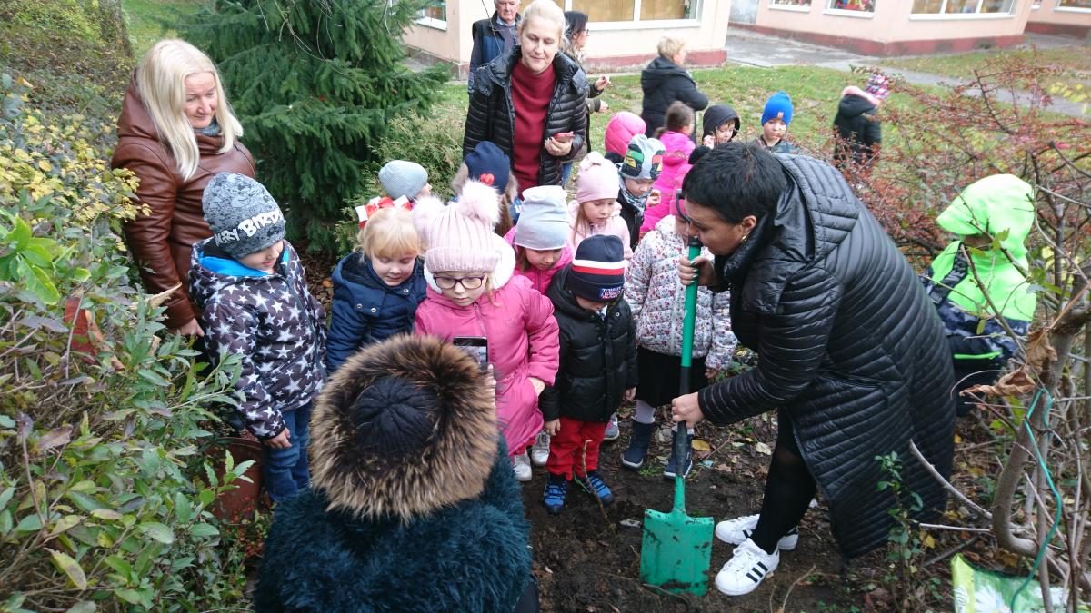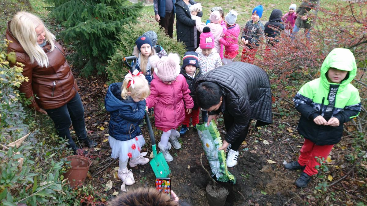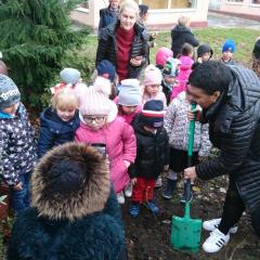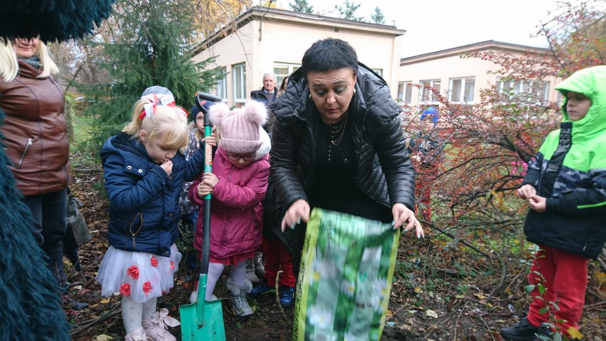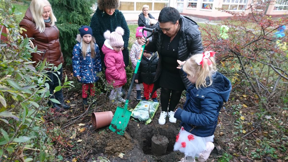 W naszym ogrodzie przedszkolnym posadziliśmy dzisiaj Paulovni cotevisa, pozyskane w ramach współpracy z Ligą Ochrony Przyrody w Kielcach. Tym samym przystąpiliśmy do udziału w projekcie "Robimy tlen dla Kielc"