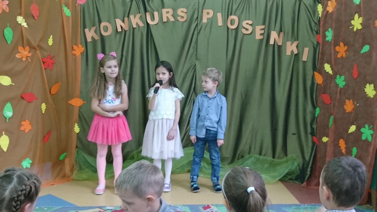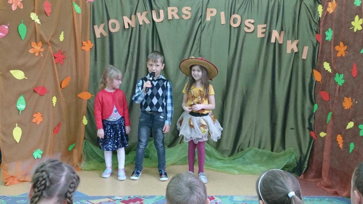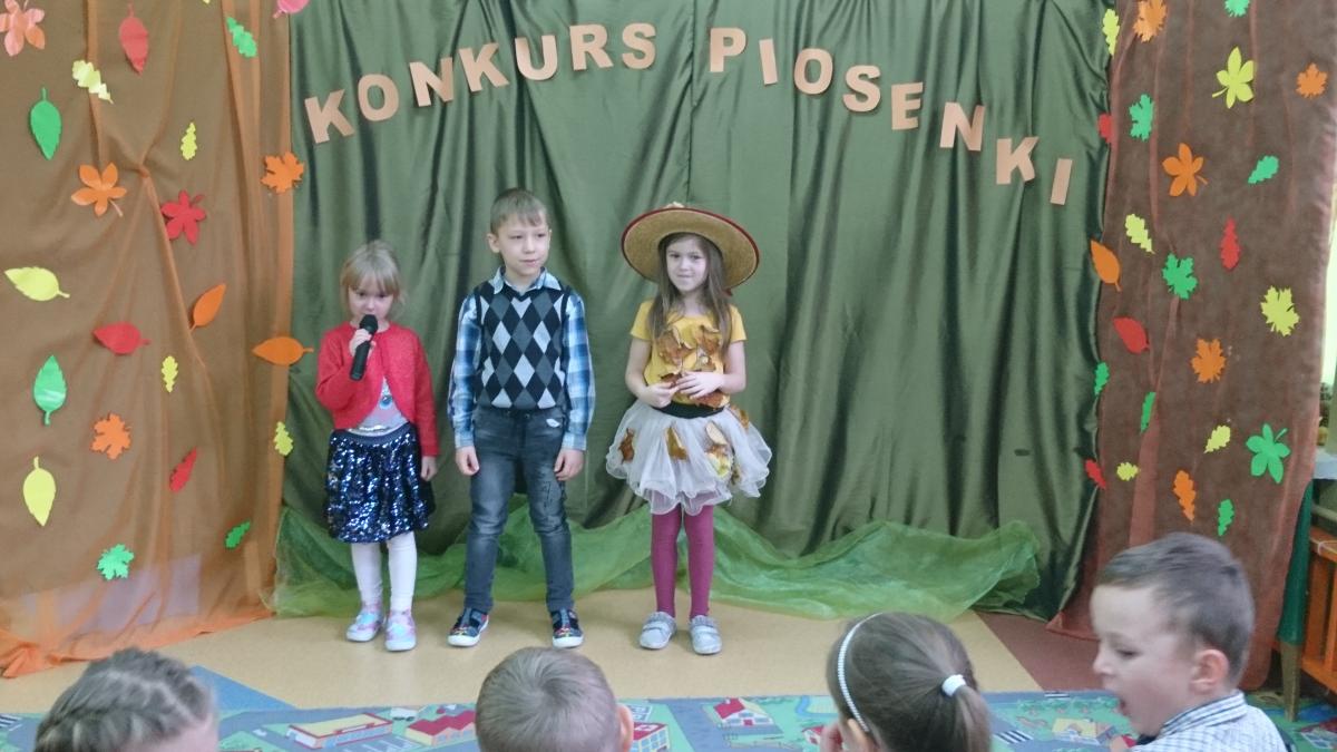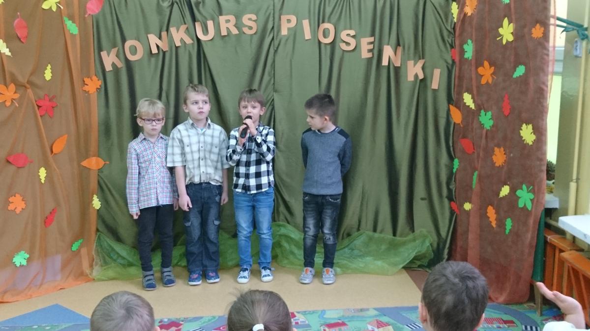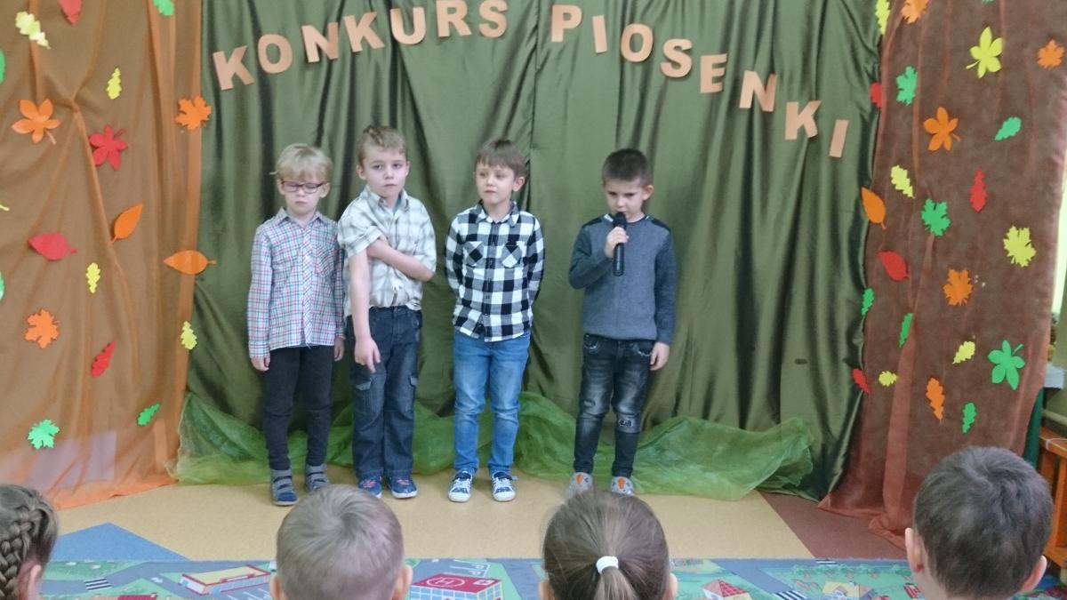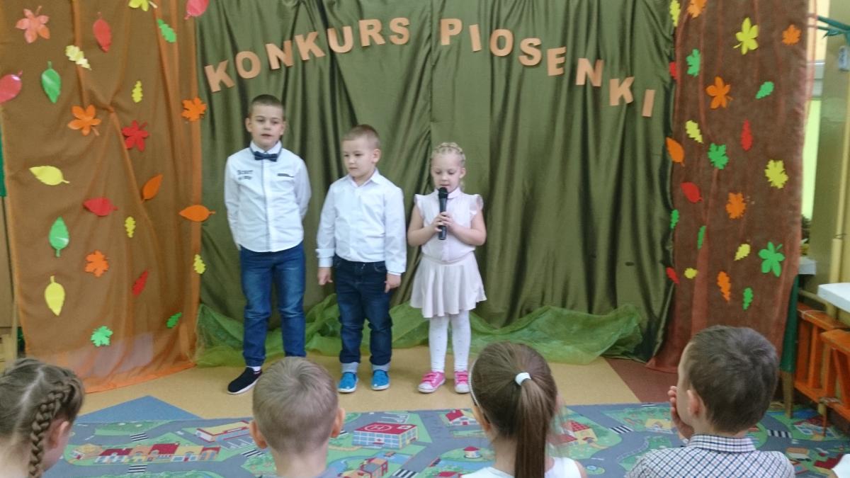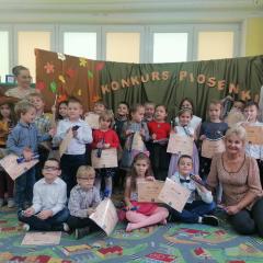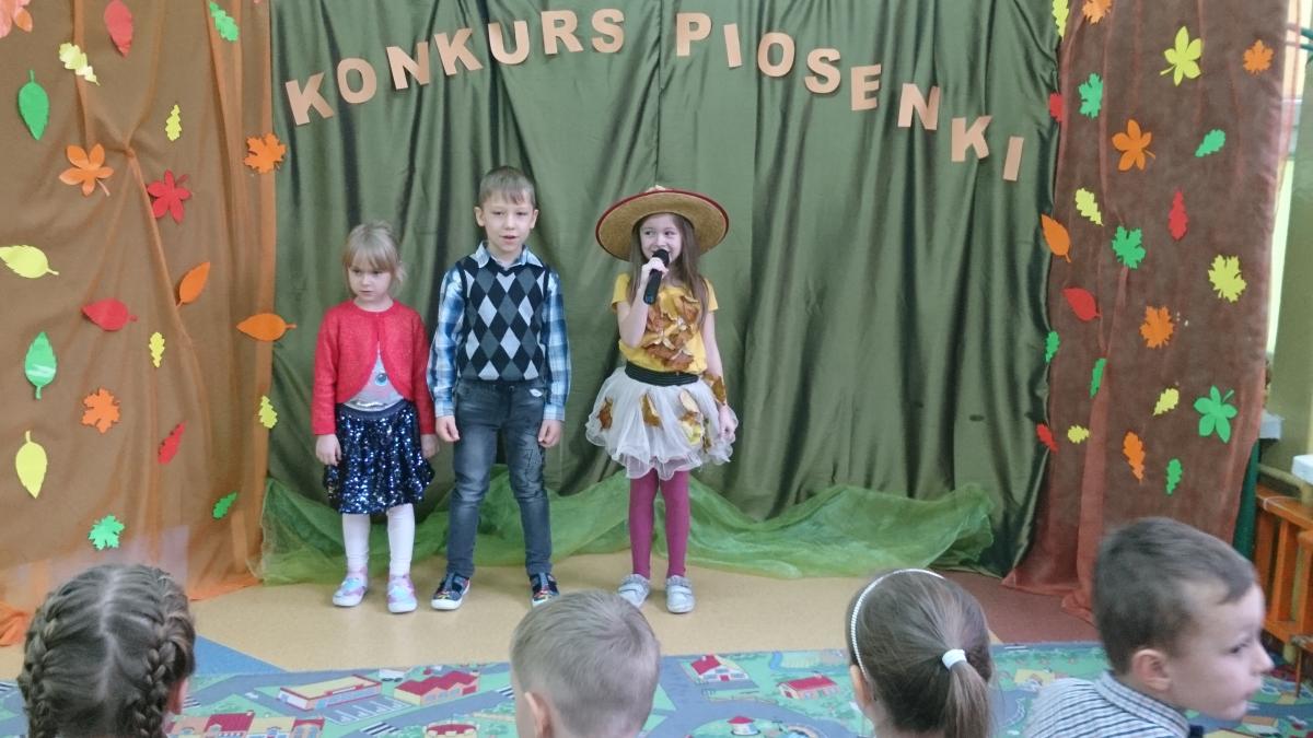 Dodane przez grupa4 - 13.11.2020 W piątek w naszej grupie odbył się Konkurs Piosenki "Jesienne nastroje". Dzieci pięknie się zaprezentowały śpiewając piosenki o tematyce jesiennej. Wszyscy otrzymali dyplomy oraz drobne upominki.