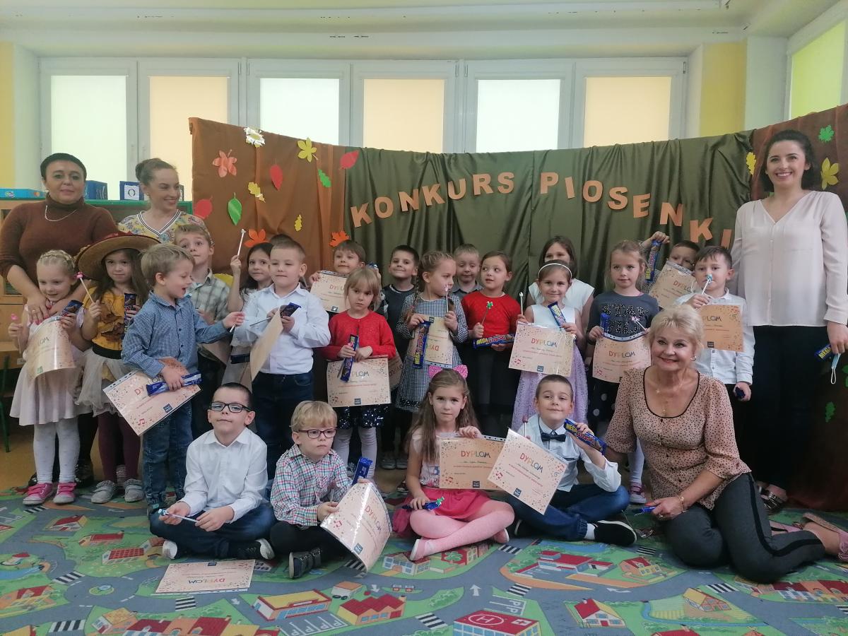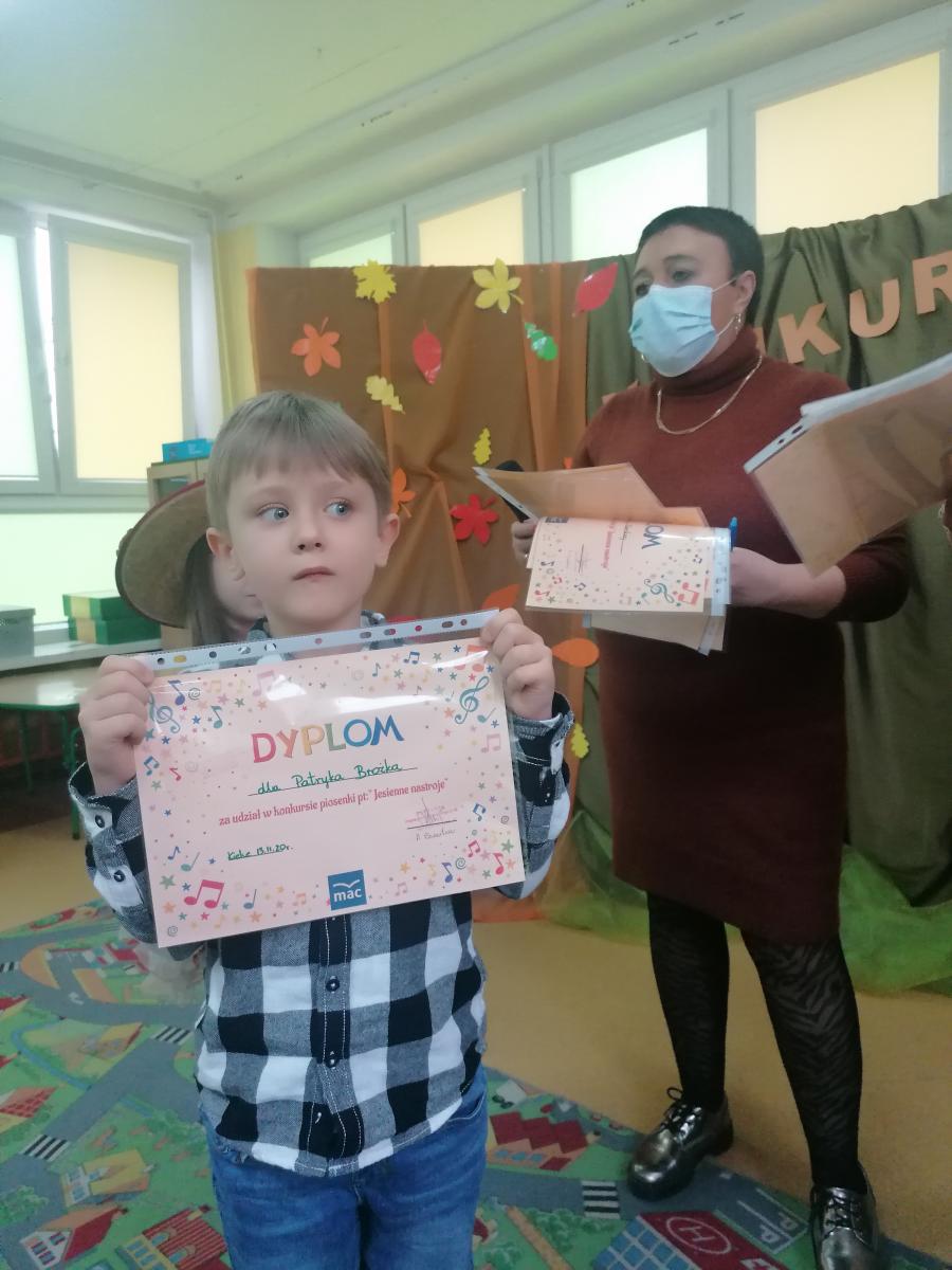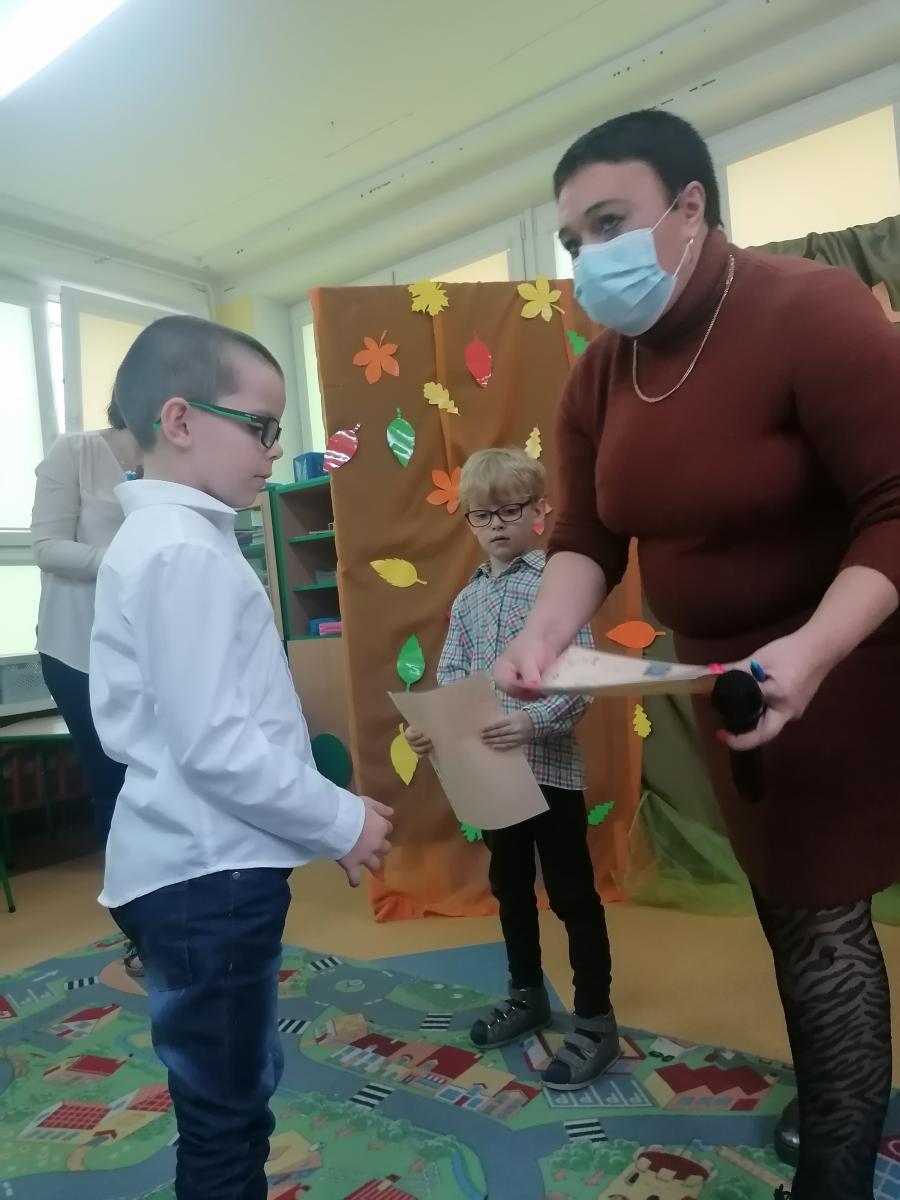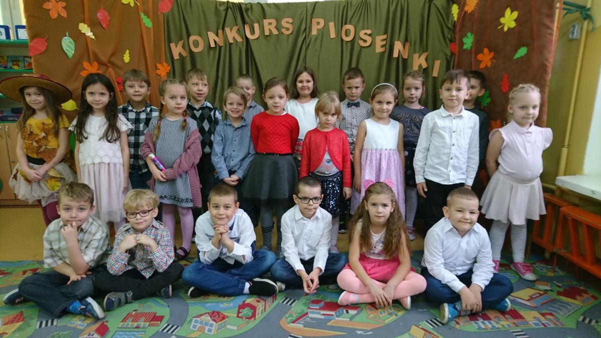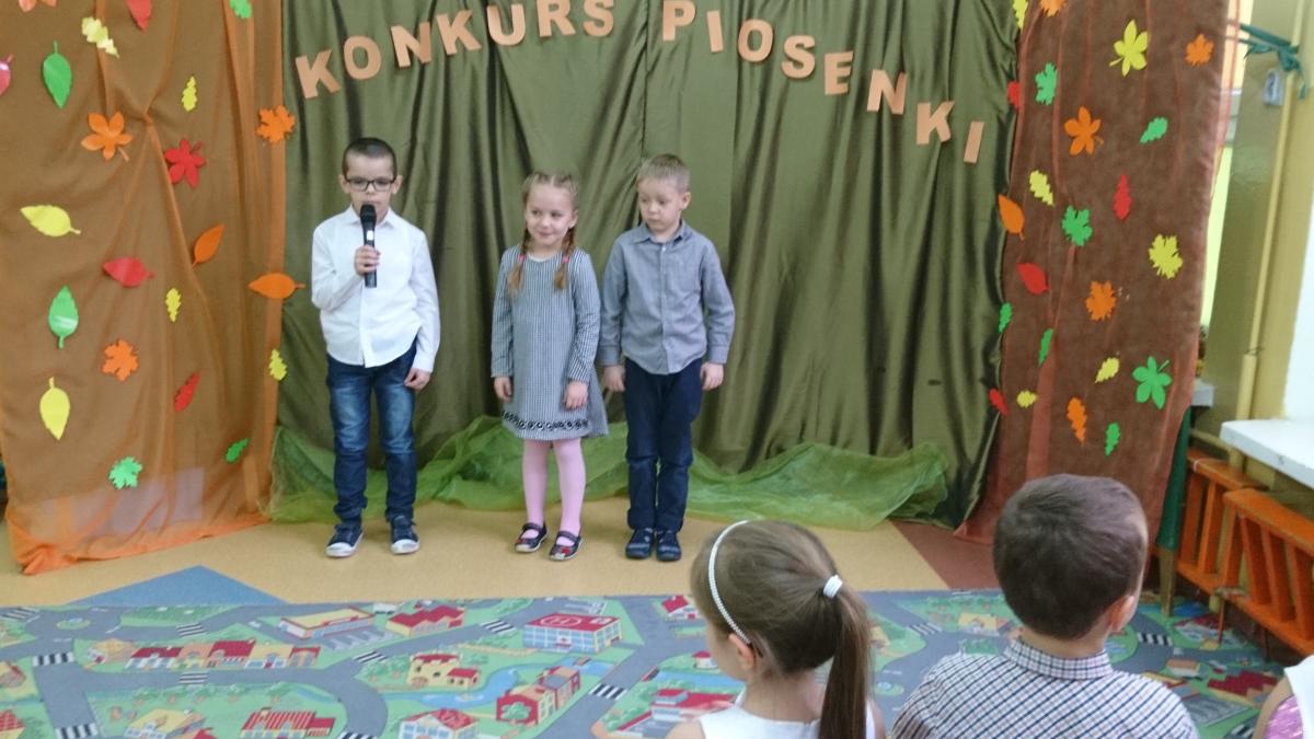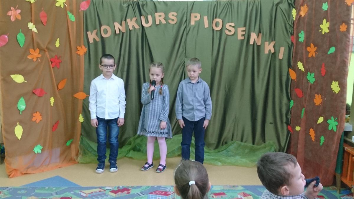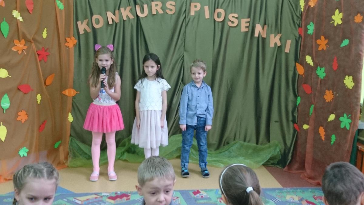Dodane przez grupa4 - 13.11.2020 W piątek w naszej grupie odbył się Konkurs Piosenki "Jesienne nastroje". Dzieci pięknie się zaprezentowały śpiewając piosenki o tematyce jesiennej. Wszyscy otrzymali dyplomy oraz drobne upominki.