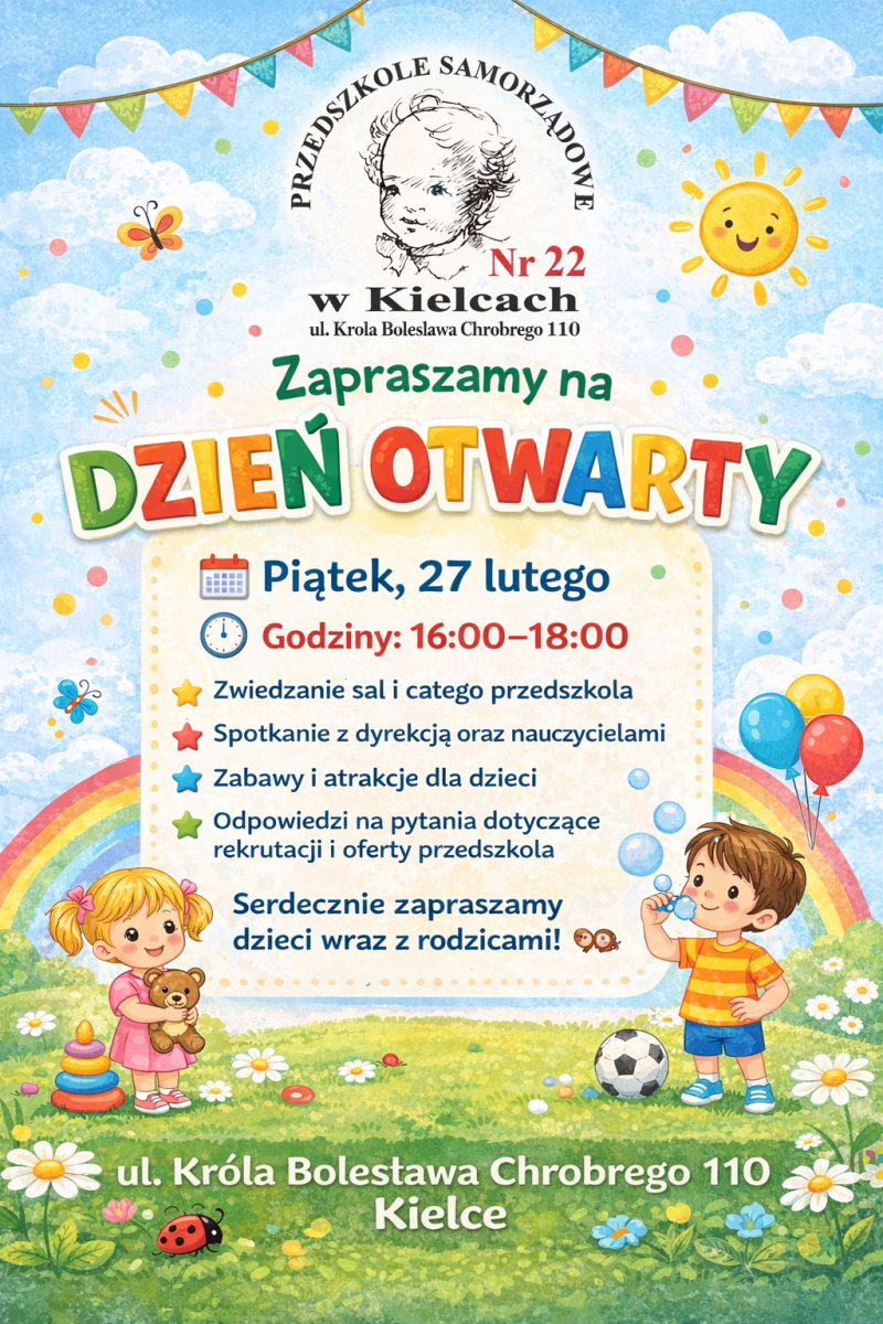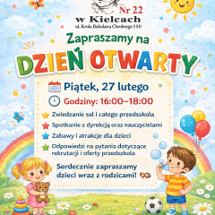 Dodane przez przedszkole22 - 14.02.2026 Serdecznie zapraszamy na DZIEŃ OTWARTY przedszkola 27 lutego w piątek w godzinach 16.00-18.00.