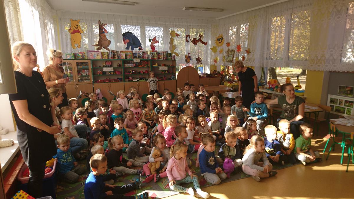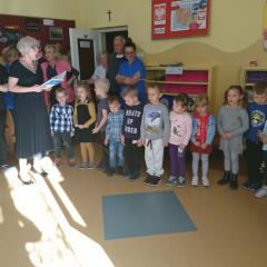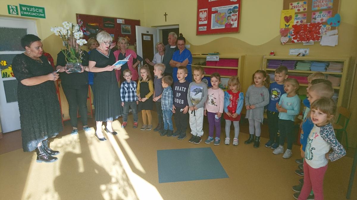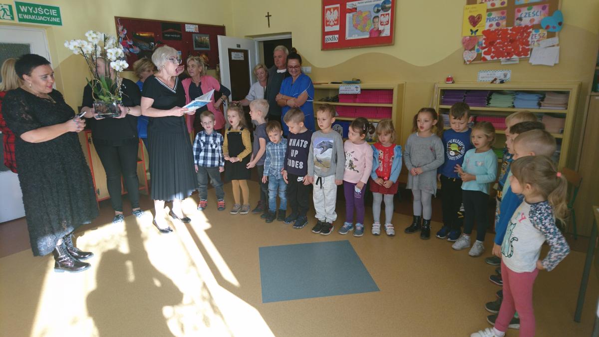 W tym szczególnym dniu wszystkie grupy przedszkole spotkały się w sali Pszczółek, które przygotowały życzenia i piosenkę dla pracowników przedszkola. Następnie wszystkie dzieci zaśpiewały sto lat. Był to bardzo radosny i słoneczny dzień w naszym przedszkolu.