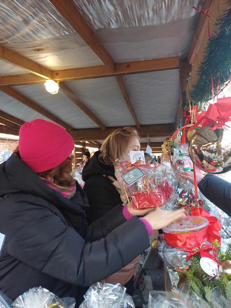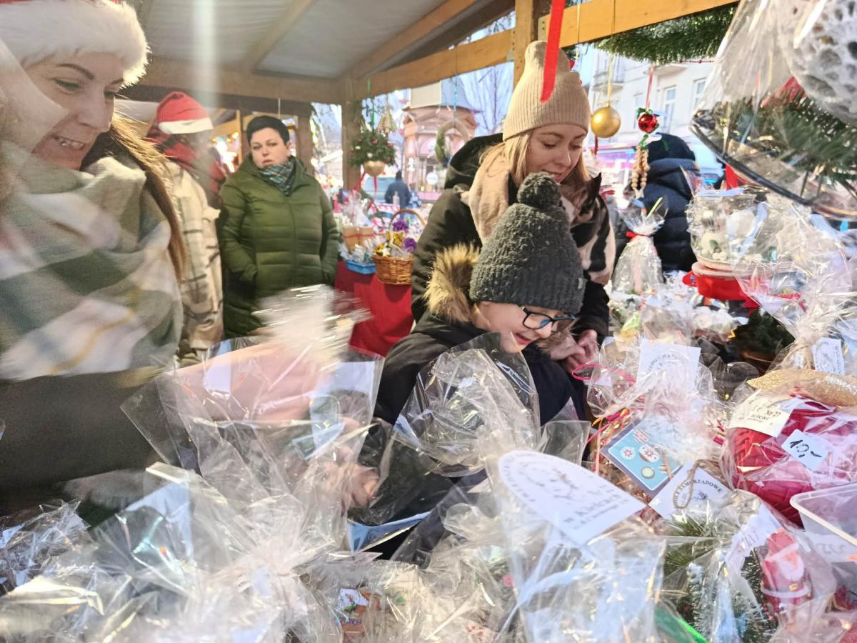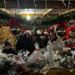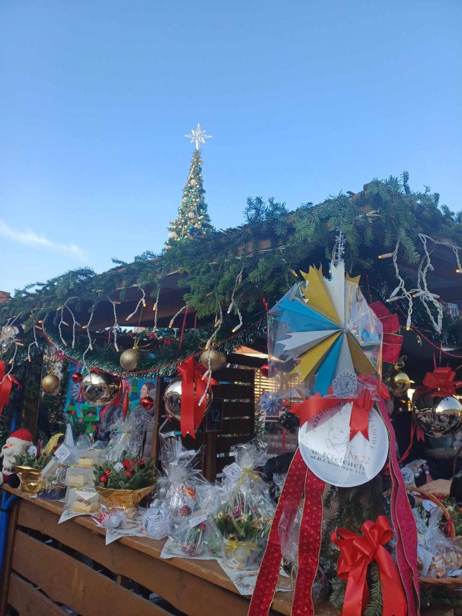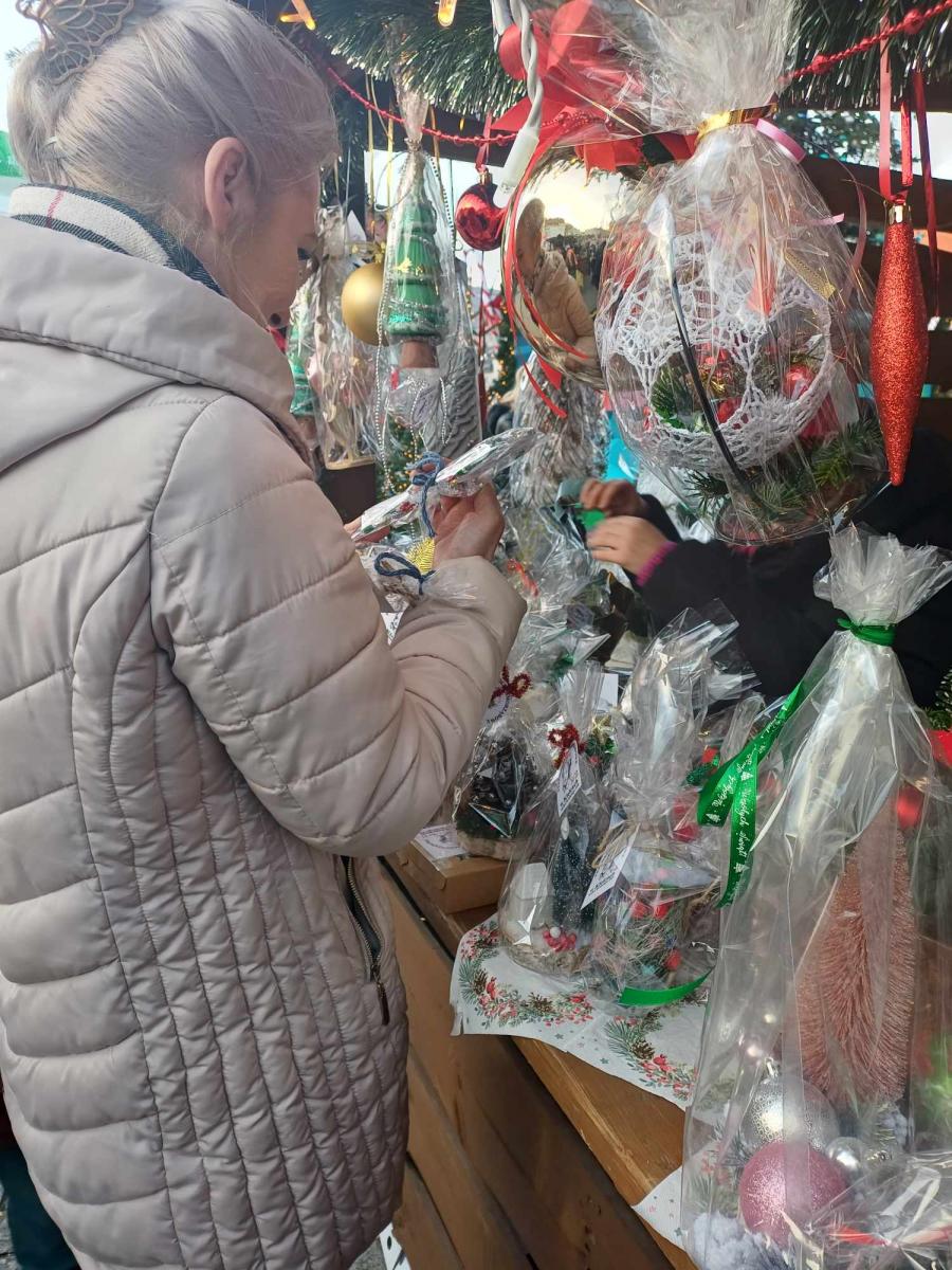 Przedszkolne stoisko wyróżniało się kolorowymi dekoracjami, zapachem świątecznych wypieków oraz serdeczną, świąteczną atmosferą. Każdy mógł znaleźć coś wyjątkowego – od ręcznie wykonanych ozdób po pyszne, domowe słodkości.