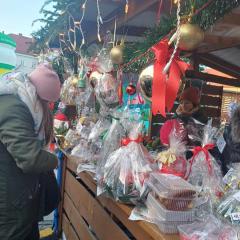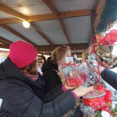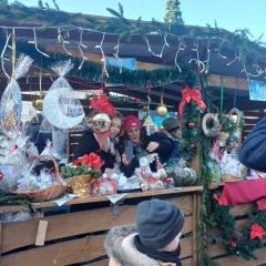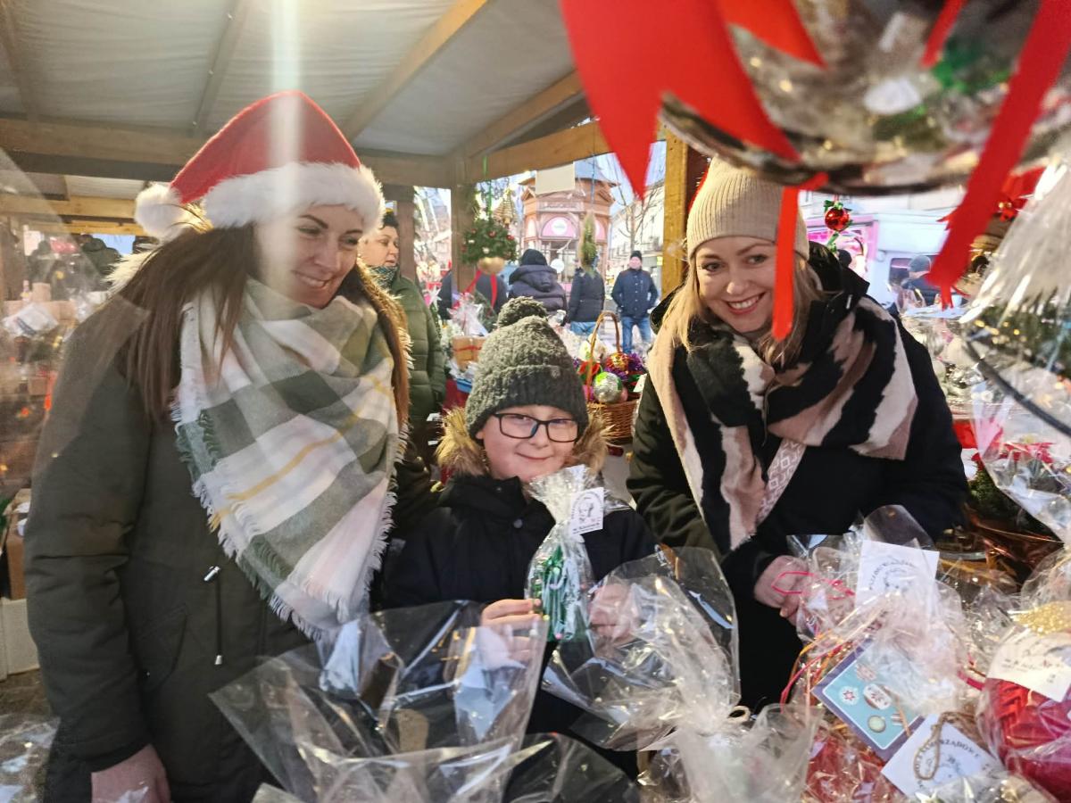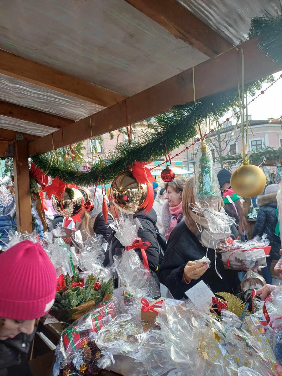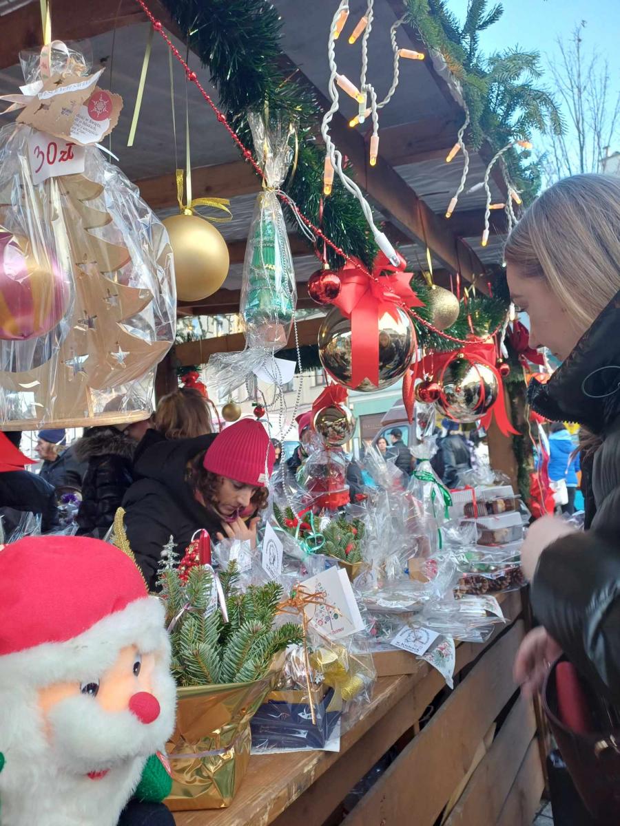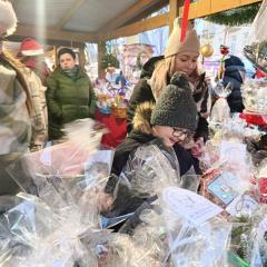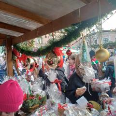Przedszkolne stoisko wyróżniało się kolorowymi dekoracjami, zapachem świątecznych wypieków oraz serdeczną, świąteczną atmosferą. Każdy mógł znaleźć coś wyjątkowego – od ręcznie wykonanych ozdób po pyszne, domowe słodkości.