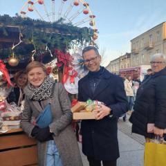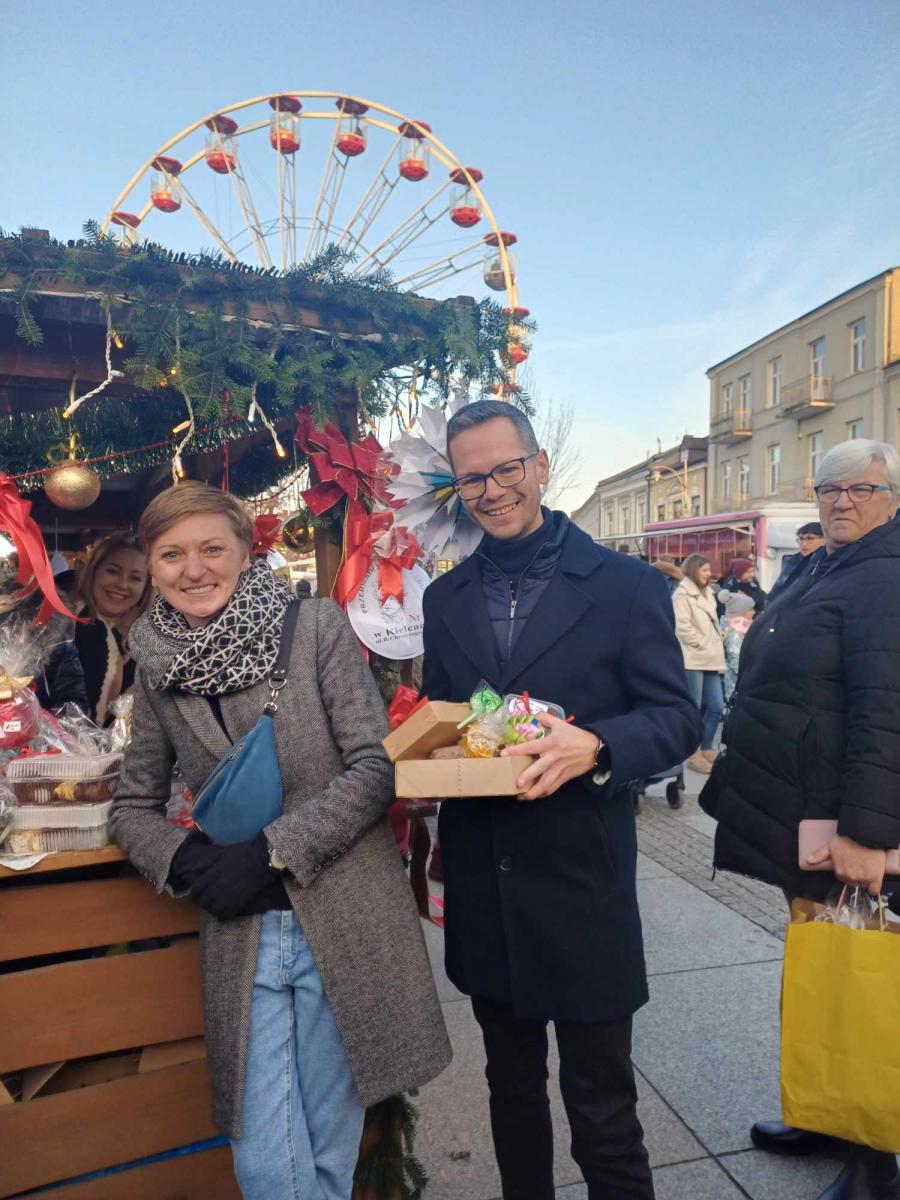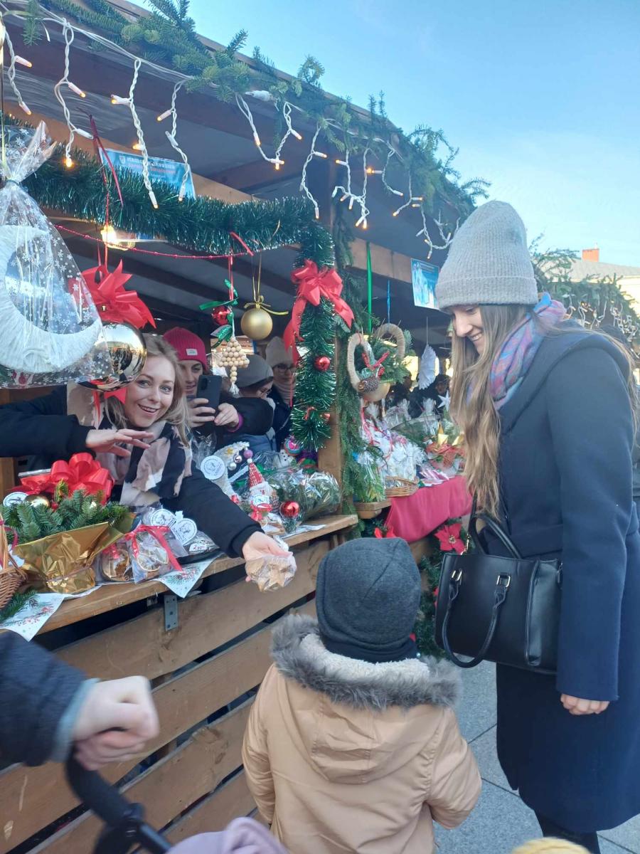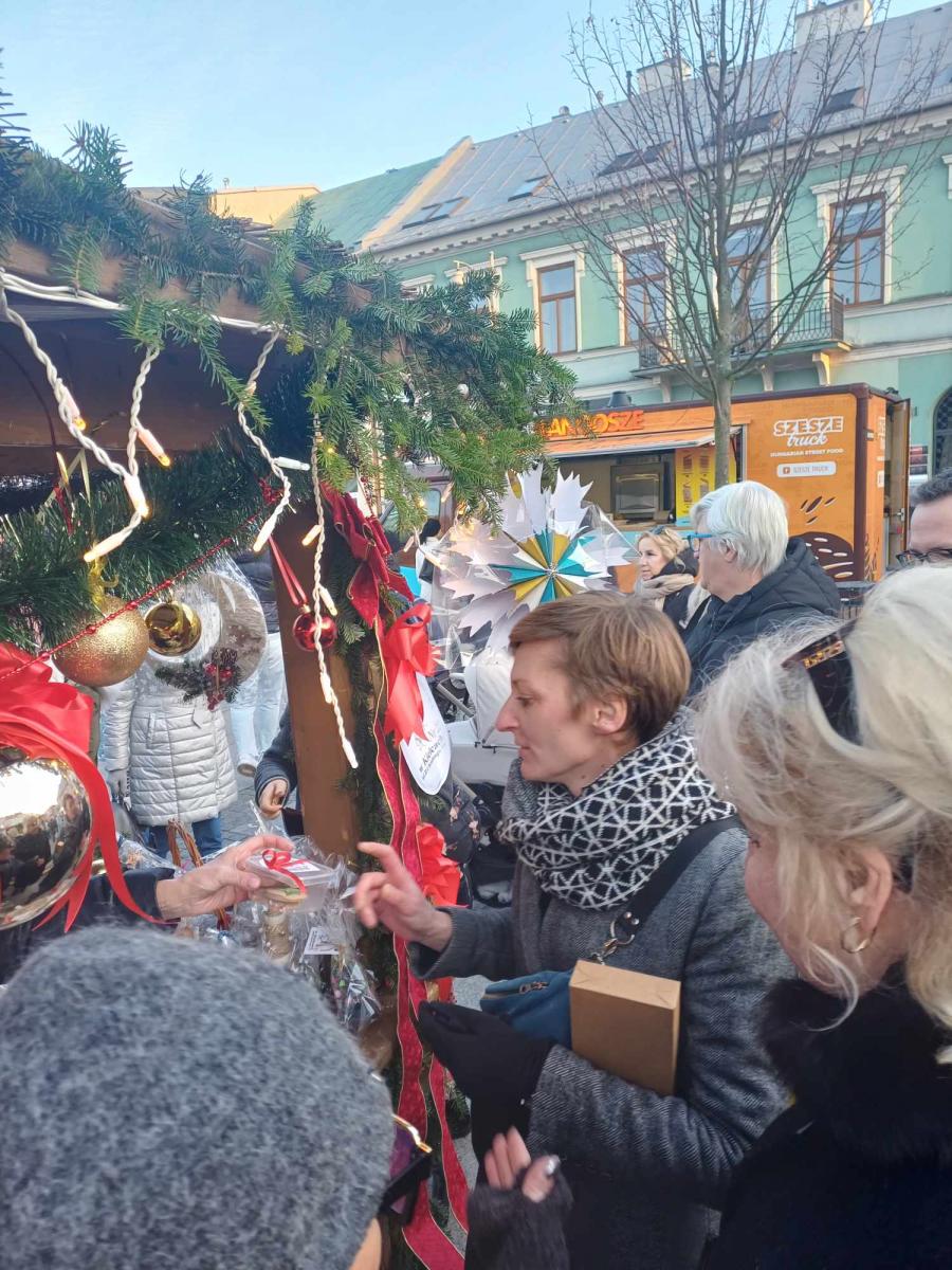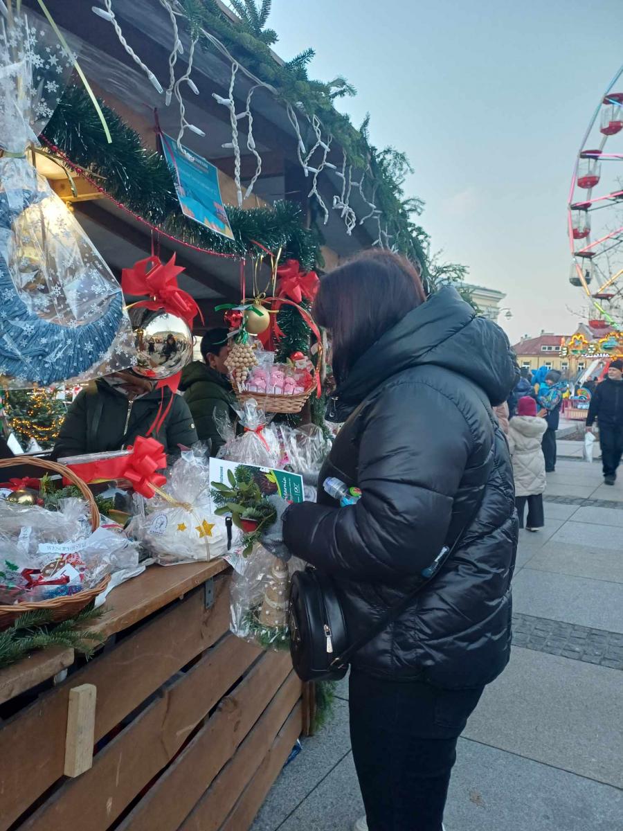 Miłym i wyjątkowym akcentem było również to, że zakupy w naszym przedszkolnym stoisku zrobiła Prezydentka Miasta Kielce, Pani Agata Wojda, za co bardzo dziękujemy. Ogromną radość sprawiły nam także odwiedziny byłych pracowników przedszkola, z którymi mogliśmy się spotkać i wspólnie poczuć świąteczny klimat.