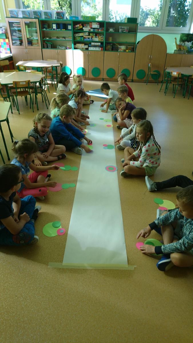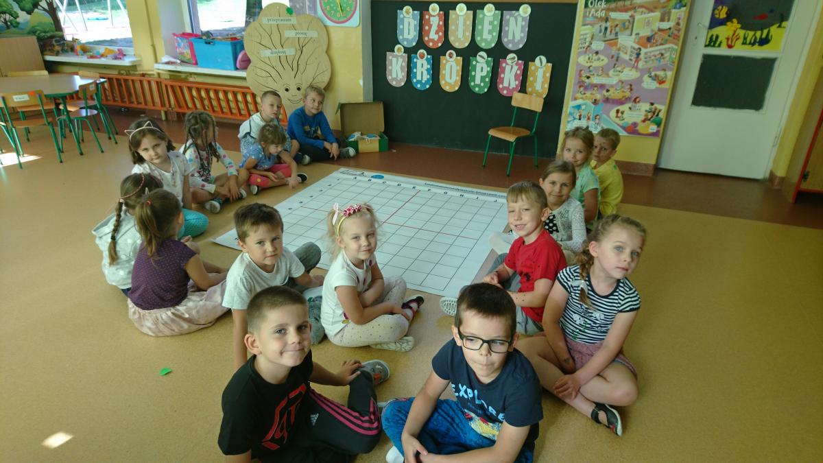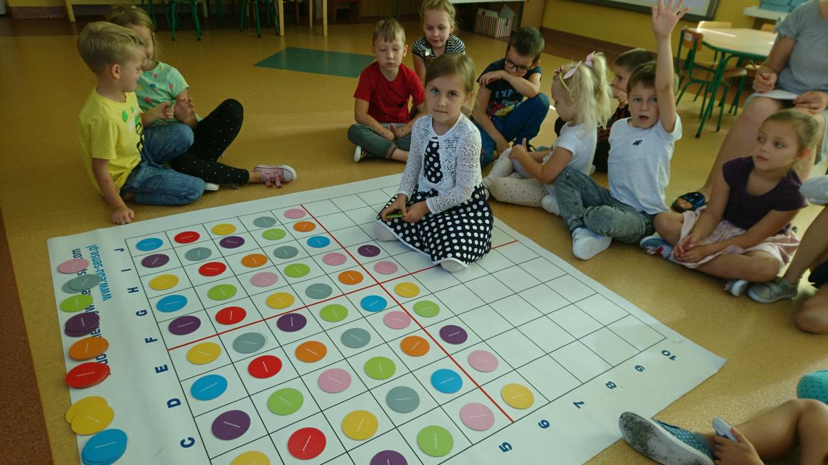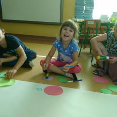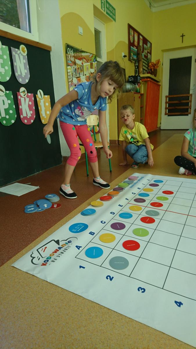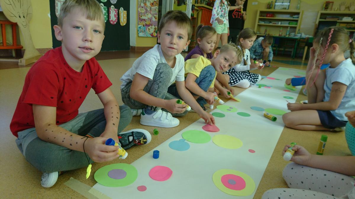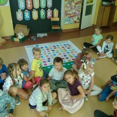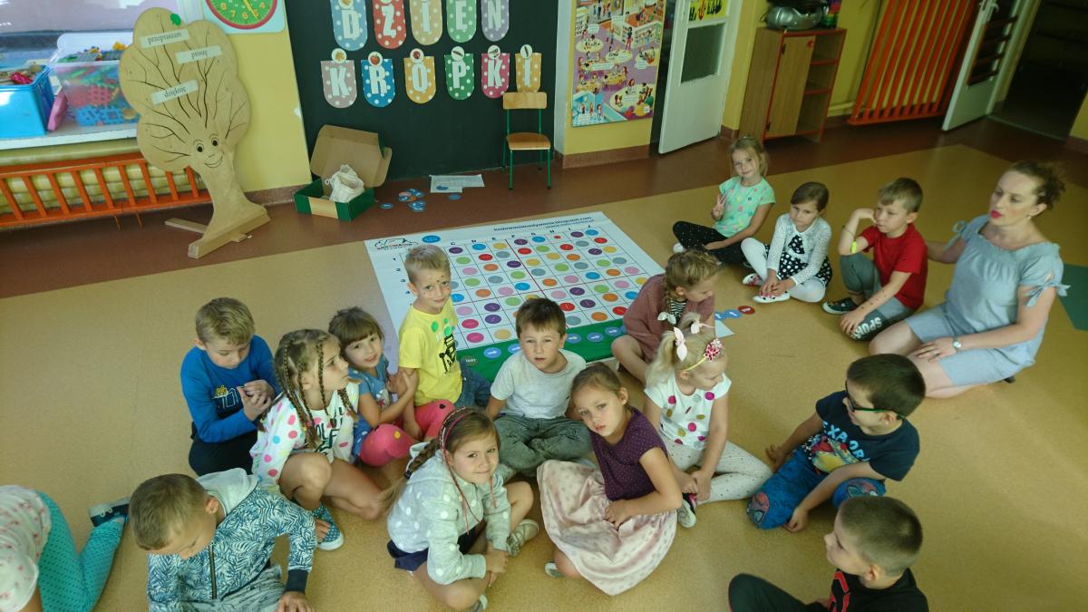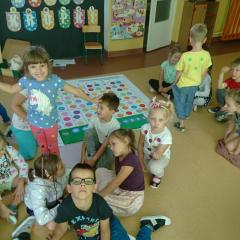 15 września obchodzimy Międzynarodowy Dzień Kropki. Z tej okazji dzieci z grupy Pszczółek poznały historię Vashti, małej dziewczynki która nie wierzyła w swoje możliwości. Układały rytmy na macie do kodowania, następnie kod do kropki przy użyciu strzałek kierunkowych. Dzieci stworzyły wspólną pracę plastyczną, w której punktem wyjściowym była kropka, inspirująca i skłaniająca do refleksji.