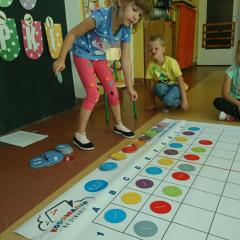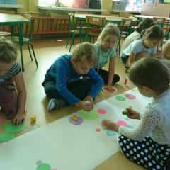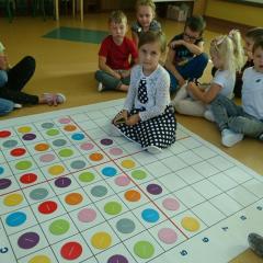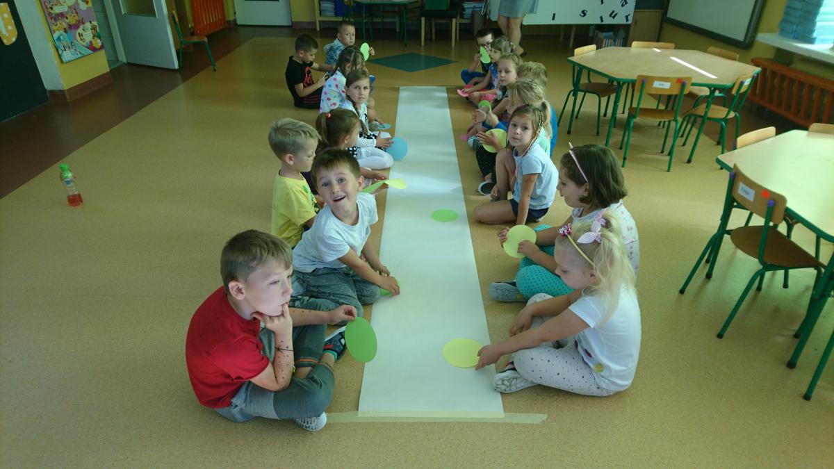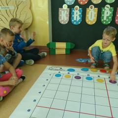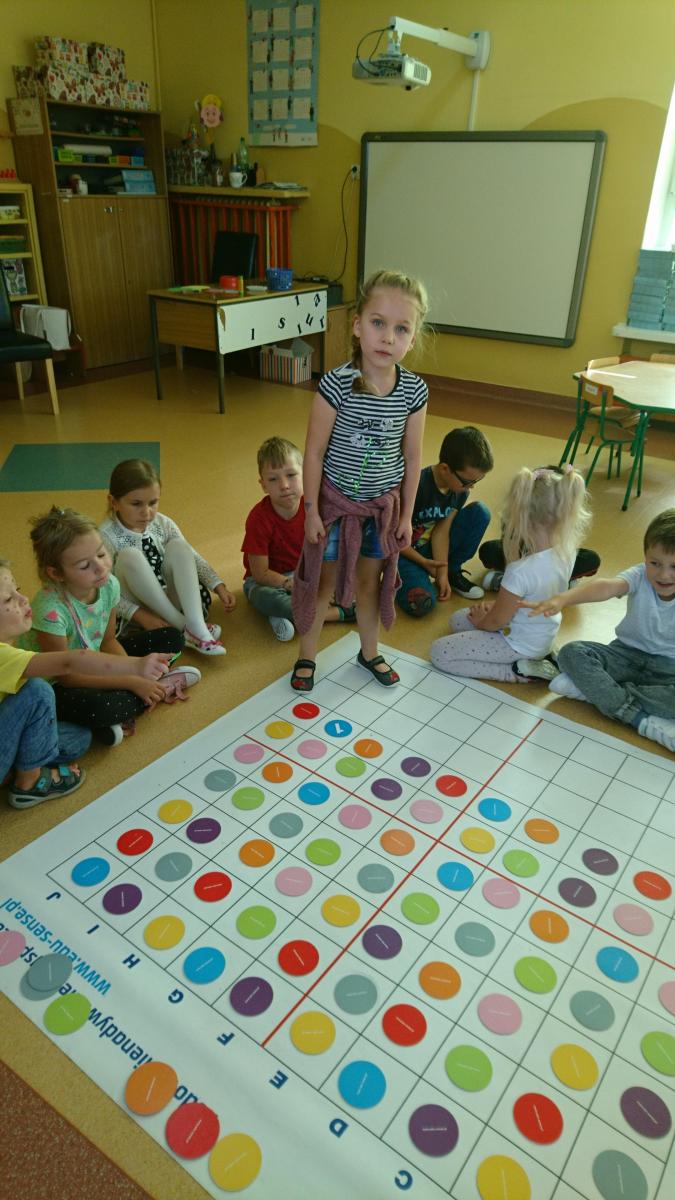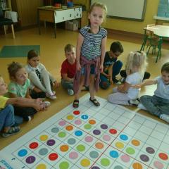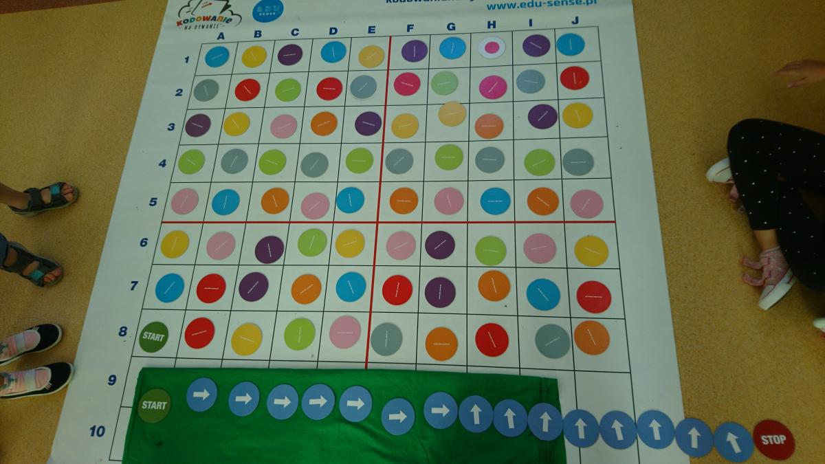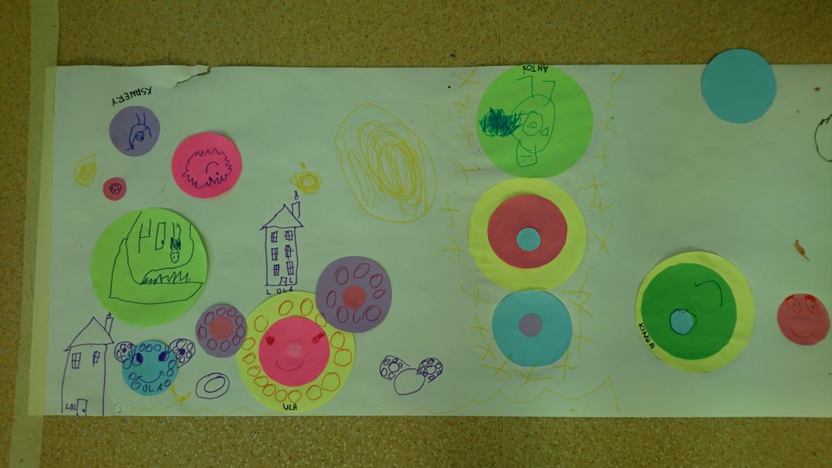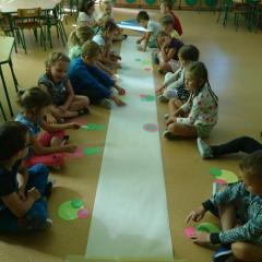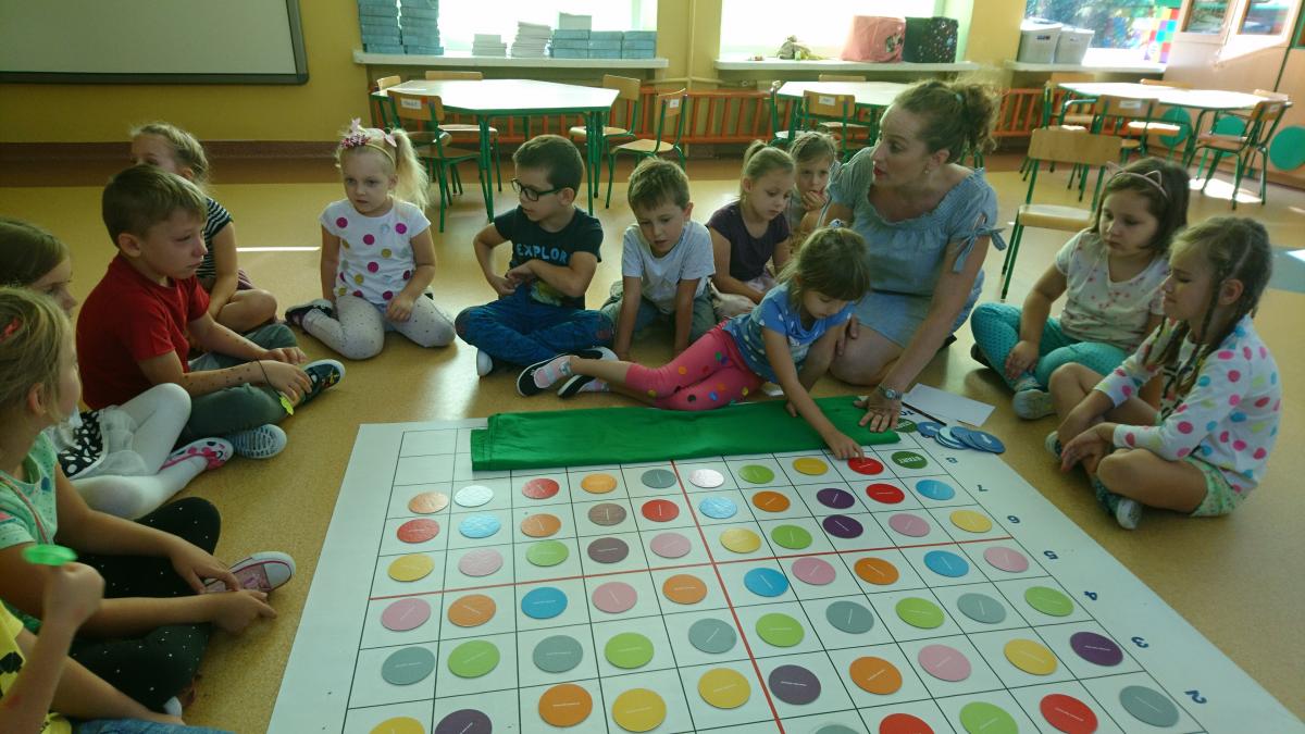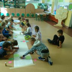 15 września obchodzimy Międzynarodowy Dzień Kropki. Z tej okazji dzieci z grupy Pszczółek poznały historię Vashti, małej dziewczynki która nie wierzyła w swoje możliwości. Układały rytmy na macie do kodowania, następnie kod do kropki przy użyciu strzałek kierunkowych. Dzieci stworzyły wspólną pracę plastyczną, w której punktem wyjściowym była kropka, inspirująca i skłaniająca do refleksji.