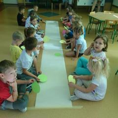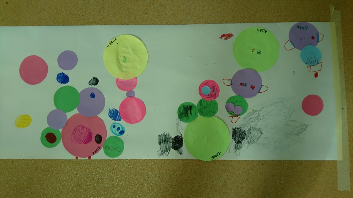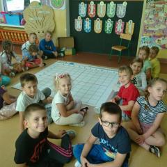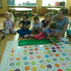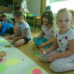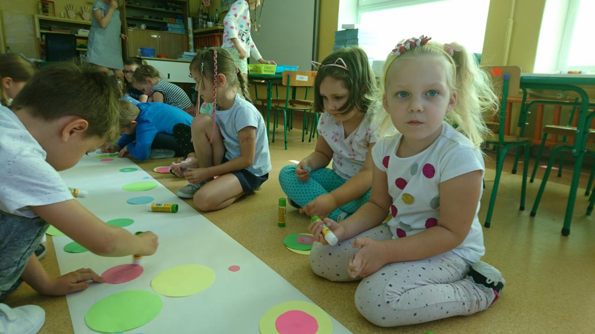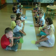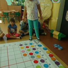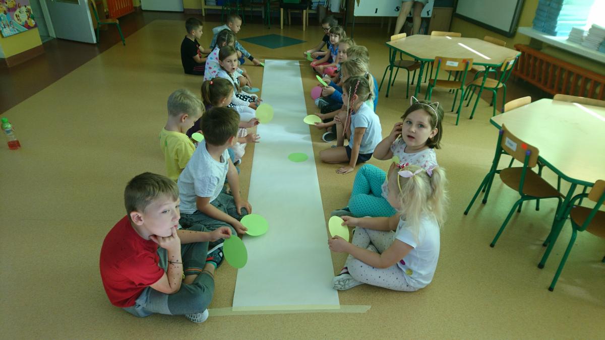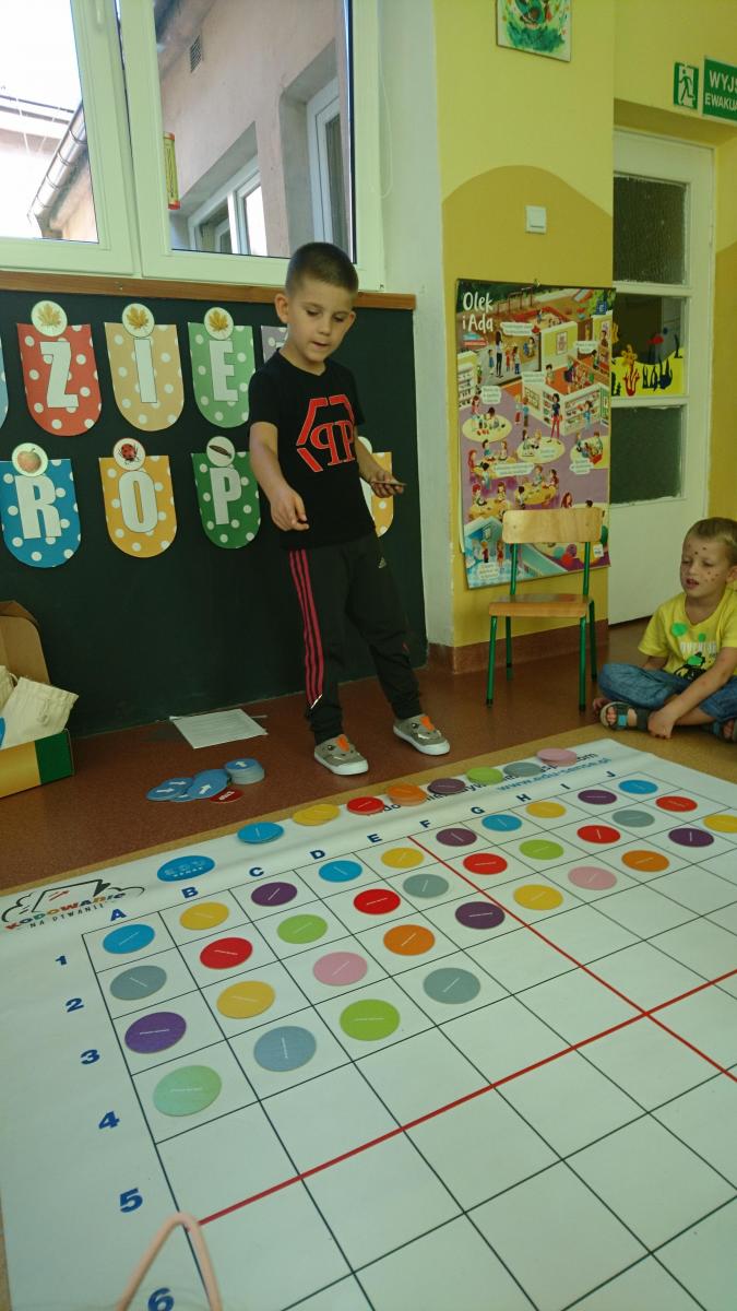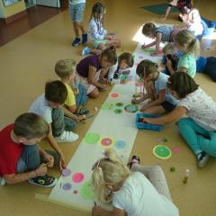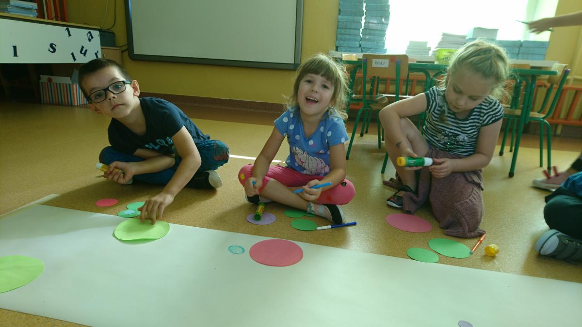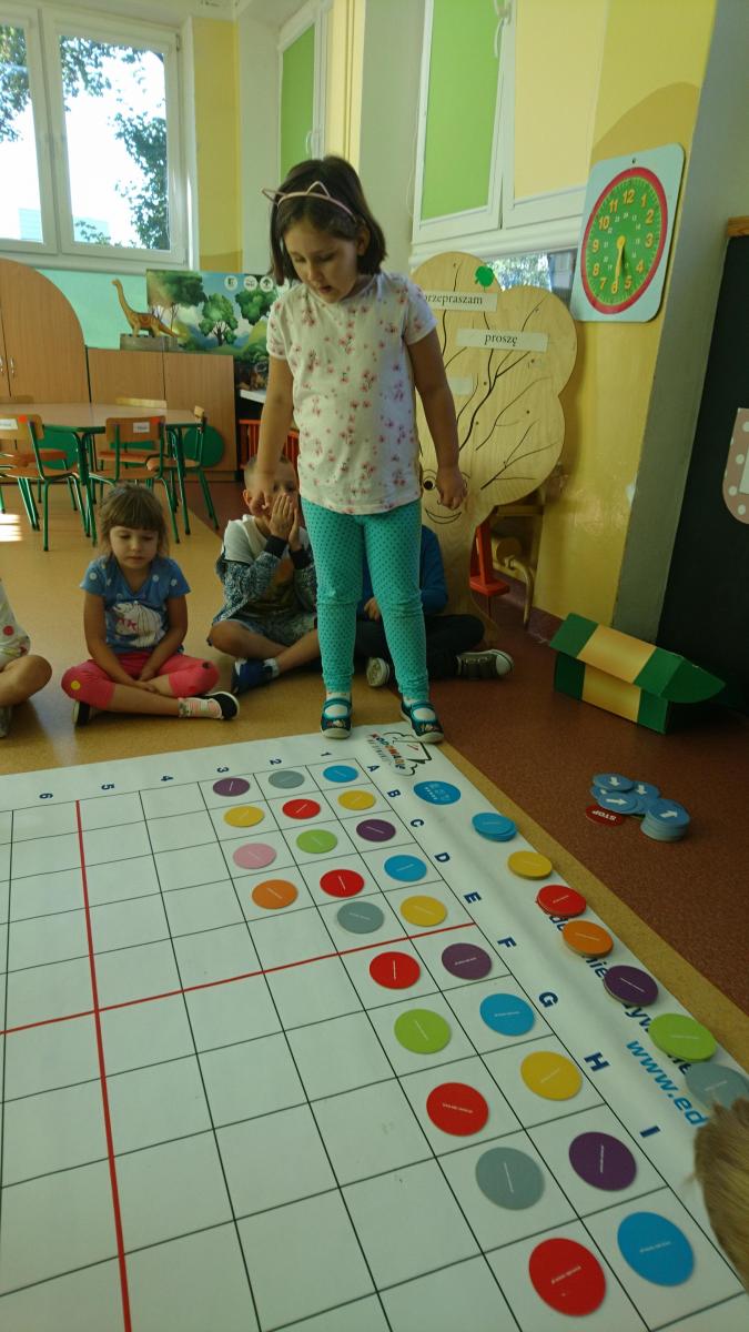 15 września obchodzimy Międzynarodowy Dzień Kropki. Z tej okazji dzieci z grupy Pszczółek poznały historię Vashti, małej dziewczynki która nie wierzyła w swoje możliwości. Układały rytmy na macie do kodowania, następnie kod do kropki przy użyciu strzałek kierunkowych. Dzieci stworzyły wspólną pracę plastyczną, w której punktem wyjściowym była kropka, inspirująca i skłaniająca do refleksji.