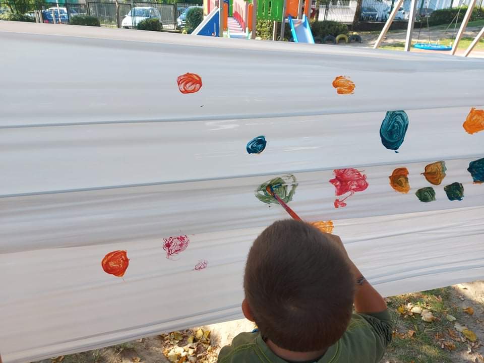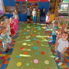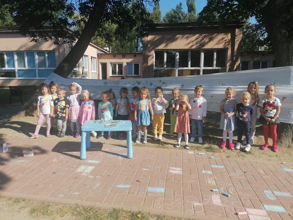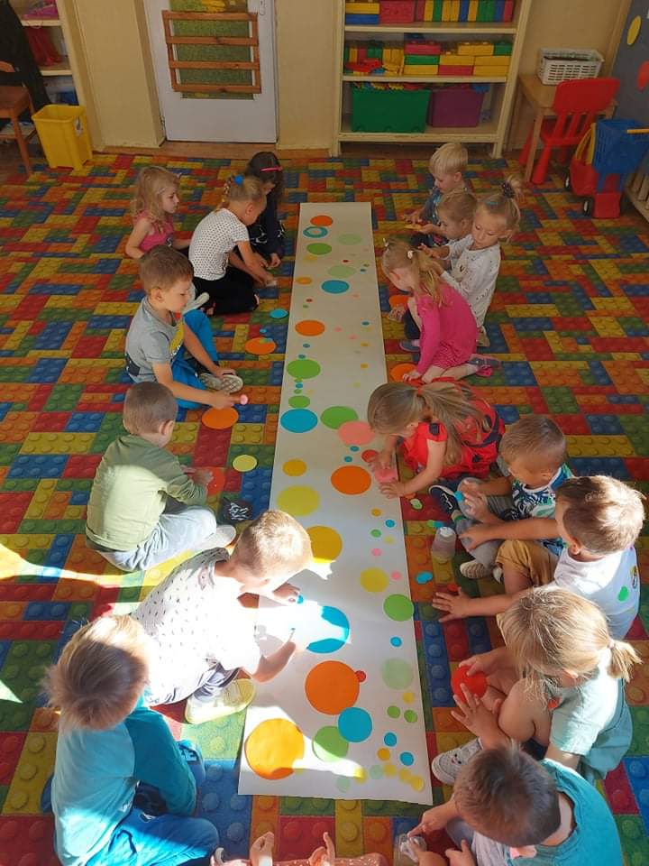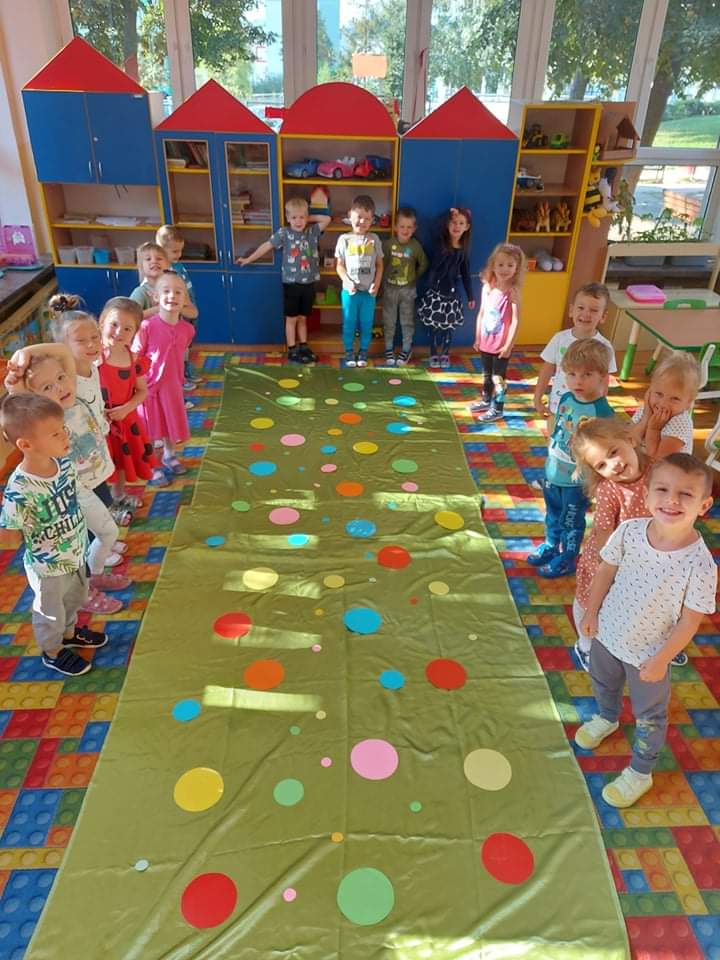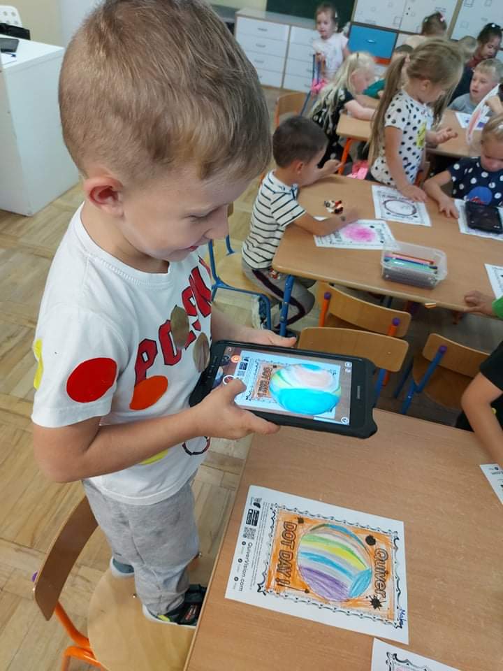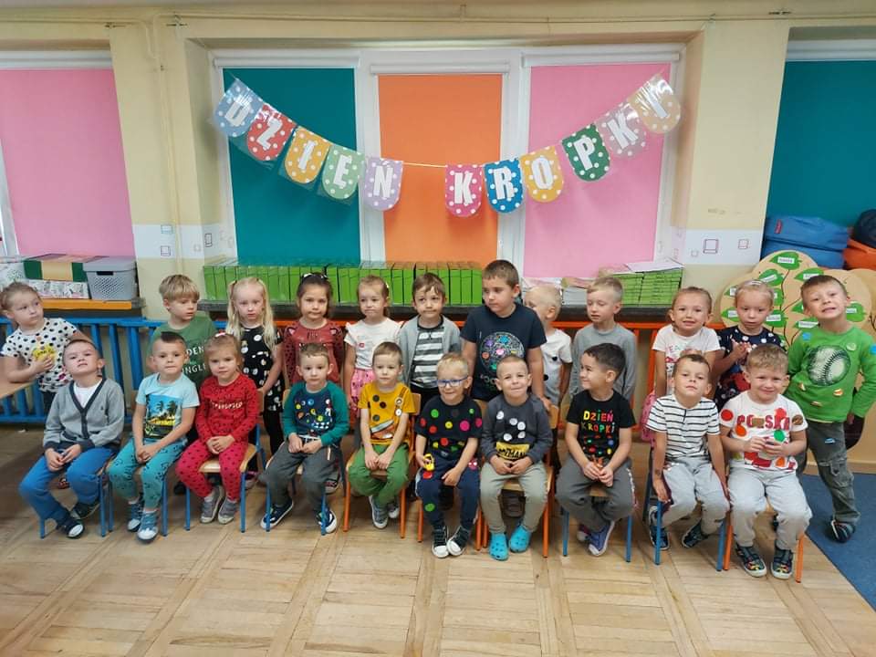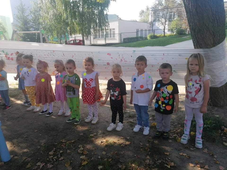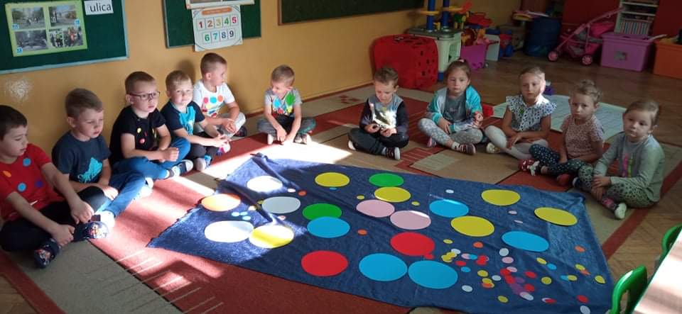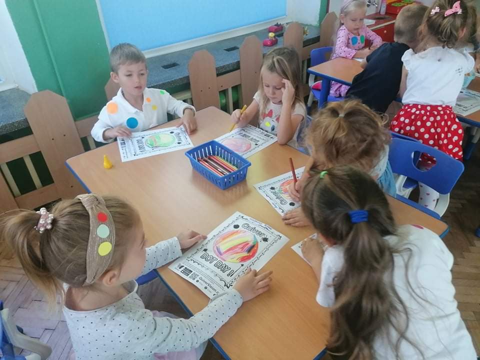 15 września obchodziliśmy Dzień Kropki, święto kreatywności, pokonywania ograniczeń oraz umacniania wiary we własne siły. Dzieci poznały historię Vashti, bohaterki "Kropki" Petera Reynoldsa. Dzieci wykonały mnóstwo zakropkowanych zadań. Bawiliśmy się z chustą animacyjną, balonami, dzieci rysowały kropki kredą, a swoją kreatywnością wykazywały się podczas malowania farbami na folii. Swoje kolorowe kropki oglądały w aplikacji Quiver na tablecie. Dzieci udowodniły, że są wyjątkowe, świetnie pracują, są kreatywne i mają wspaniałe pomysły. Brawo Przedszkolaki ?