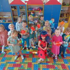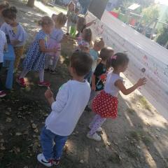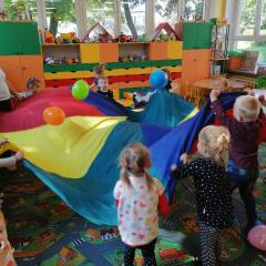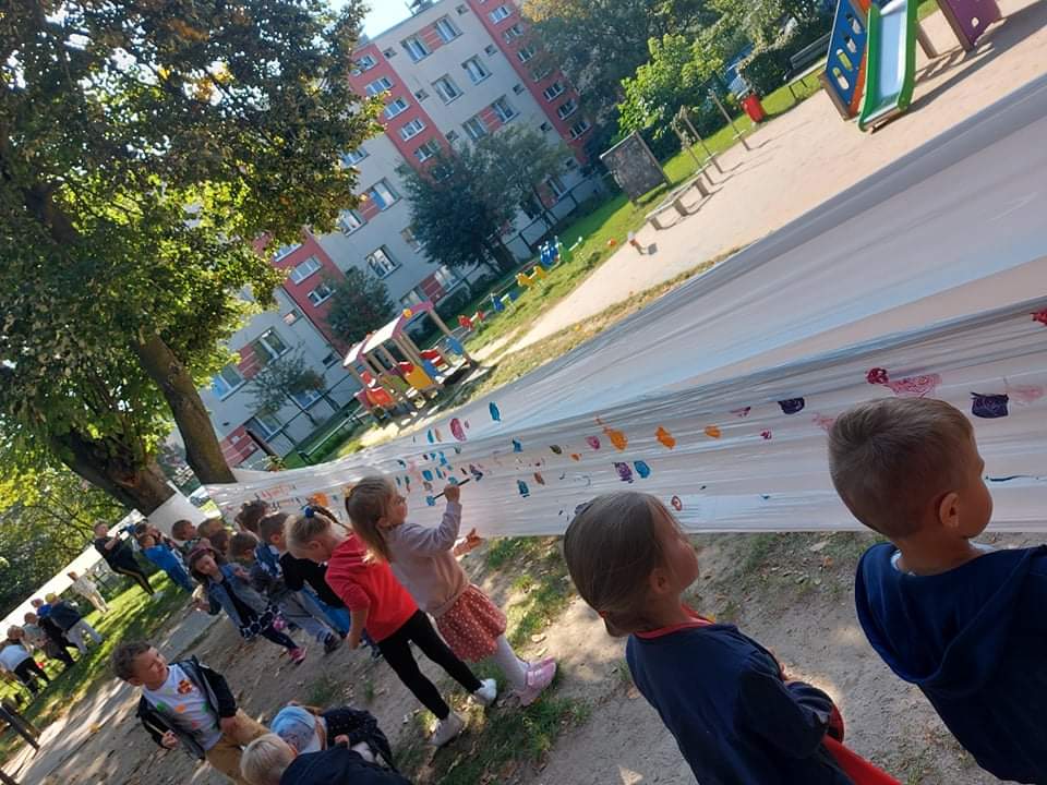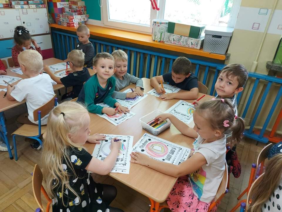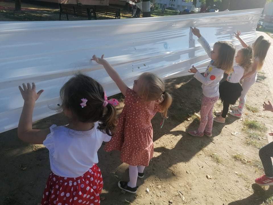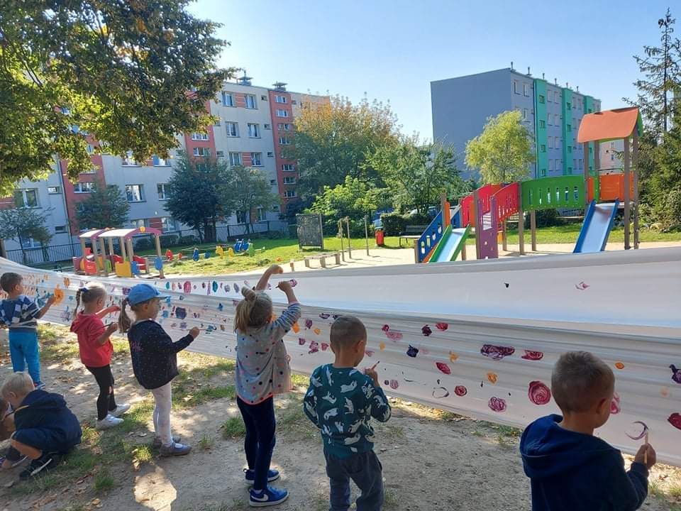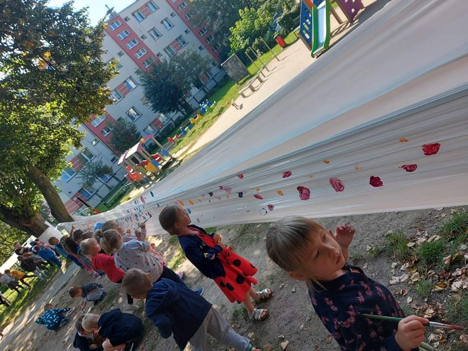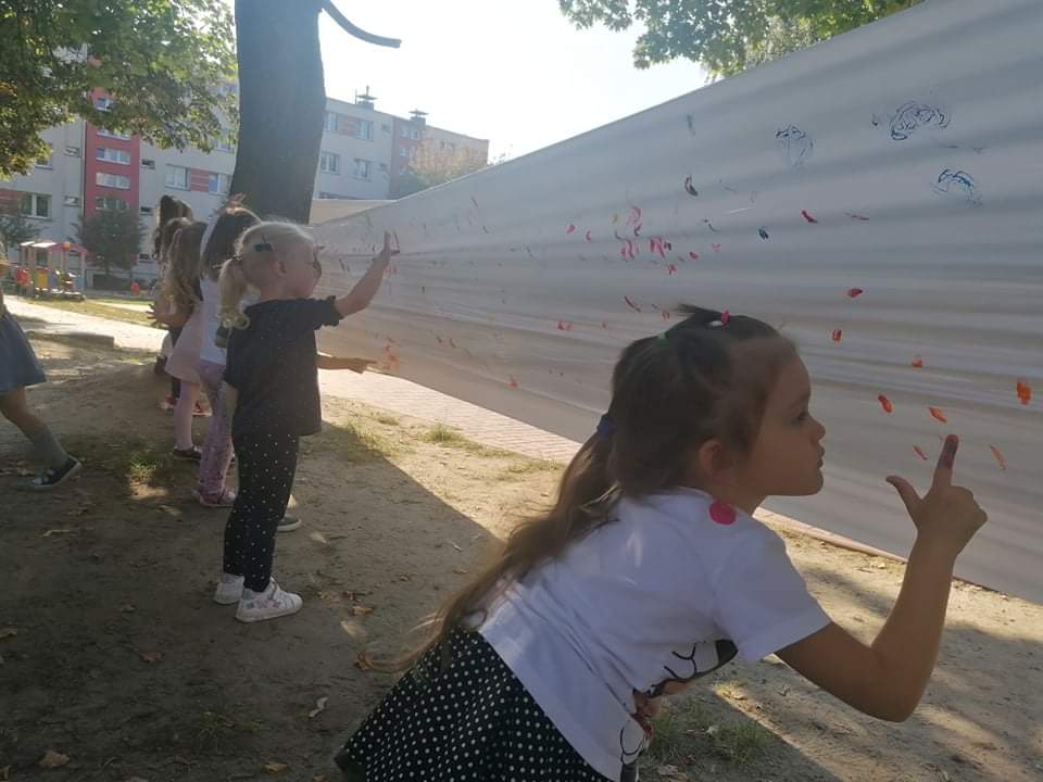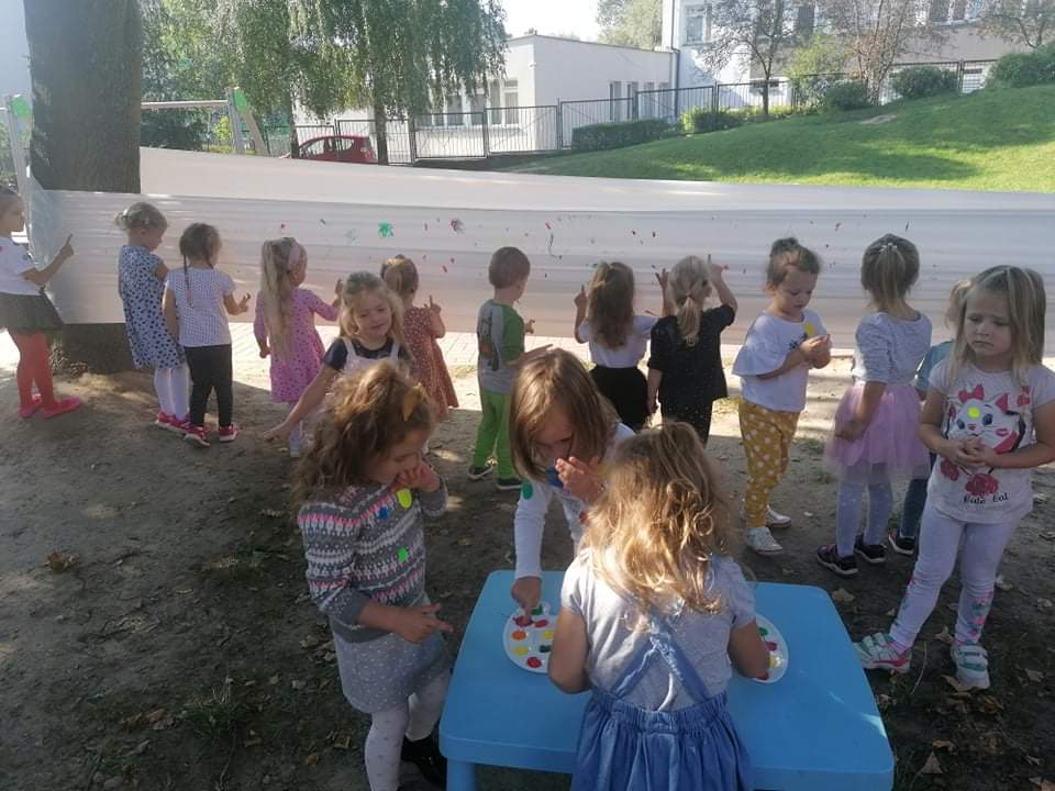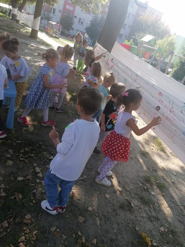15 września obchodziliśmy Dzień Kropki, święto kreatywności, pokonywania ograniczeń oraz umacniania wiary we własne siły. Dzieci poznały historię Vashti, bohaterki "Kropki" Petera Reynoldsa. Dzieci wykonały mnóstwo zakropkowanych zadań. Bawiliśmy się z chustą animacyjną, balonami, dzieci rysowały kropki kredą, a swoją kreatywnością wykazywały się podczas malowania farbami na folii. Swoje kolorowe kropki oglądały w aplikacji Quiver na tablecie. Dzieci udowodniły, że są wyjątkowe, świetnie pracują, są kreatywne i mają wspaniałe pomysły. Brawo Przedszkolaki ?