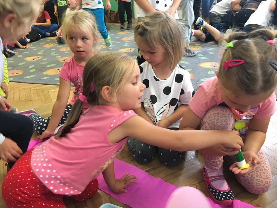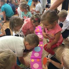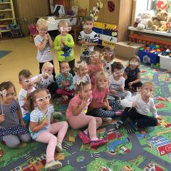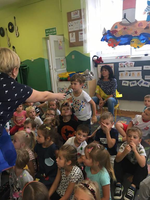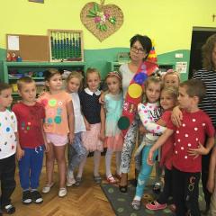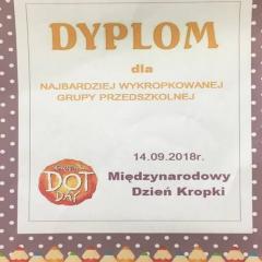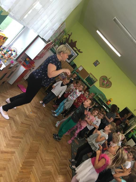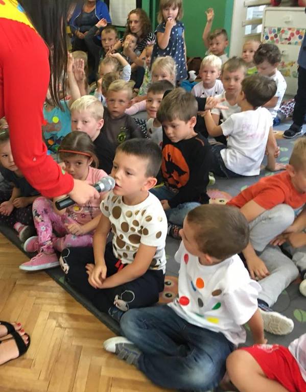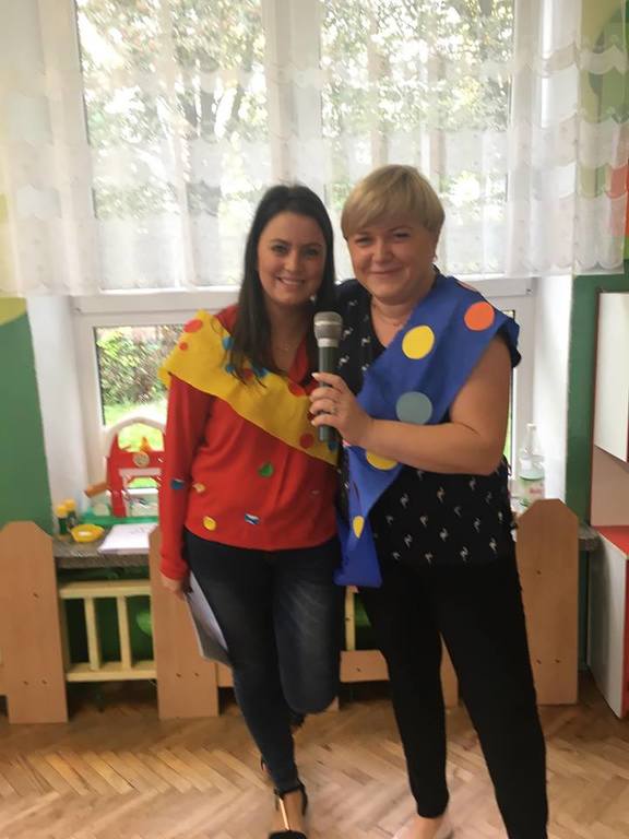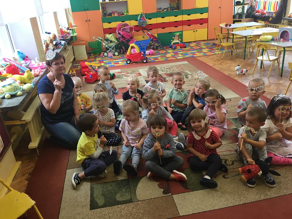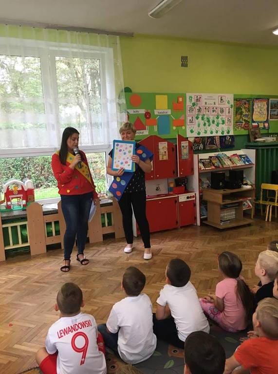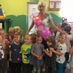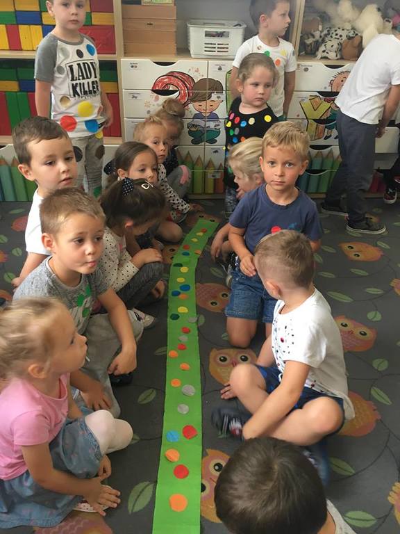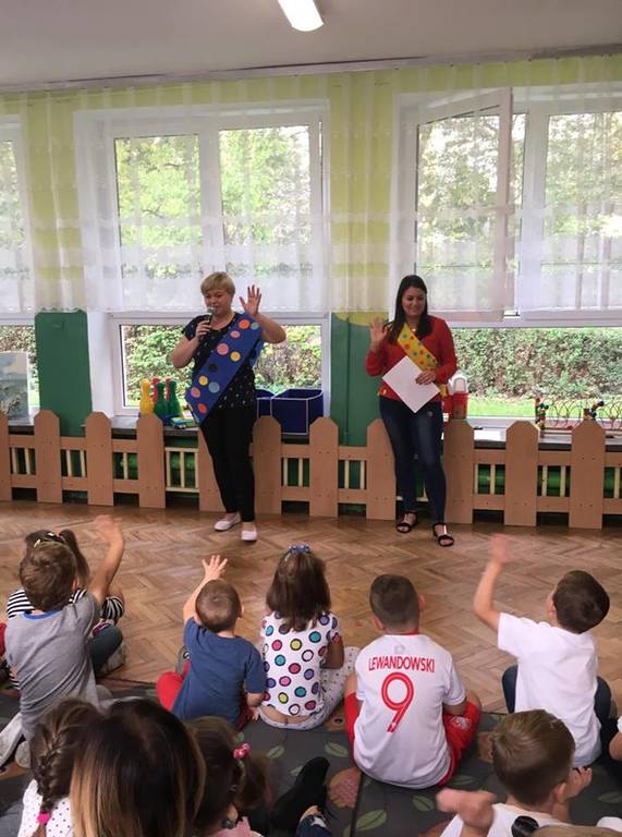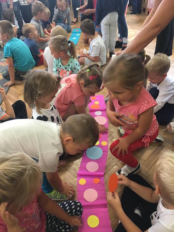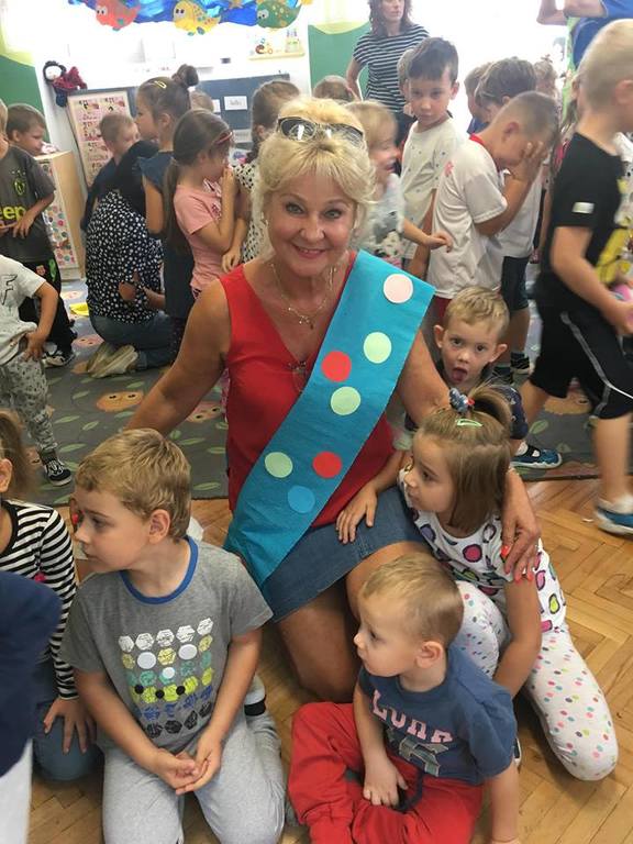 Tak świętowaliśmy wspólnie Dzien Kropki! Żabki w swoje sali gościły dziś całe przedszkole ? Uroczystość rozpoczęliśmy powitaniem wszystkich dzieci śpiewając piosenkę w języku angielskim. Następnie rozwiązywaliśmy zagadkę, która wprowadzała w tematykę dzisiejszego dnia. Przybliżyliśmy dzieciom ideę Dnia Kropki oraz opowiedziałyśmy historie o małej Vashti. Następnie wszyscy chwalili się swoimi talentami. Pani Sara zaśpiewała piosenkę „Biedroneczki są w kropeczki”, do której dzieci wspaniale zatańczyły. Kolejnym zadaniem było udekorowanie swojej Pani, wyklejając kolorowymi kropeczkami szal z bibuły. Wszyscy bardzo się starali, by ich Pani wyglądała najpiękniej w całym przedszkolu ? Kolejno przyszedł czas na odgadywanie jakie super moce i talenty mają ulubieni bajkowi bohaterowie naszych milusińskich. Po wykonanym zadaniu wręczone zostały dyplomy dla najbardziej „wykropkowanej” grupy w całym przedszkolu. Na zakończenie odtańczyliśmy wspólnie Hamster Dance. Dzieci pozowały do zdjęć z kropeczkowymi gadżetami oraz wykonały prace plastyczna - mandale. Dziękujemy ślicznie za tak staranne przygotowanie dzieci do dzisiejszej uroczystości! Brawo dla Państwa! ??