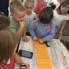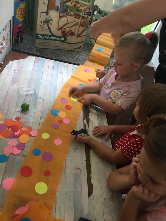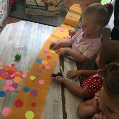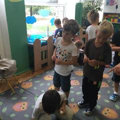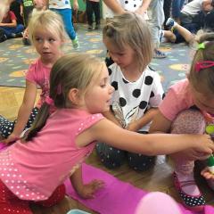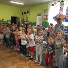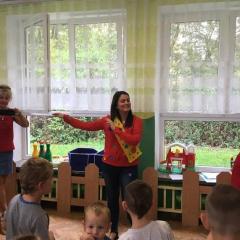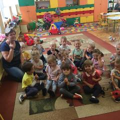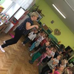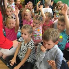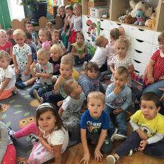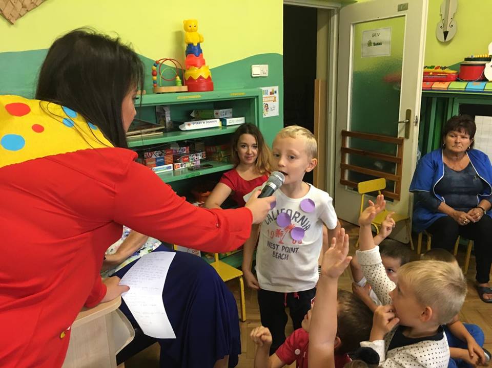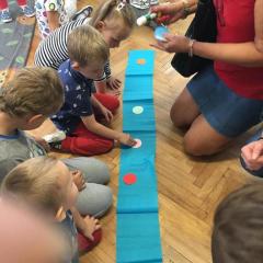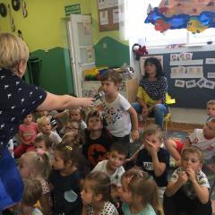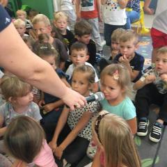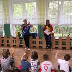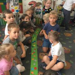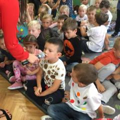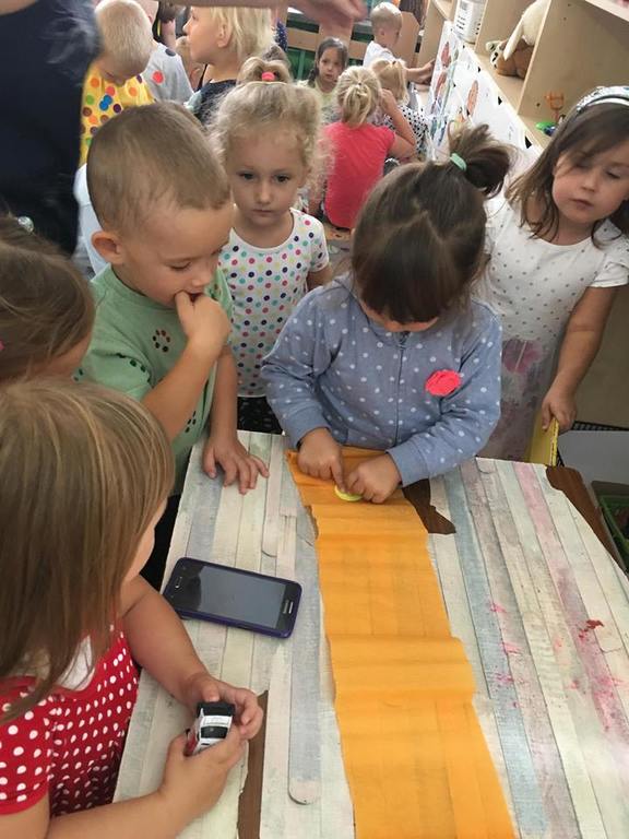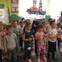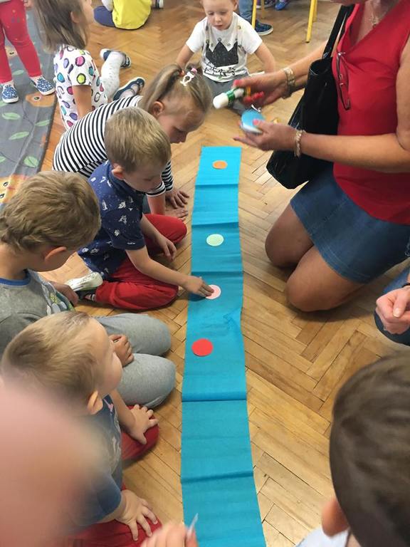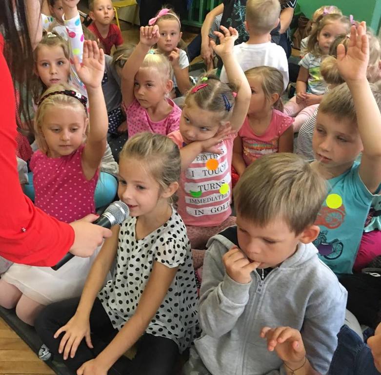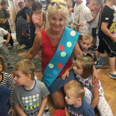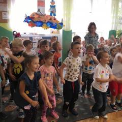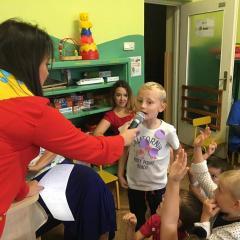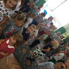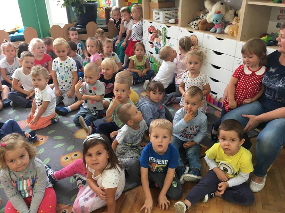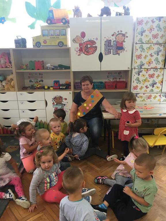 Tak świętowaliśmy wspólnie Dzien Kropki! Żabki w swoje sali gościły dziś całe przedszkole ? Uroczystość rozpoczęliśmy powitaniem wszystkich dzieci śpiewając piosenkę w języku angielskim. Następnie rozwiązywaliśmy zagadkę, która wprowadzała w tematykę dzisiejszego dnia. Przybliżyliśmy dzieciom ideę Dnia Kropki oraz opowiedziałyśmy historie o małej Vashti. Następnie wszyscy chwalili się swoimi talentami. Pani Sara zaśpiewała piosenkę „Biedroneczki są w kropeczki”, do której dzieci wspaniale zatańczyły. Kolejnym zadaniem było udekorowanie swojej Pani, wyklejając kolorowymi kropeczkami szal z bibuły. Wszyscy bardzo się starali, by ich Pani wyglądała najpiękniej w całym przedszkolu ? Kolejno przyszedł czas na odgadywanie jakie super moce i talenty mają ulubieni bajkowi bohaterowie naszych milusińskich. Po wykonanym zadaniu wręczone zostały dyplomy dla najbardziej „wykropkowanej” grupy w całym przedszkolu. Na zakończenie odtańczyliśmy wspólnie Hamster Dance. Dzieci pozowały do zdjęć z kropeczkowymi gadżetami oraz wykonały prace plastyczna - mandale. Dziękujemy ślicznie za tak staranne przygotowanie dzieci do dzisiejszej uroczystości! Brawo dla Państwa! ??