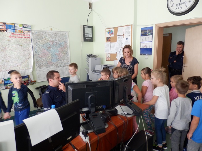 13 września grupa Smerfów odwiedziła Komisariat Policji I. W spotkaniu uczestniczyli nadkom. Marcin Chatys- zastępca Komendanta Miejskiego Policji w Kielcach oraz policjantki i policjanci Komisariatu Policji I w Kielcach. Spotkanie prowadziły: sierż. Pędzik Małgorzata, mł.asp. Joanna Woźniak- Krześ, sierż. Iwona Kępa oraz Koziołek SPOKO.