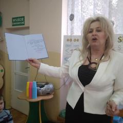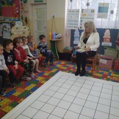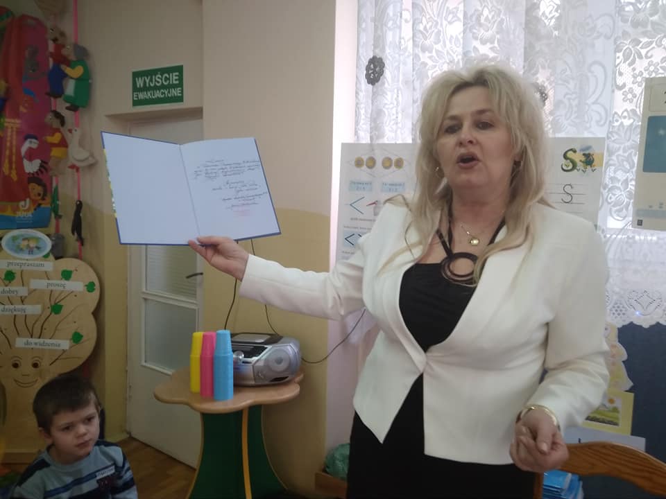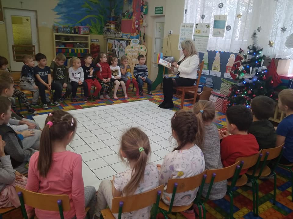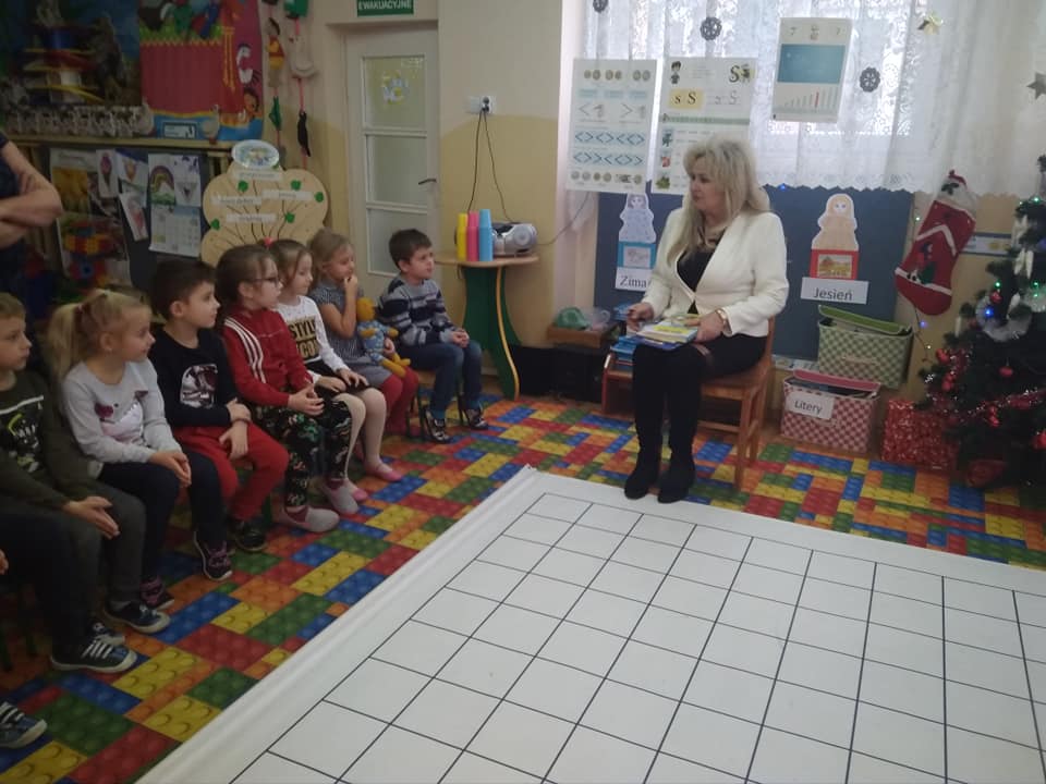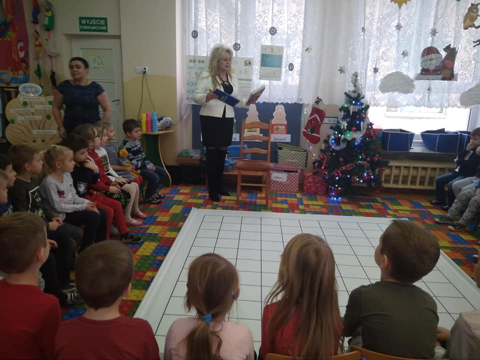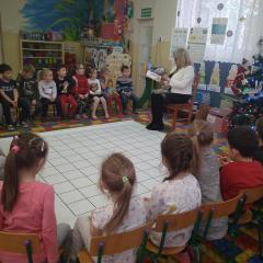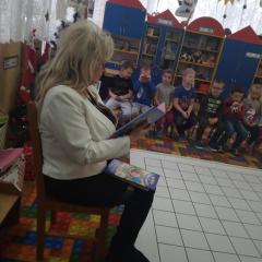 W czwartek odwiedziła nas Pani Halina Będkowska, która jest dyrektorem przedszkola na osiedlu Ślichowice. Pani Dyrektor przyniosła ze sobą książki, aby poczytać naszym Tropicielom. Mając możliwość wyboru dzieci wybrały "Czerwonego Kapturka". Przedszkolaki w wielkim skupieniu słuchały pięknie czytanej baśni. W prezencie otrzymaliśmy książkę z dedykacją i naklejki. Bardzo dziękujemy za spotkanie oraz poczytanie dzieciom i małemu misiowi.