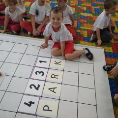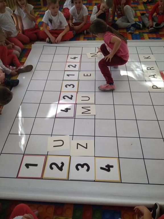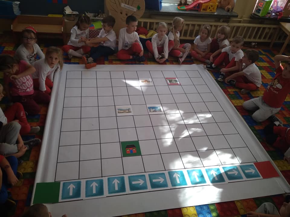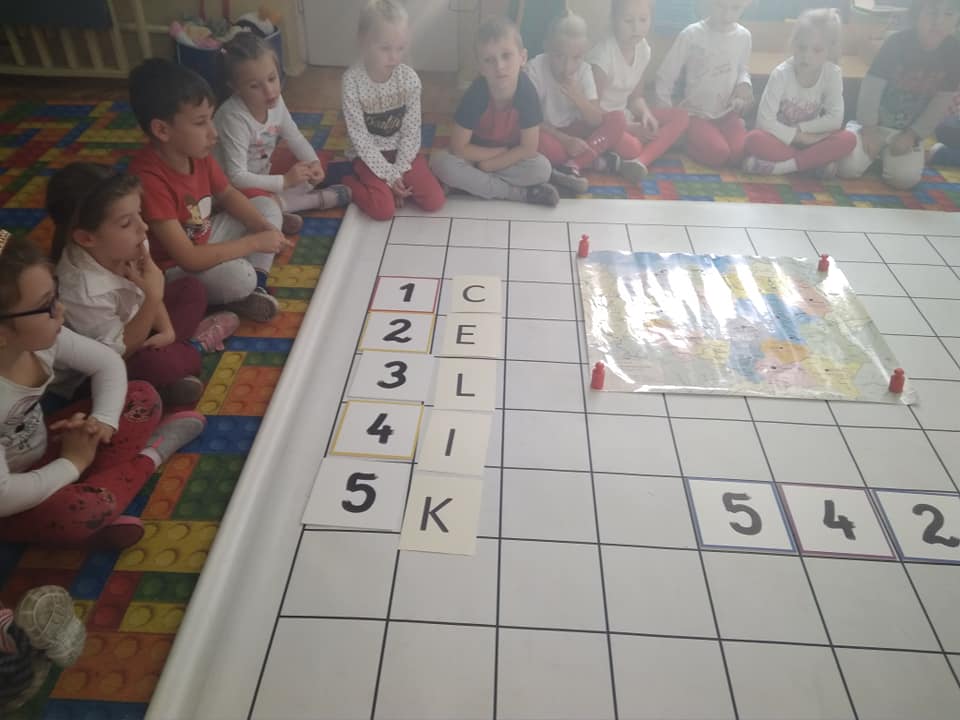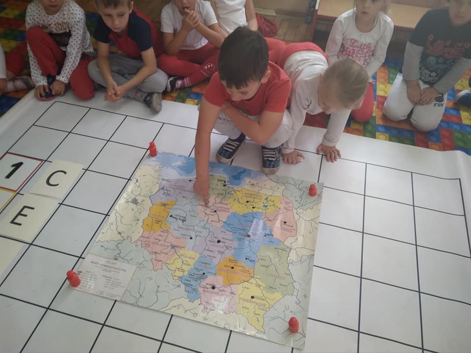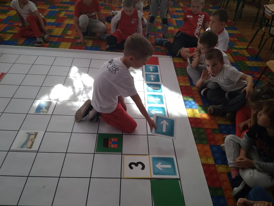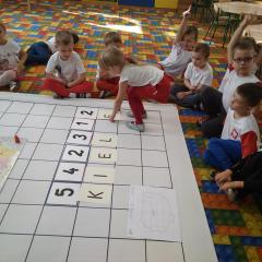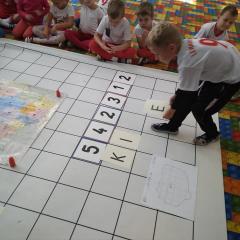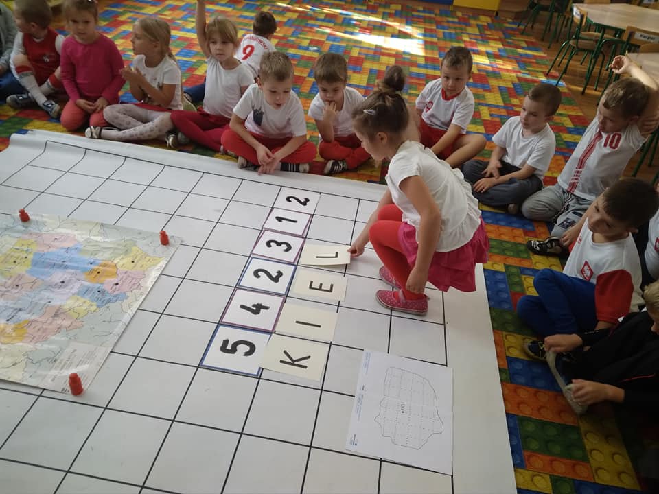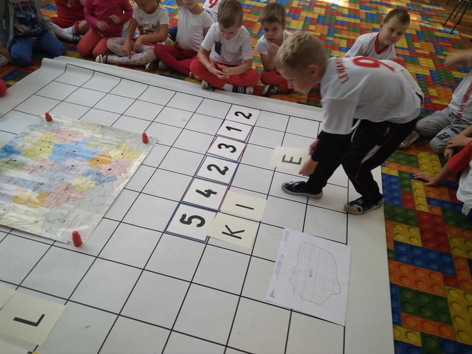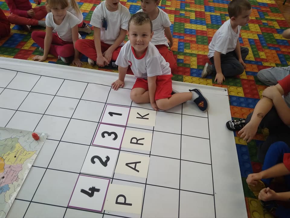 Dzisiaj zakodowaliśmy informacje dotyczące naszej miejscowości. Najpierw dzieci obejrzały mapę z zaznaczonymi województwami, przeliczając dowiedziały się ile ich jest i odszukały woj. świętokrzyskie. Potem odkodowaliśmy nazwę miejscowości, w której mieszkamy i nazwy różnych ciekawych miejsc w Kielcach. Ułożyliśmy skrypt trasy z przedszkola do parku z warunkiem że po drodze zwiedzamy różne ciekawe miejsca w Kielcach.