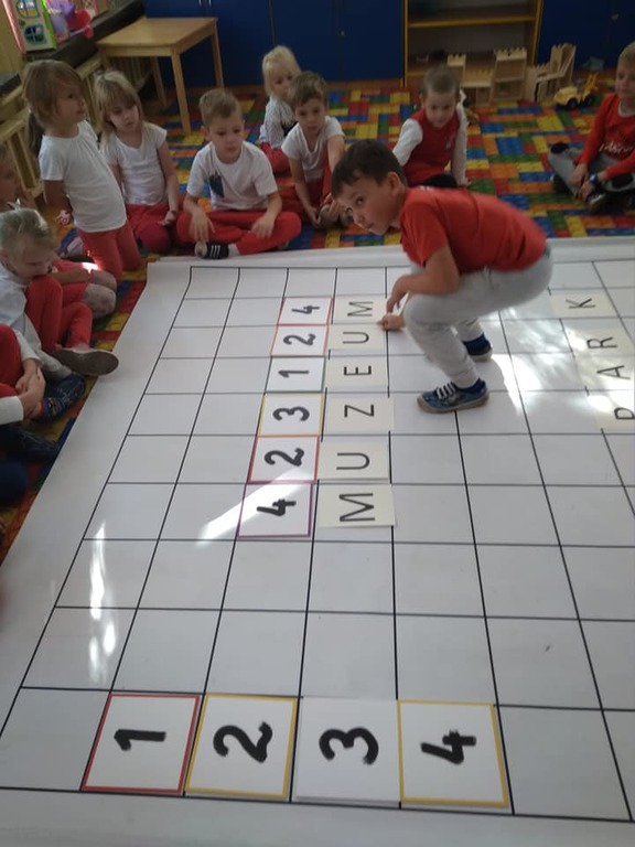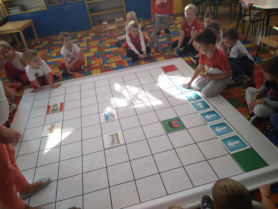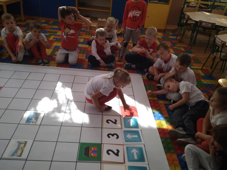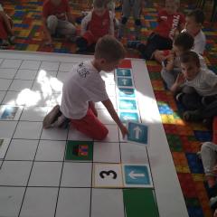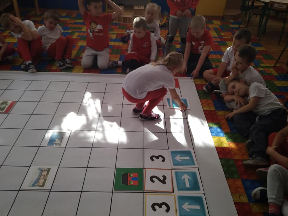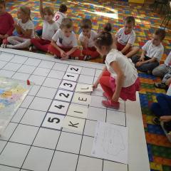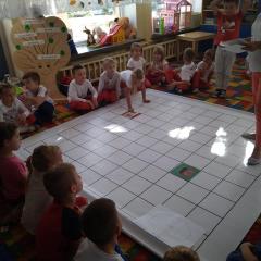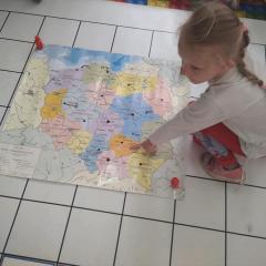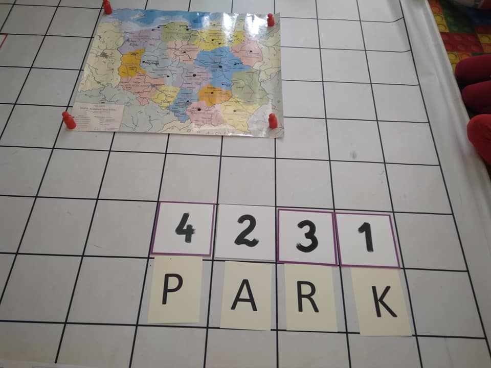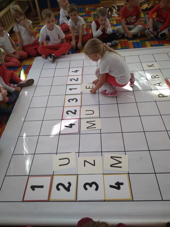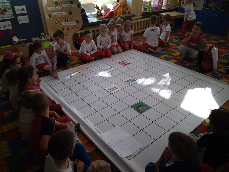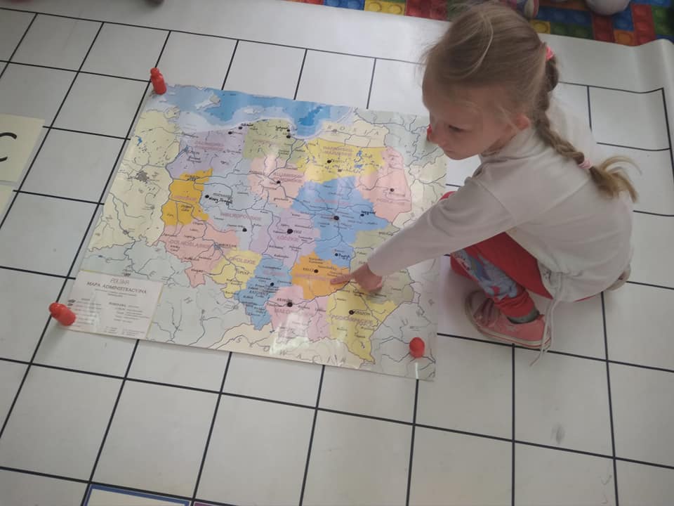 Dzisiaj zakodowaliśmy informacje dotyczące naszej miejscowości. Najpierw dzieci obejrzały mapę z zaznaczonymi województwami, przeliczając dowiedziały się ile ich jest i odszukały woj. świętokrzyskie. Potem odkodowaliśmy nazwę miejscowości, w której mieszkamy i nazwy różnych ciekawych miejsc w Kielcach. Ułożyliśmy skrypt trasy z przedszkola do parku z warunkiem że po drodze zwiedzamy różne ciekawe miejsca w Kielcach.
