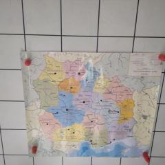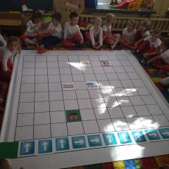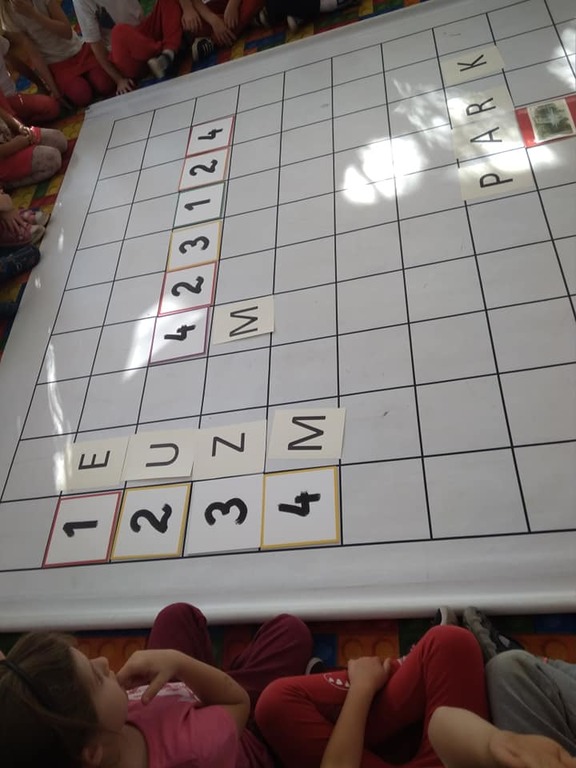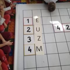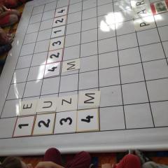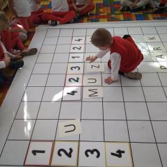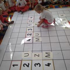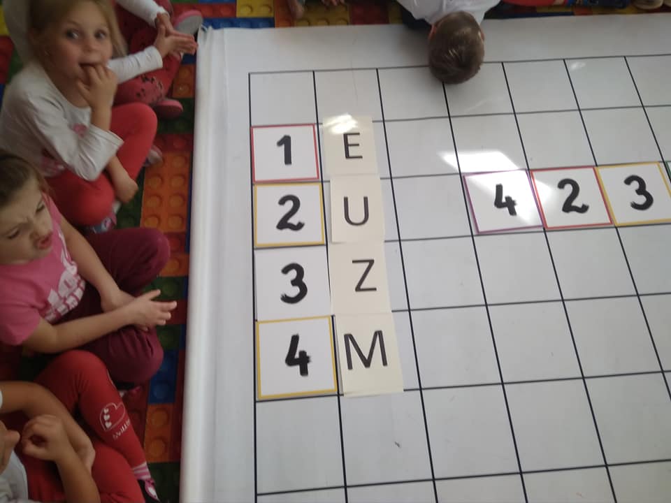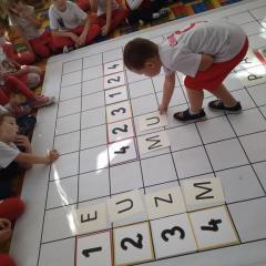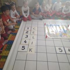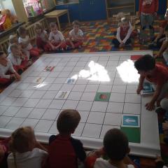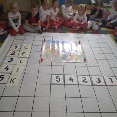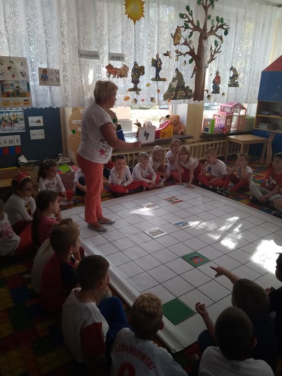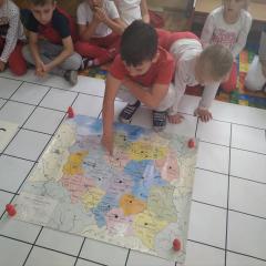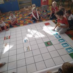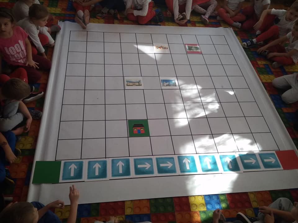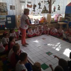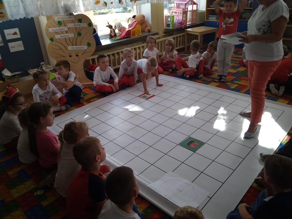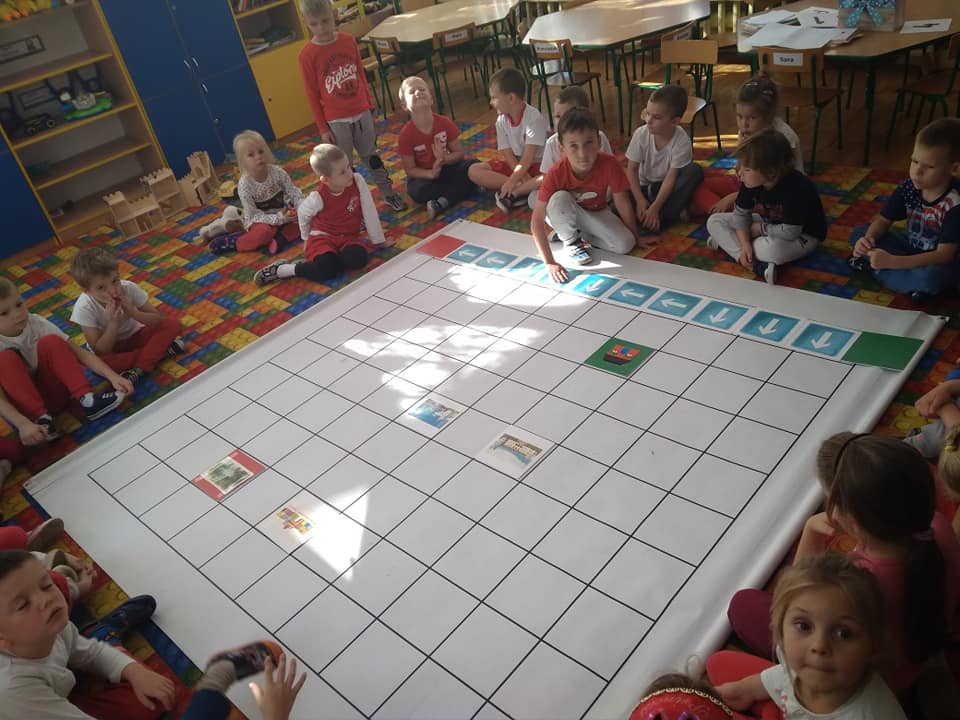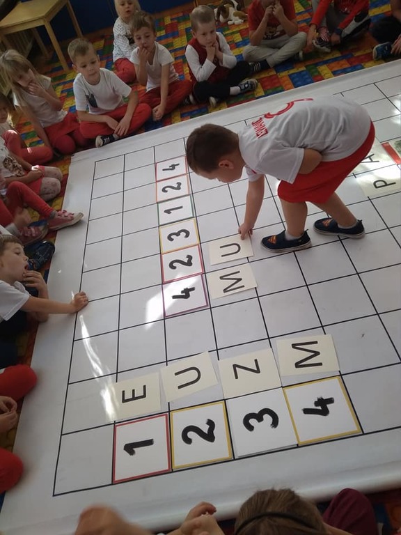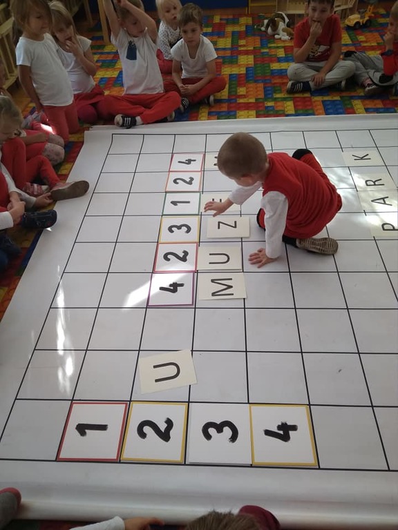 Dzisiaj zakodowaliśmy informacje dotyczące naszej miejscowości. Najpierw dzieci obejrzały mapę z zaznaczonymi województwami, przeliczając dowiedziały się ile ich jest i odszukały woj. świętokrzyskie. Potem odkodowaliśmy nazwę miejscowości, w której mieszkamy i nazwy różnych ciekawych miejsc w Kielcach. Ułożyliśmy skrypt trasy z przedszkola do parku z warunkiem że po drodze zwiedzamy różne ciekawe miejsca w Kielcach.