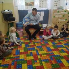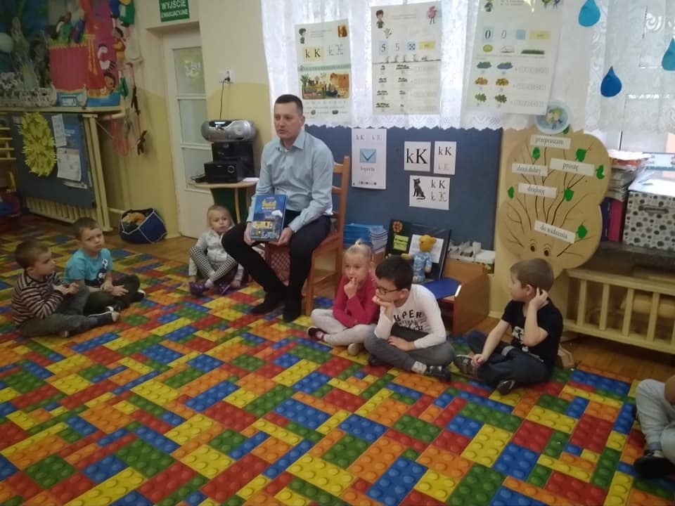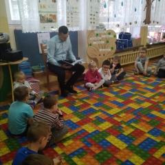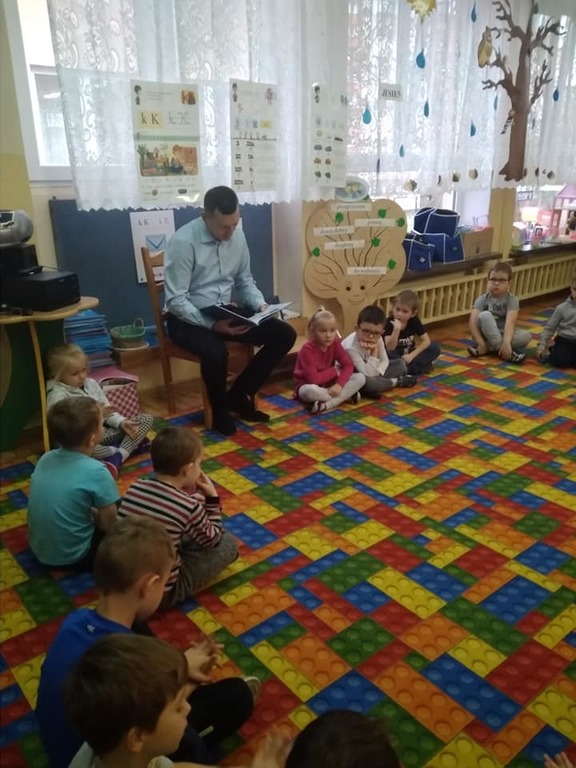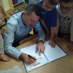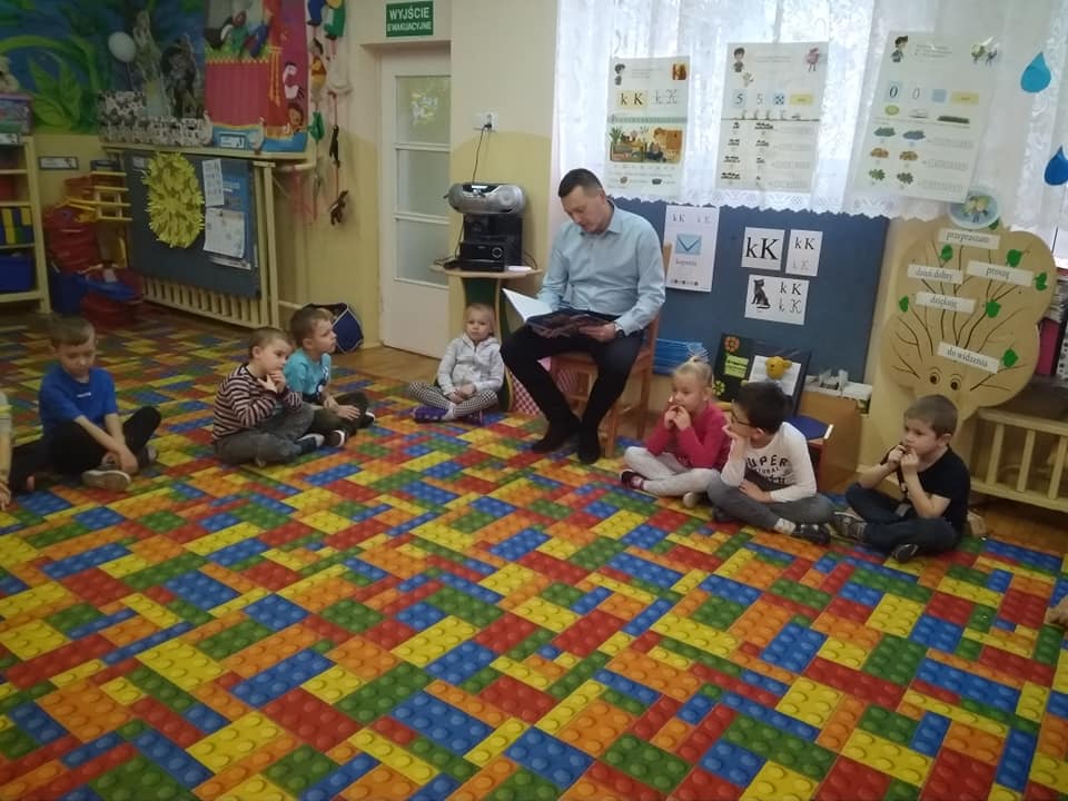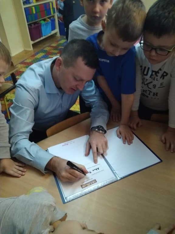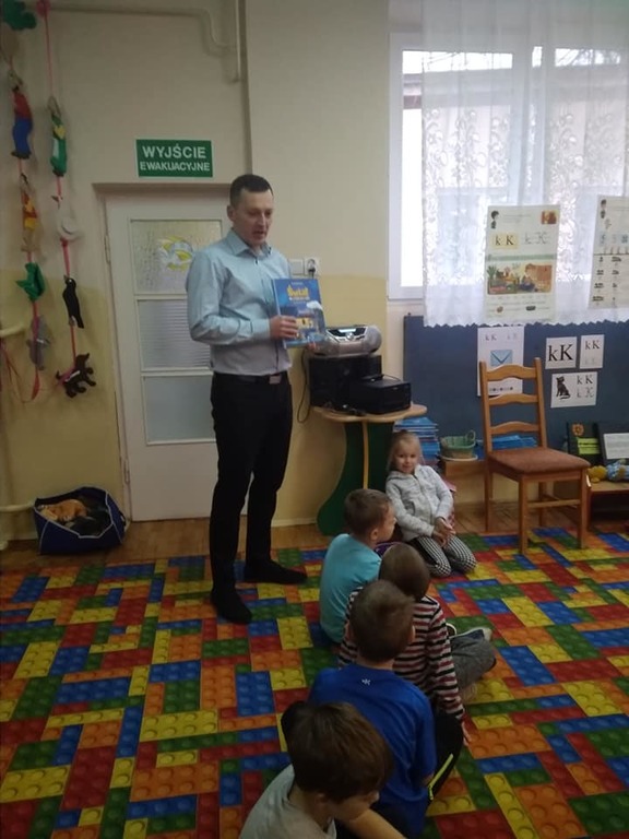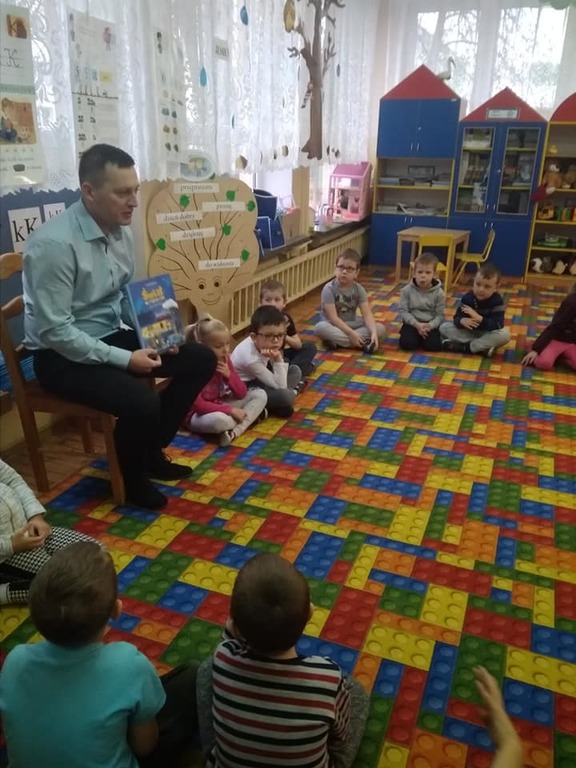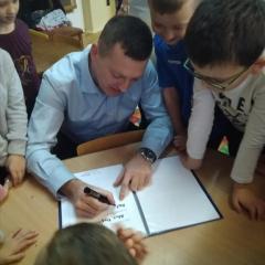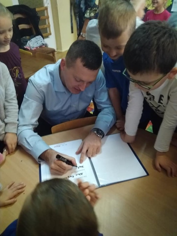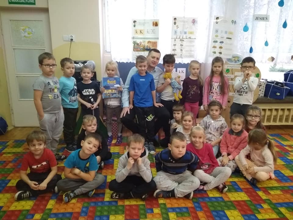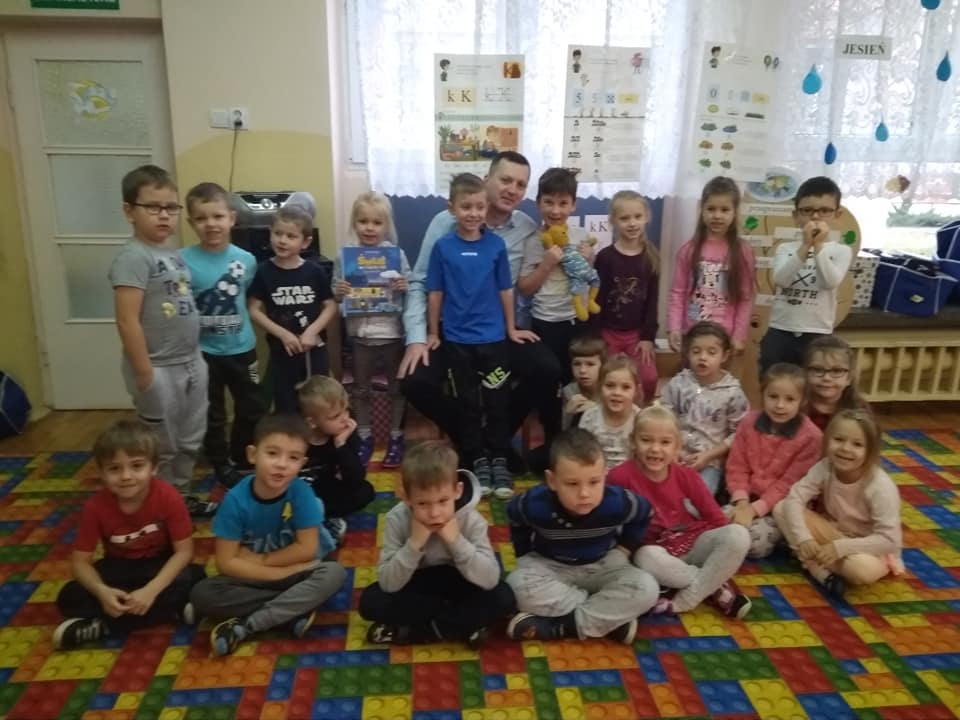 Tropiciele z P.S. Nr 22 w Kielcach gościli Pana Łukasza z wydawnictwa MAC, który w ramach projektu "Mały miś w świecie wielkiej literatury" przeczytał i podarował naszym przedszkolakom "Świat w piżamie". Nasz gość wpisał się oczywiście do kroniki misia Tuptusia i zrobiliśmy sobie pamiątkową fotografię.Bardzo dziękujemy za poświęcony nam czas i książeczkę.