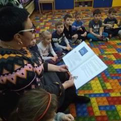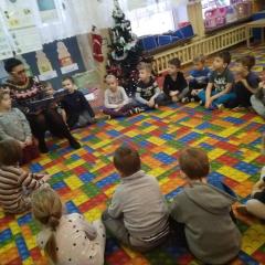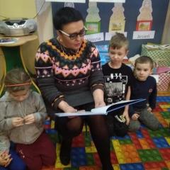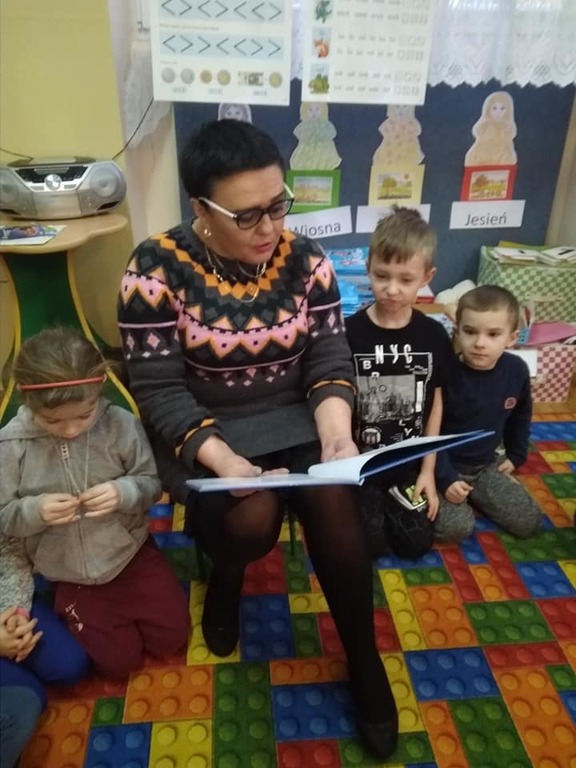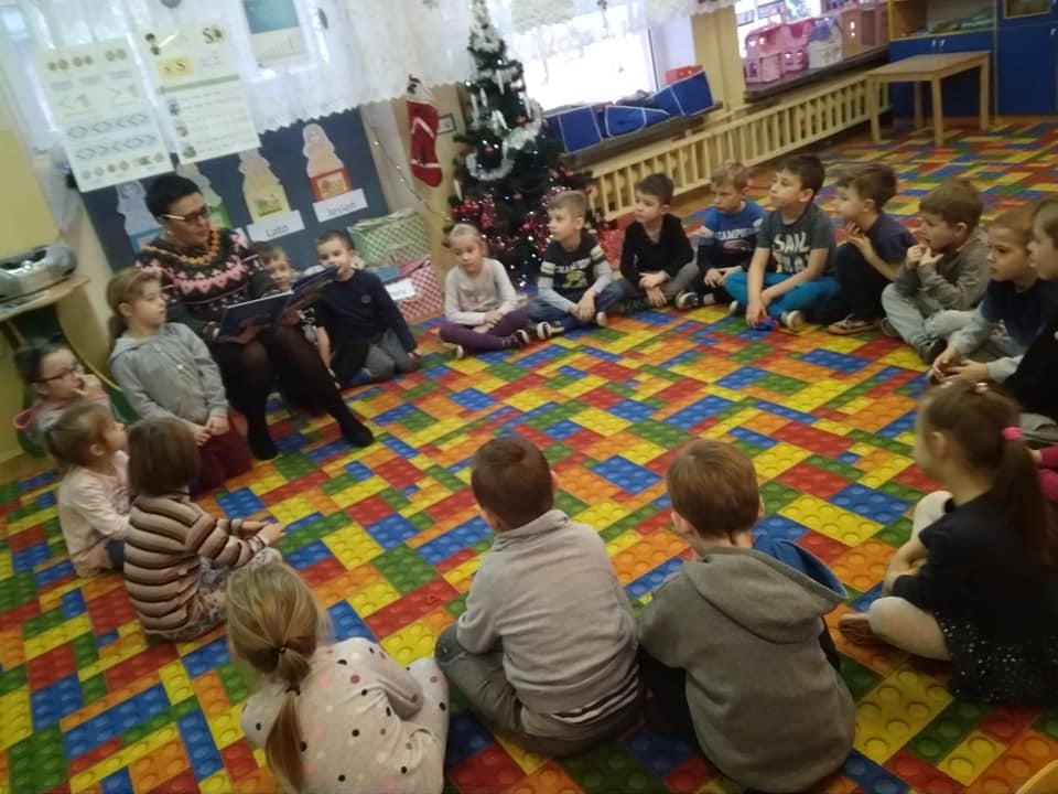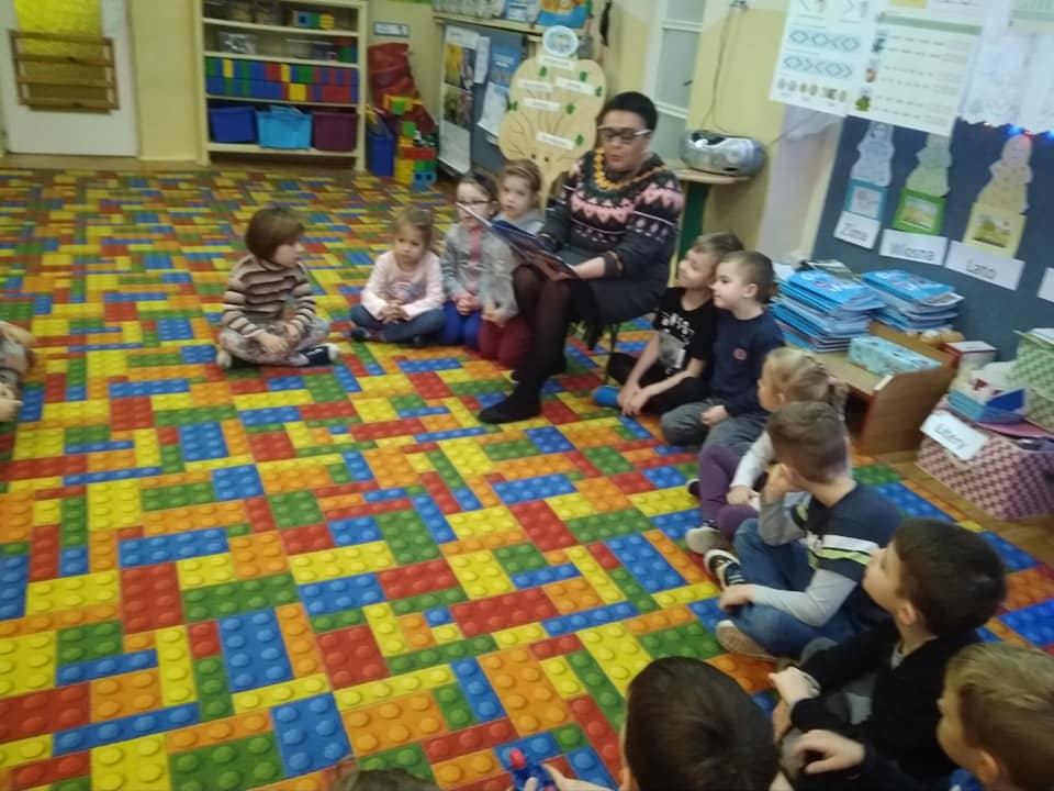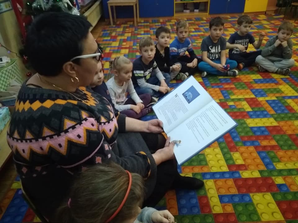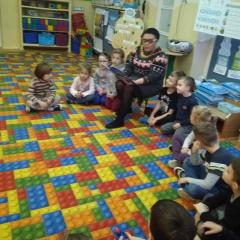 W dniu 09 stycznia w naszej grupie miło nam było gościć Panią Dyrektor Ewę Martykę, która w ramach projektu "Mały miś w świecie wielkiej literatury" czytała Tropicielom książkę. Był to fragment "Świata w piżamie", którą otrzymaliśmy od Wydawnictwa MAC. Dzieci bardzo uważnie słuchały naszego gościa. Bardzo dziękujemy.