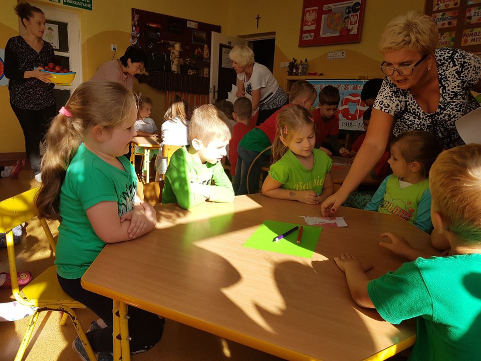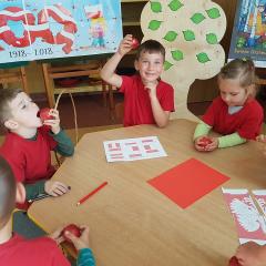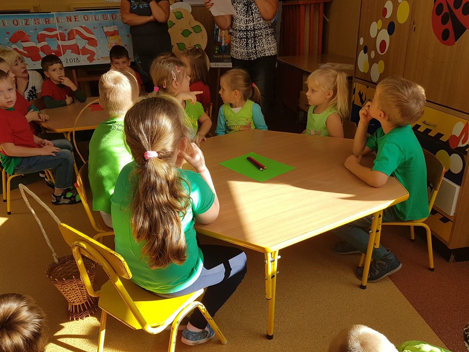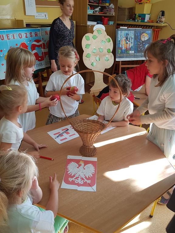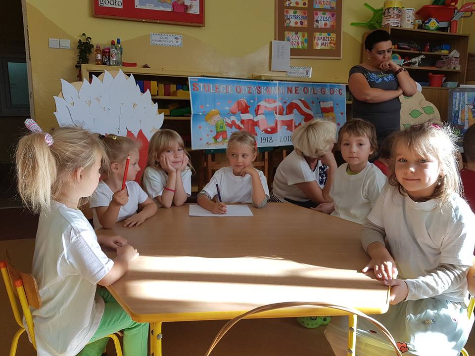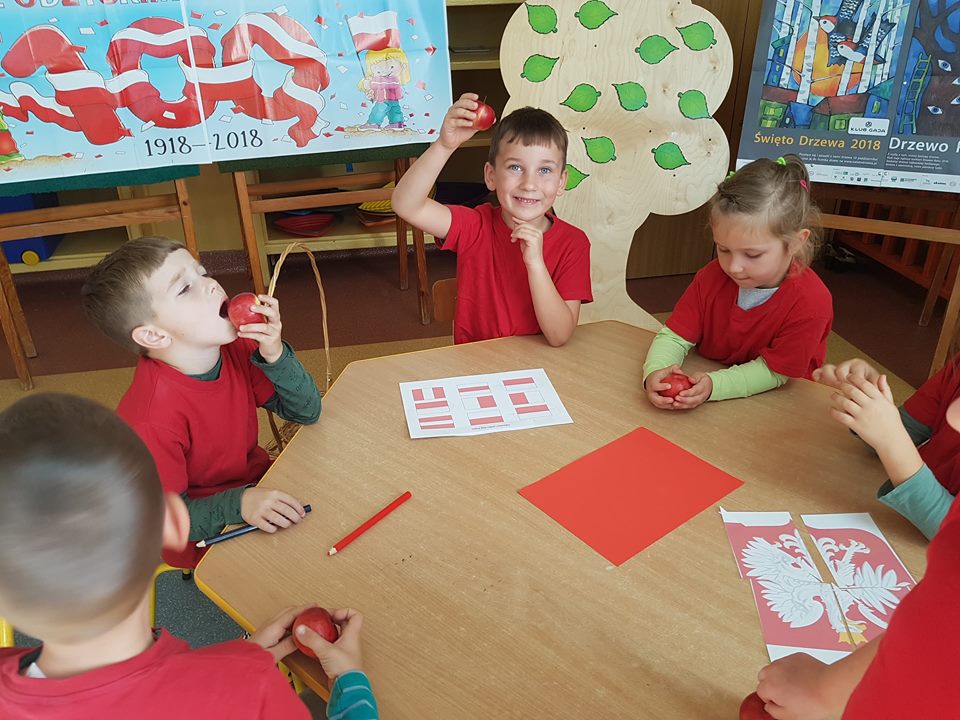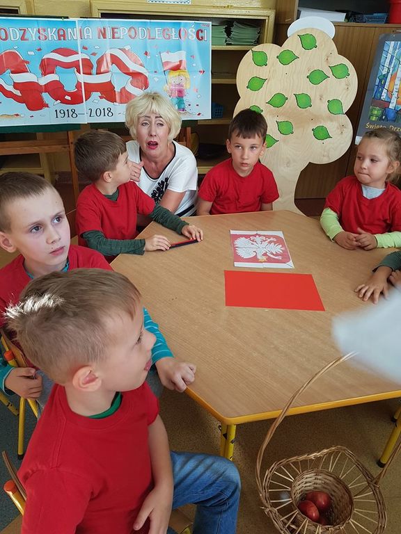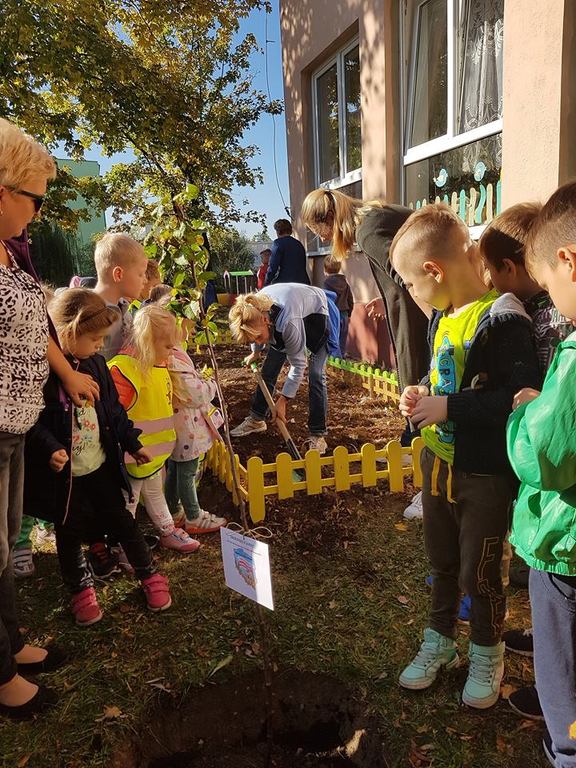 W dniu 10 października obchodzone jest od wielu lat w naszym przedszkolu Święto Drzewa. W tym roku to święto połączyliśmy z Turniejem patriotycznym z okazji 100 - lecia odzyskania przez Polskę niepodległości Punktem kulminacyjnym obchodów naszego święta było posadzenie w ogrodzie przedszkolnym drzewka pamięci - symbolu życia i wolności.