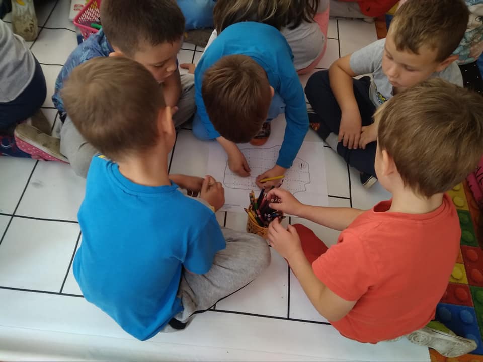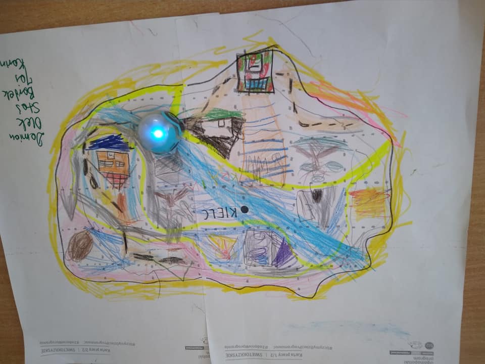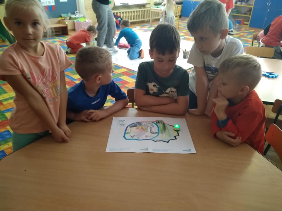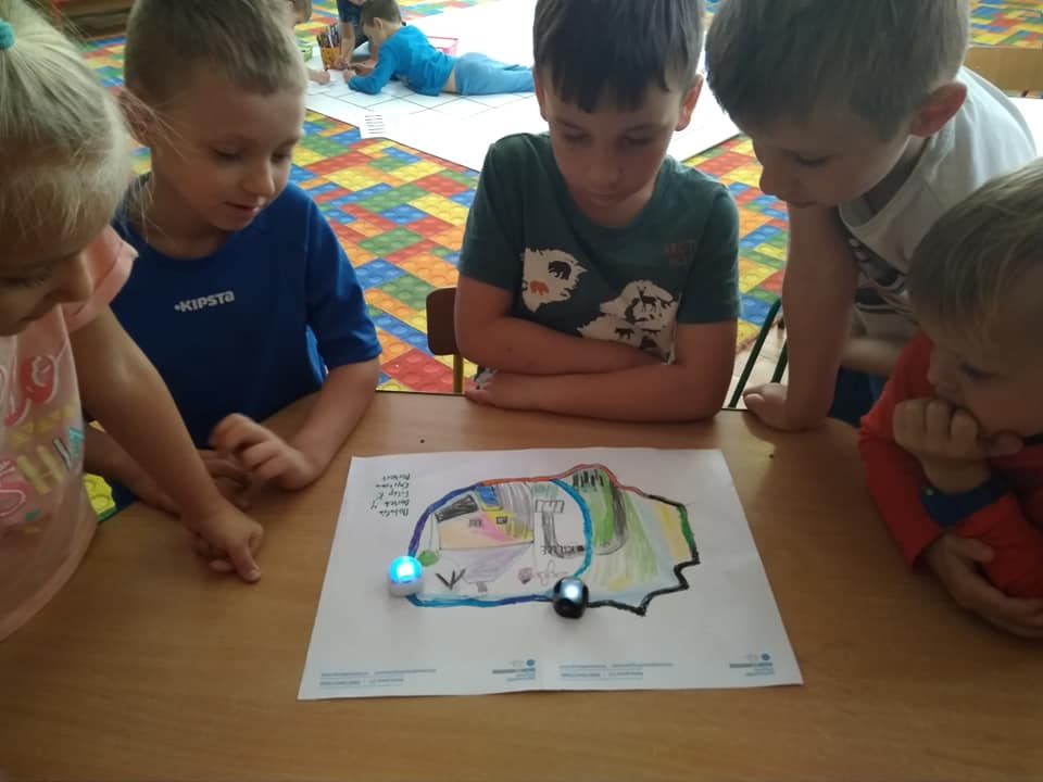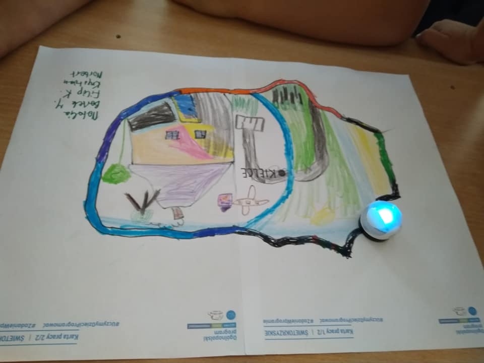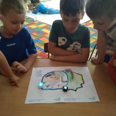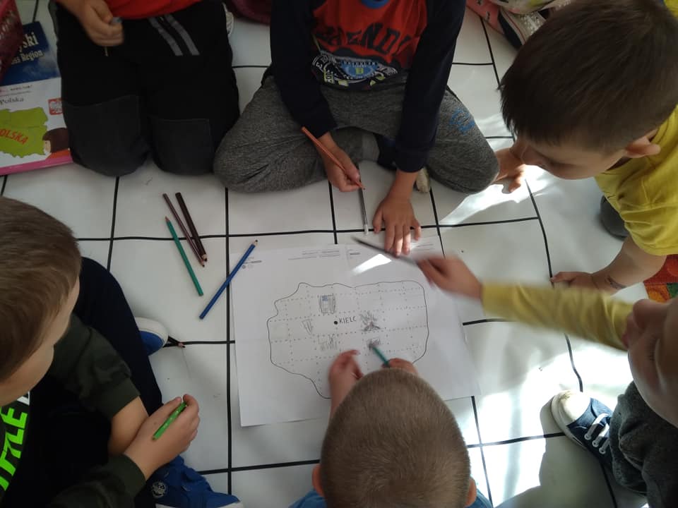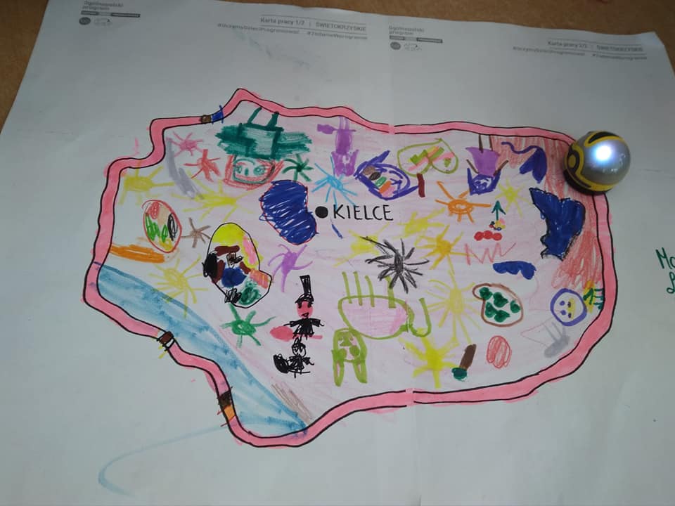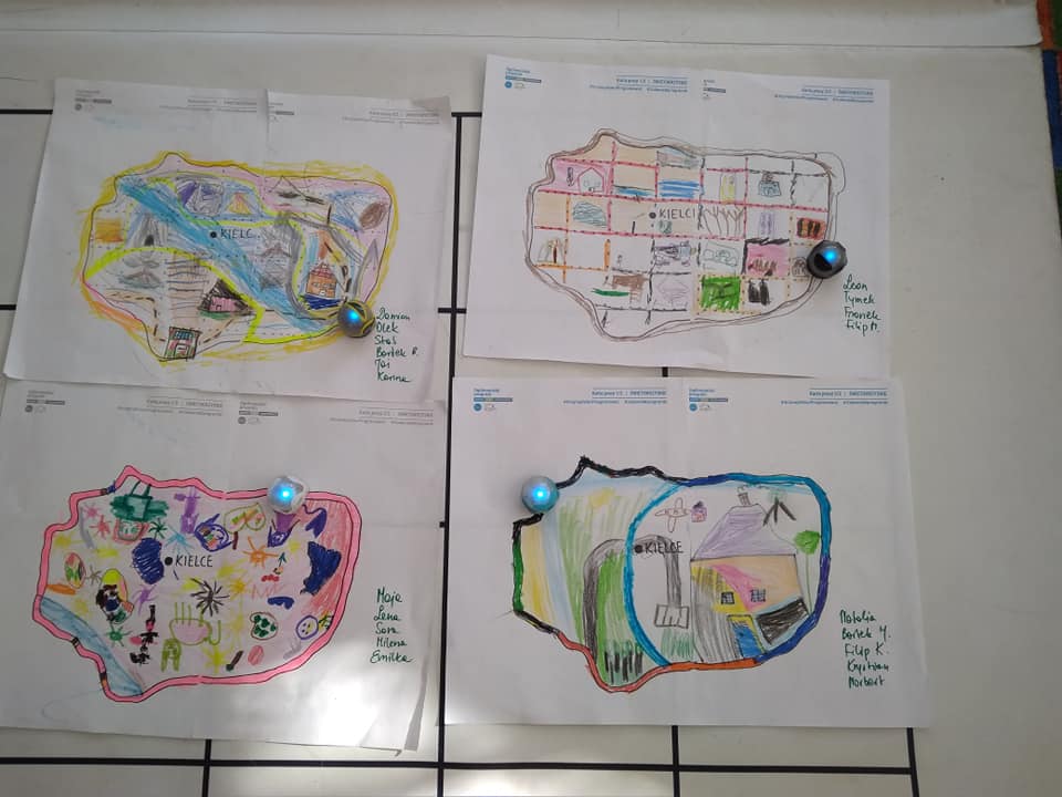 W dniu 18.10 dzieci kodowały mapę naszego województwa. Najpierw obejrzały prezentację multimedialną przygotowaną na poczet projektu Piękna nasza Polska cała. Dowiedziały się jakie ciekawe miejsca można zobaczyć w regionie świętokrzyskim. Potem w grupach zaznaczały obiekty i rysowały trasy dla ozobota. W piątek zajęliśmy się Kielcami. Najpierw dzieci kolorowały różne miejsca naszego miasta. Potem ułożyliśmy rysunki na kształt przypominający kontury Kielc. Potem ułożone zostały puzzle tworząc trasę dla ozobota. Dzisiaj to roboty zwiedzały naszą miejscowość.
