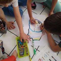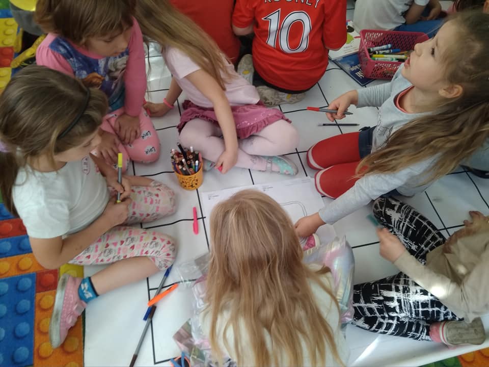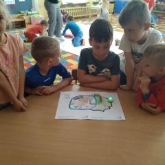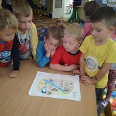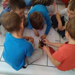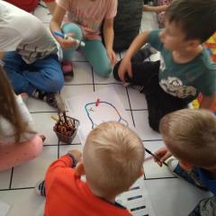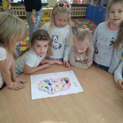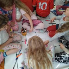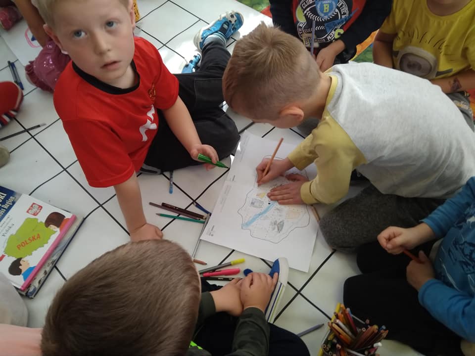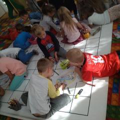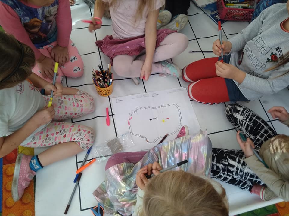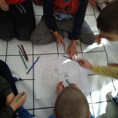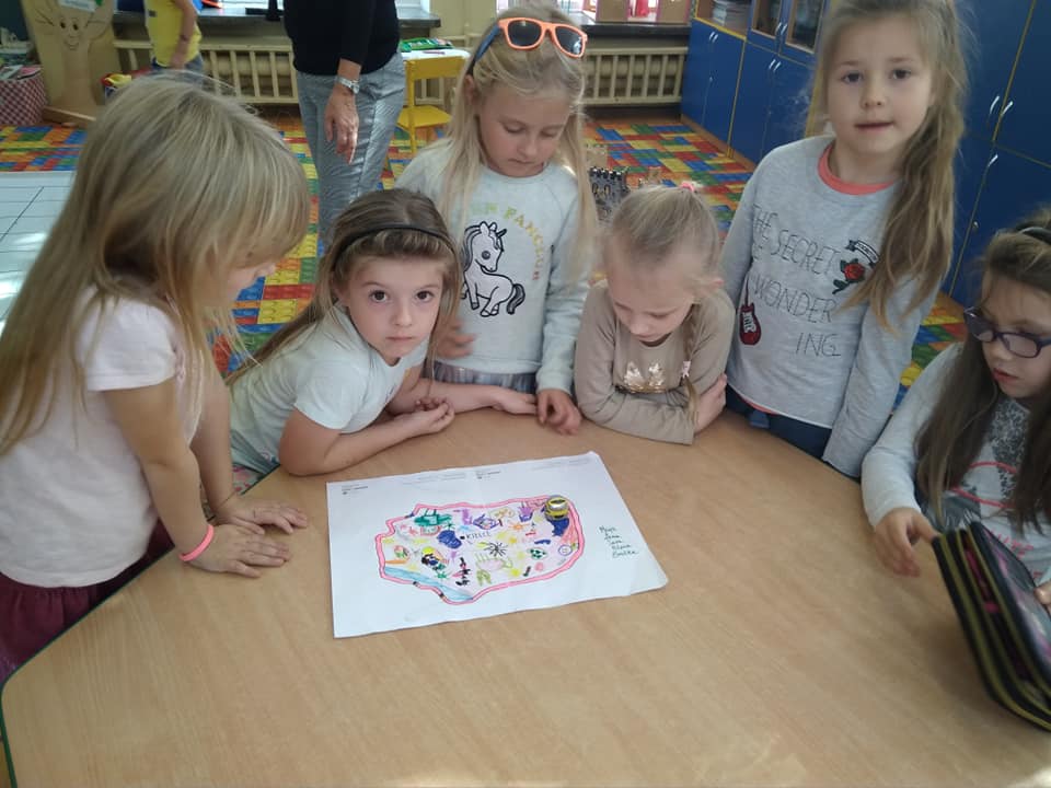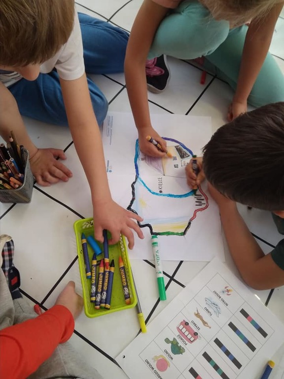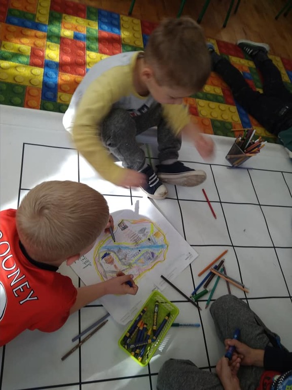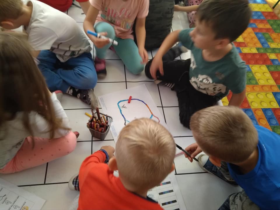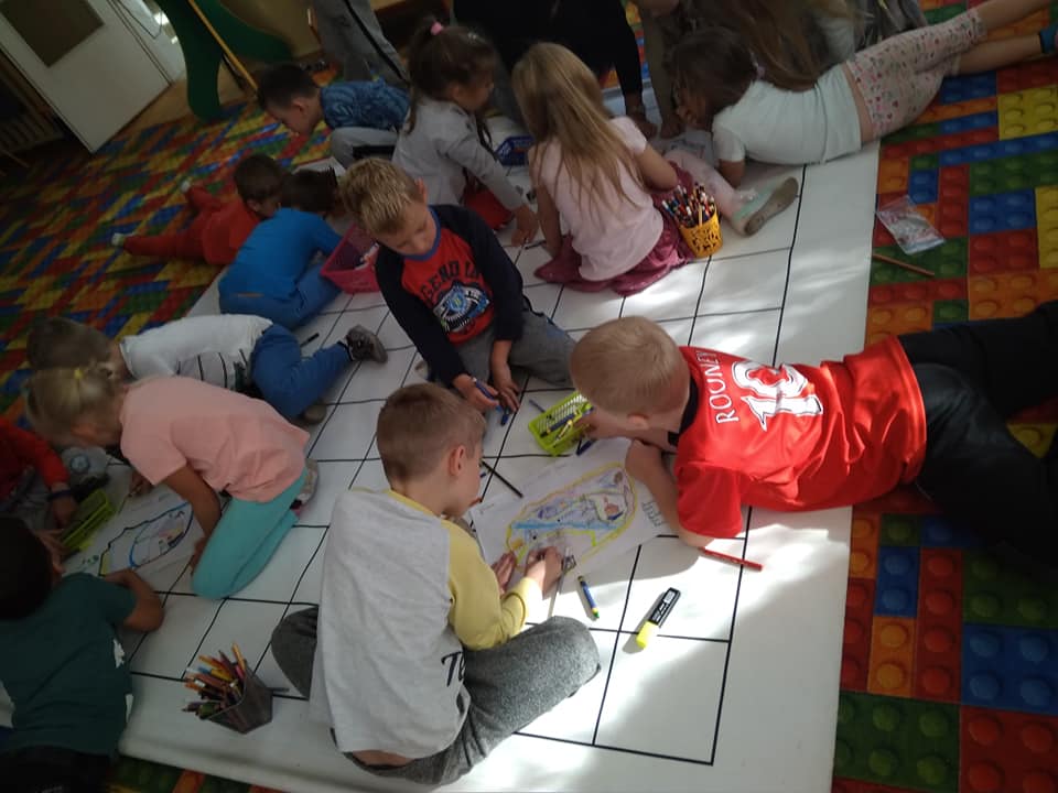 W dniu 18.10 dzieci kodowały mapę naszego województwa. Najpierw obejrzały prezentację multimedialną przygotowaną na poczet projektu Piękna nasza Polska cała. Dowiedziały się jakie ciekawe miejsca można zobaczyć w regionie świętokrzyskim. Potem w grupach zaznaczały obiekty i rysowały trasy dla ozobota. W piątek zajęliśmy się Kielcami. Najpierw dzieci kolorowały różne miejsca naszego miasta. Potem ułożyliśmy rysunki na kształt przypominający kontury Kielc. Potem ułożone zostały puzzle tworząc trasę dla ozobota. Dzisiaj to roboty zwiedzały naszą miejscowość.