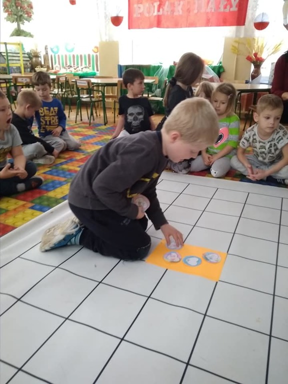 Z okazji 100-lecie Odzyskania Niepodległości dzieci z grup Tropicieli, Żabek i Poziomek podjęły wyzwanie programu Uczymy Dzieci Programować wykonując przez trzy dni zadania przygotowane przez organizatorów. Pierwsze zadanie dotyczyło tematu: Jestem Polką, jestem Polakiem - co to dla mnie znaczy? Tworzymy kod z naszymi wartościami.