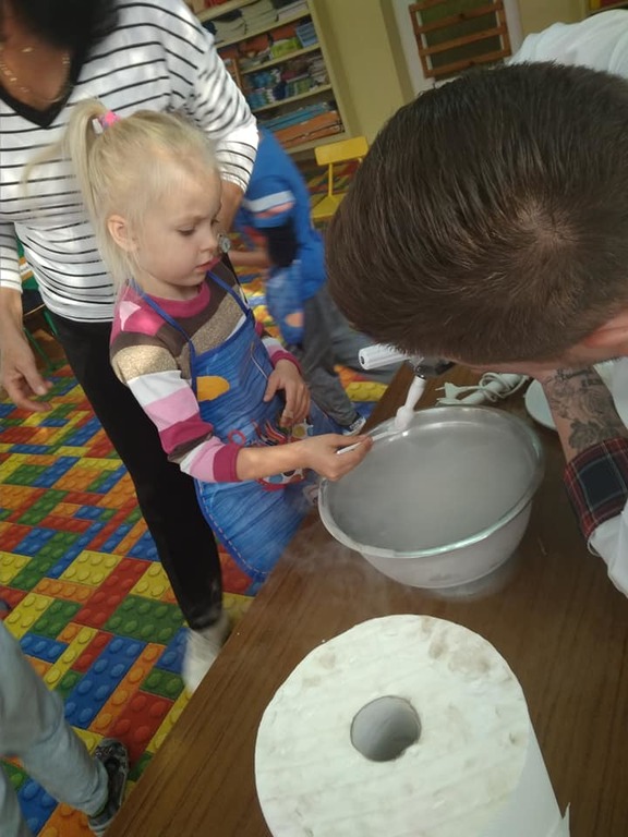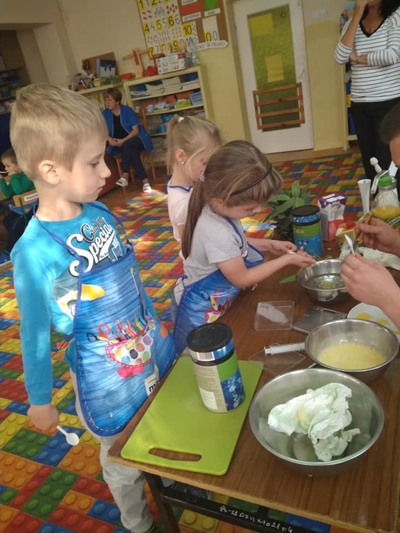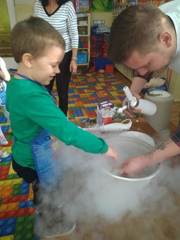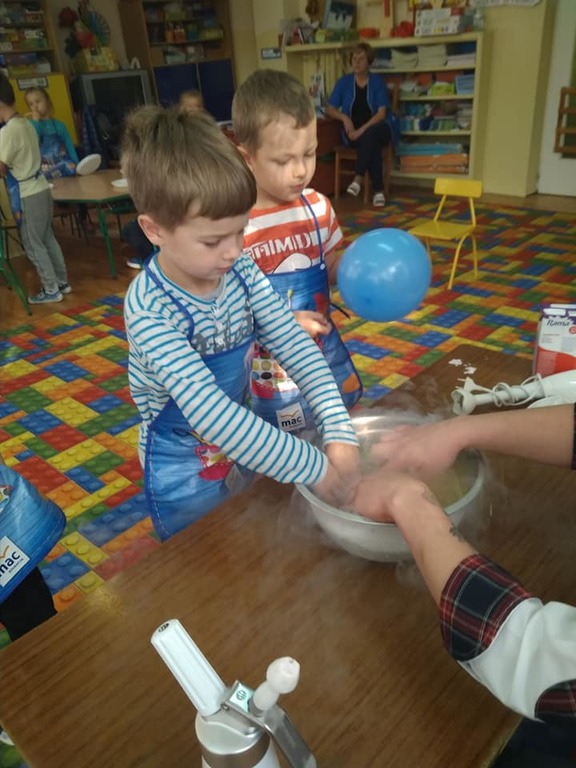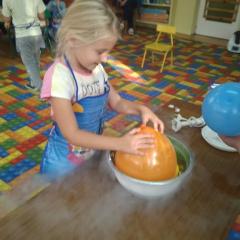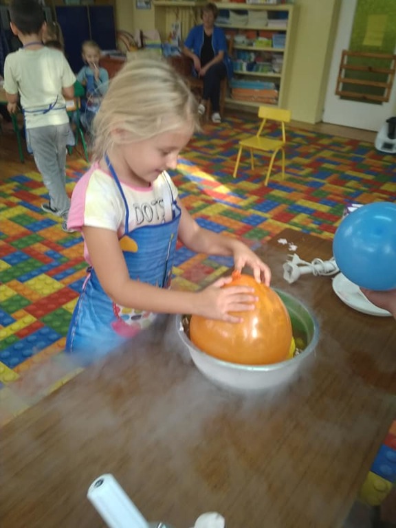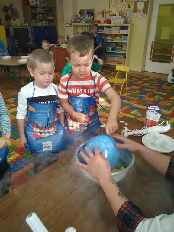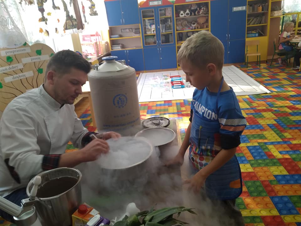W dniu 19 października pan Piotr, tata Frania przeprowadził w grupie Tropicieli warsztaty kulinarne. Pyszne lody najpierw z sokiem owocowym, potem na bazie ciasteczek Oreo i samodzielnie pokrojone przez dzieci ananasy i mango pobudziły kubki smakowe. Samodzielnie robiony "kawior pomarańczowy" to kolejna atrakcja kulinarna. Dodatkowe czary nie dotyczyły jedzenia, ale były wielkim zaskoczeniem i ciekawostką. Dzieci mogły zobaczyć bowiem co się dzieje z nadmuchanymi balonami, gdy umieszczone zostaną w ciekłym azocie, a co się stanie po ich wyjęciu.Bardzo dziękujemy za wspaniałe warsztaty.