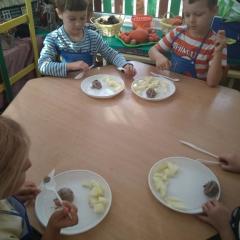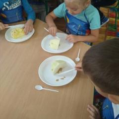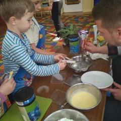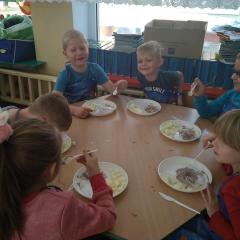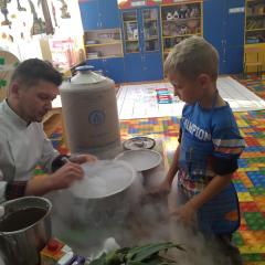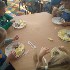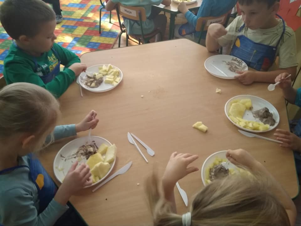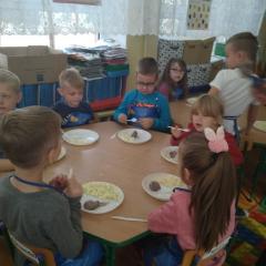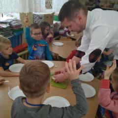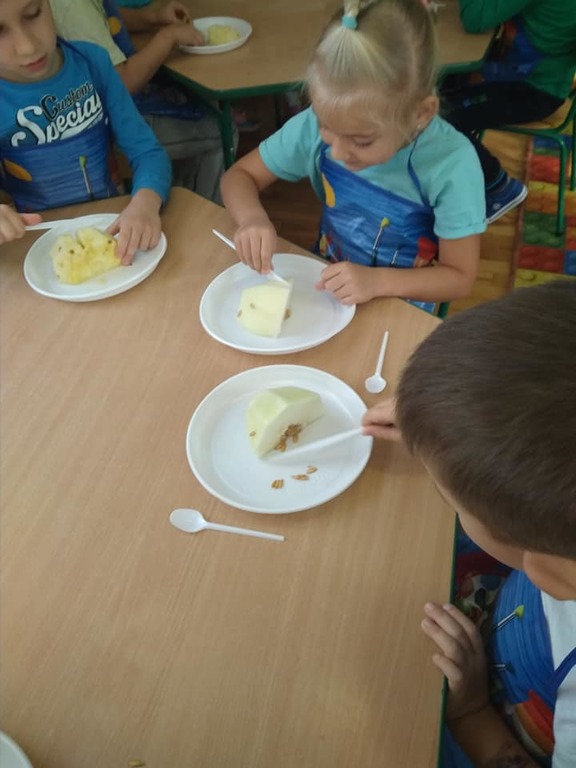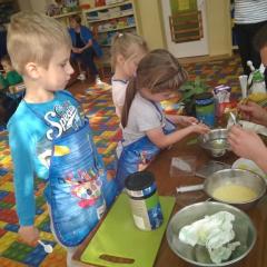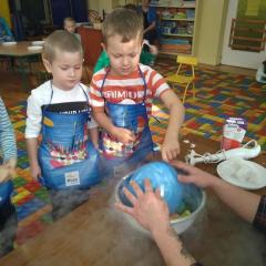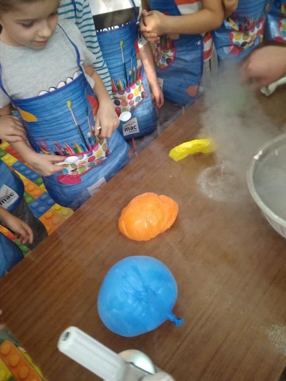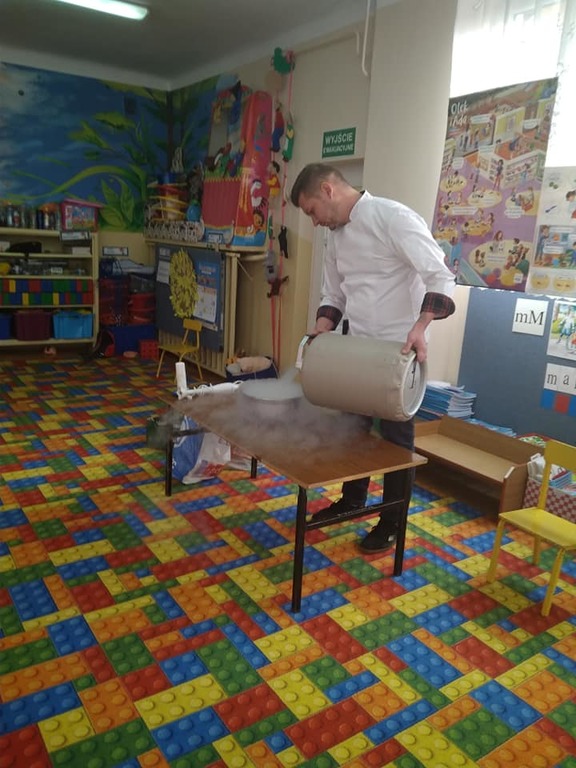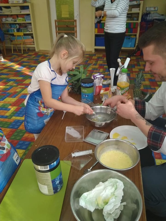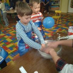 W dniu 19 października pan Piotr, tata Frania przeprowadził w grupie Tropicieli warsztaty kulinarne. Pyszne lody najpierw z sokiem owocowym, potem na bazie ciasteczek Oreo i samodzielnie pokrojone przez dzieci ananasy i mango pobudziły kubki smakowe. Samodzielnie robiony "kawior pomarańczowy" to kolejna atrakcja kulinarna. Dodatkowe czary nie dotyczyły jedzenia, ale były wielkim zaskoczeniem i ciekawostką. Dzieci mogły zobaczyć bowiem co się dzieje z nadmuchanymi balonami, gdy umieszczone zostaną w ciekłym azocie, a co się stanie po ich wyjęciu.Bardzo dziękujemy za wspaniałe warsztaty.