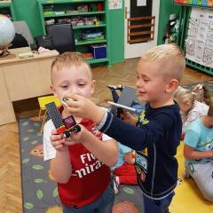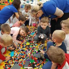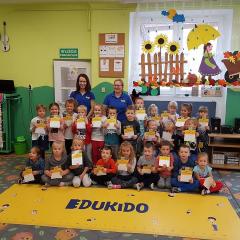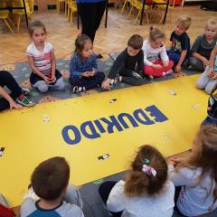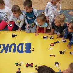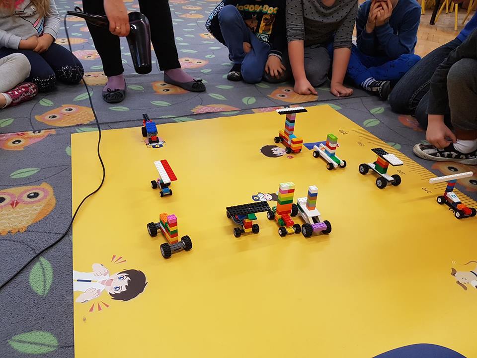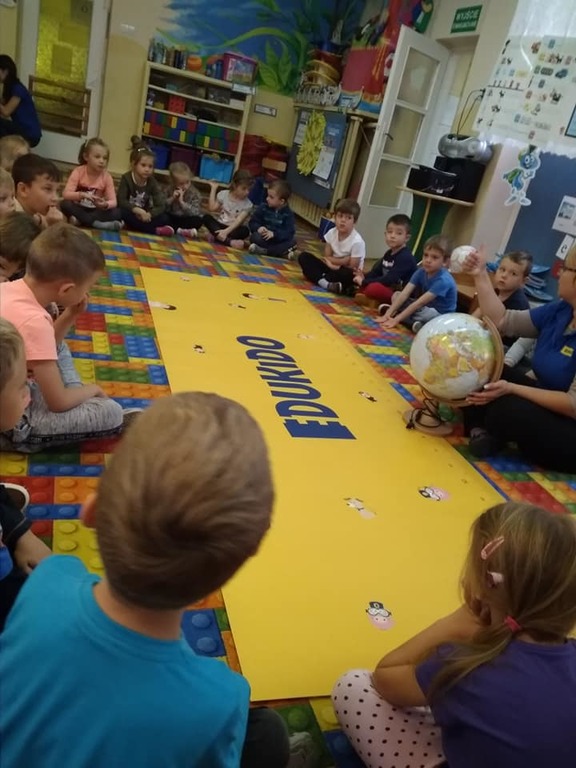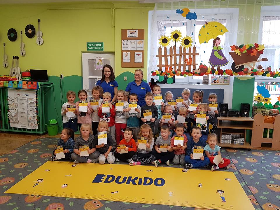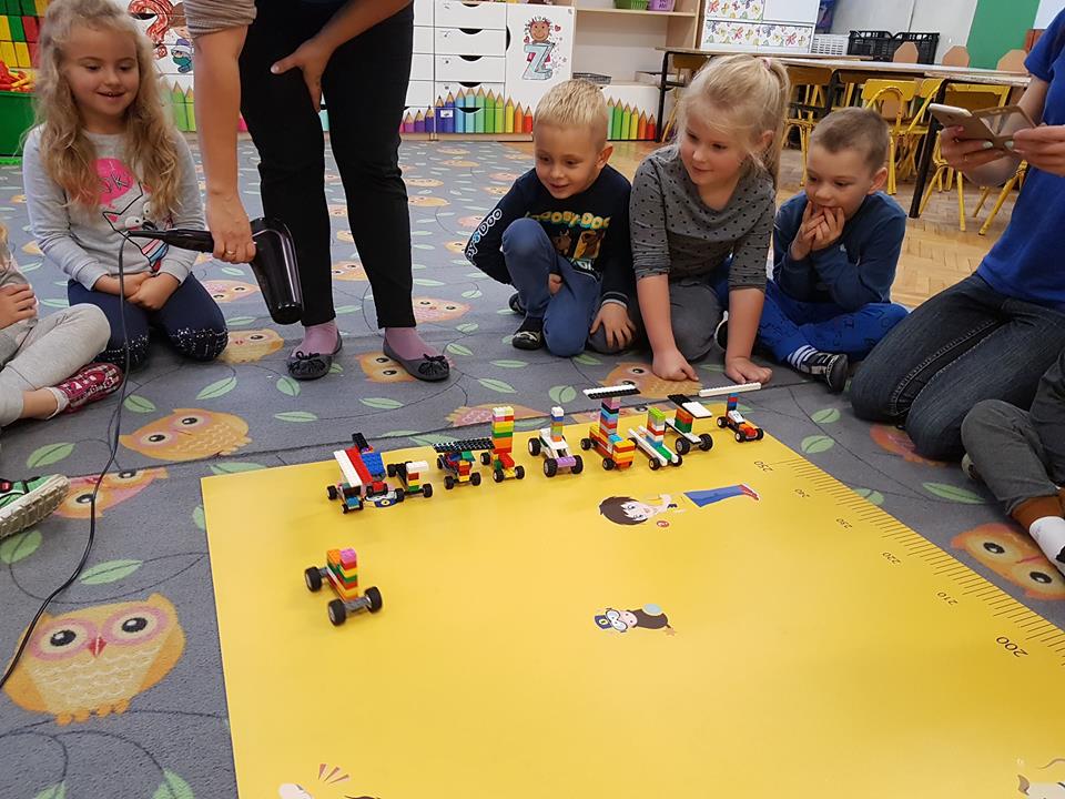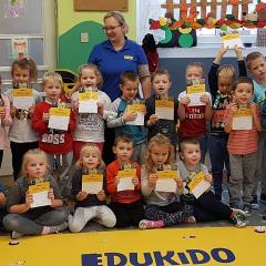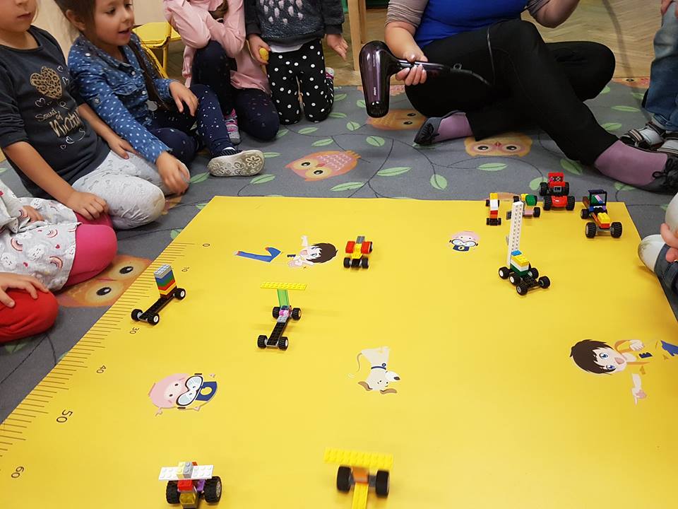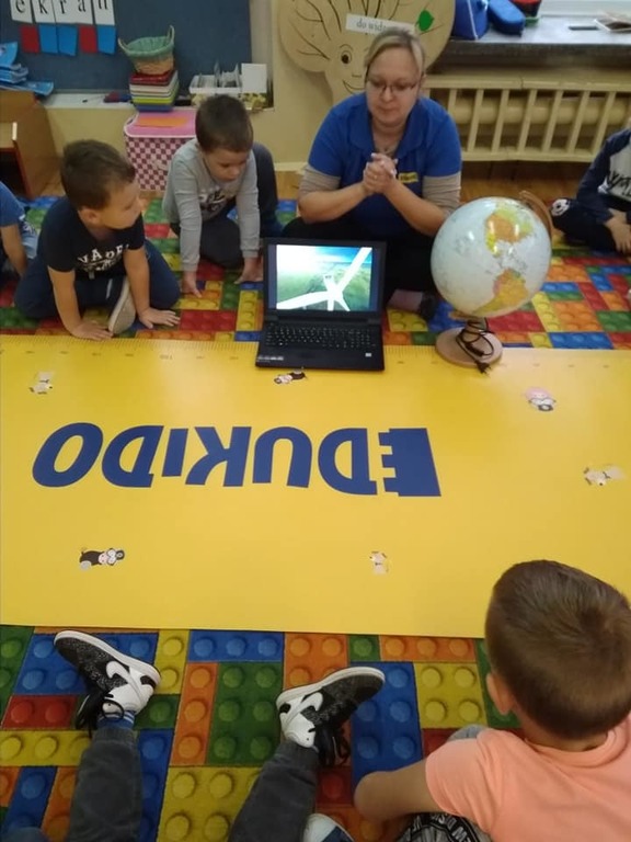 W dniu 25 października grupy Tropicieli, Żabek i Biedronek gościły panie z EDUKIDO, które przeprowadziły dla nich warsztaty o wietrze. Rozmowa na temat co to jest wiatr, skąd się bierze, co mamy dzięki niemu. Budowanie pojazdów, które mogłyby poruszać się za pomocą siły wiatru. Próby poruszania budowli z wykorzystaniem suszarki. Przebudowywanie pojazdów tak, aby każdy miał żagielek. Otrzymanie dyplomów i wspólna fotografia zakończyła warsztaty.