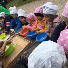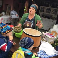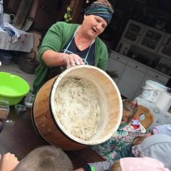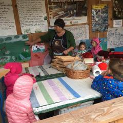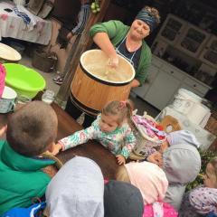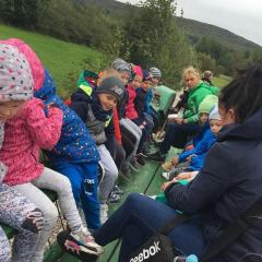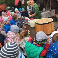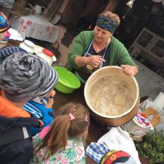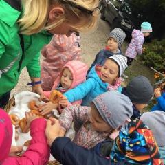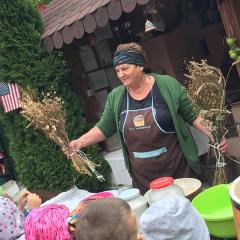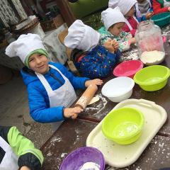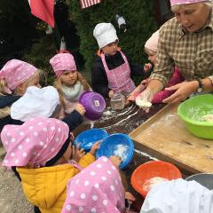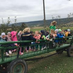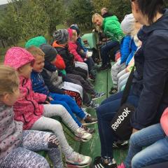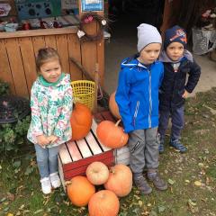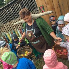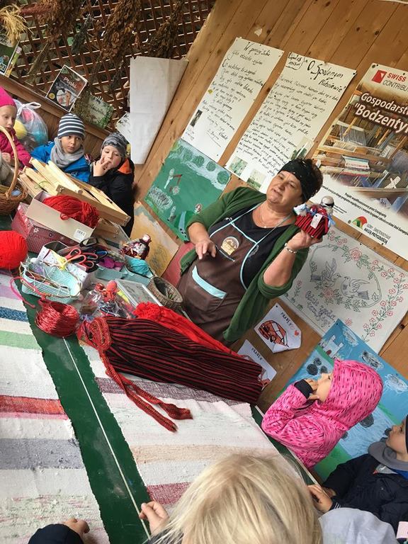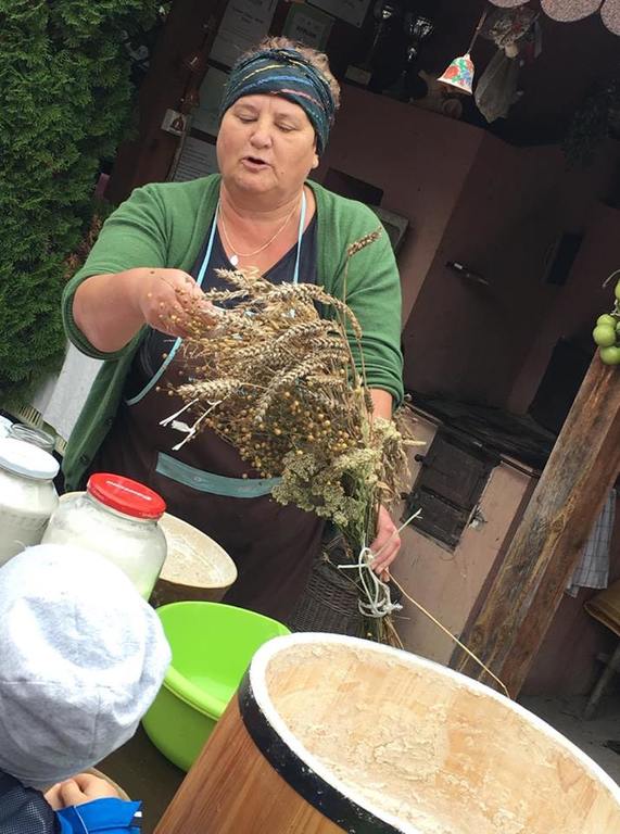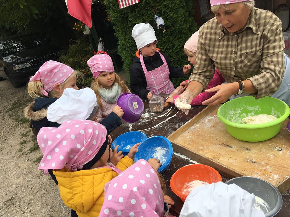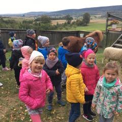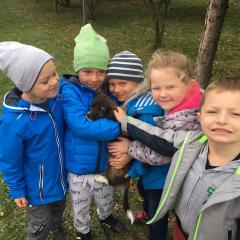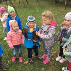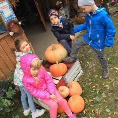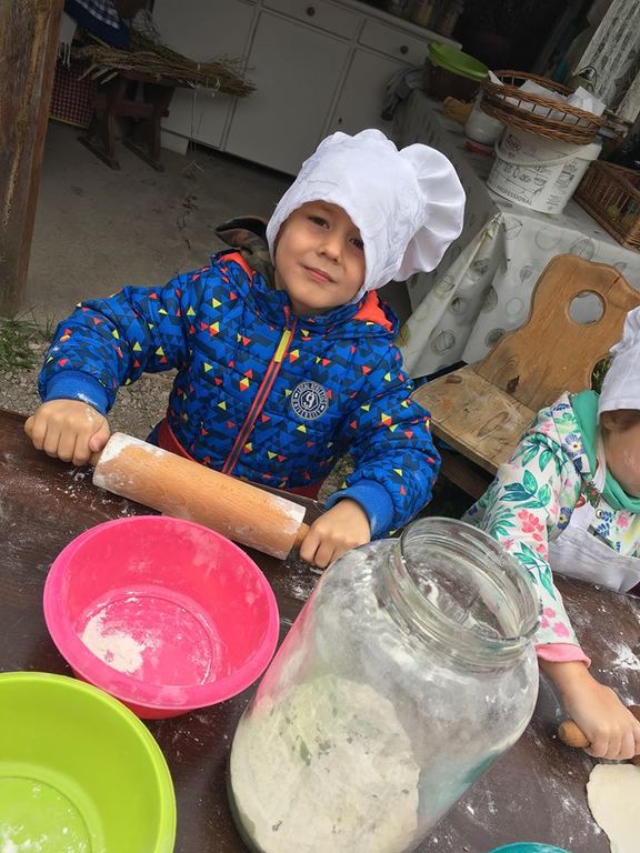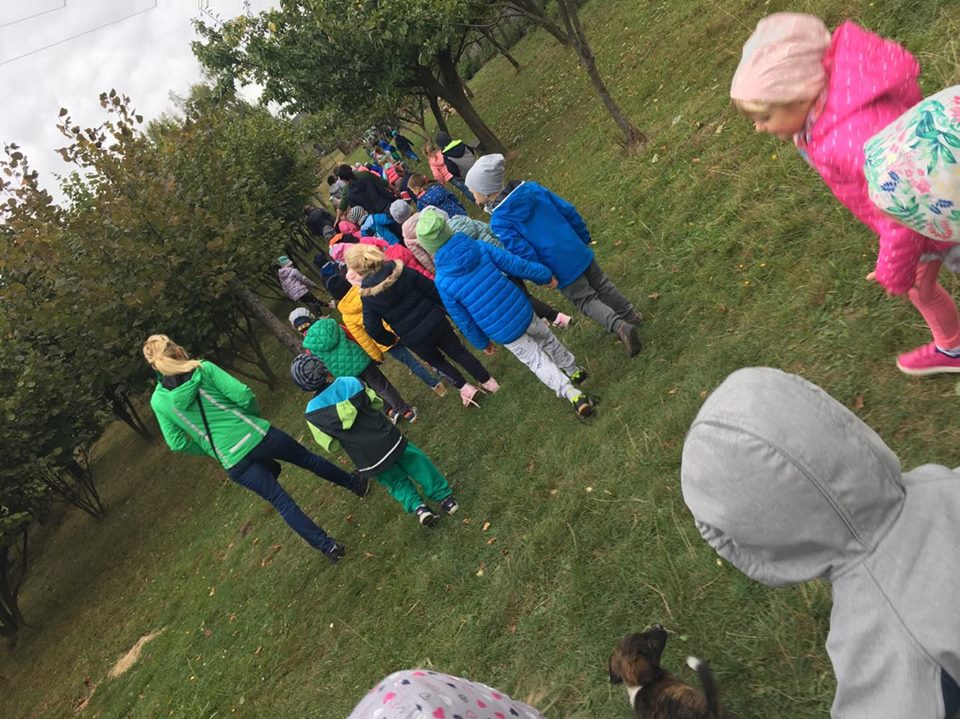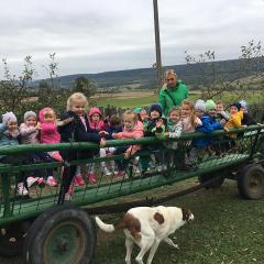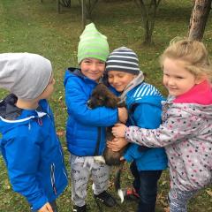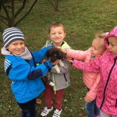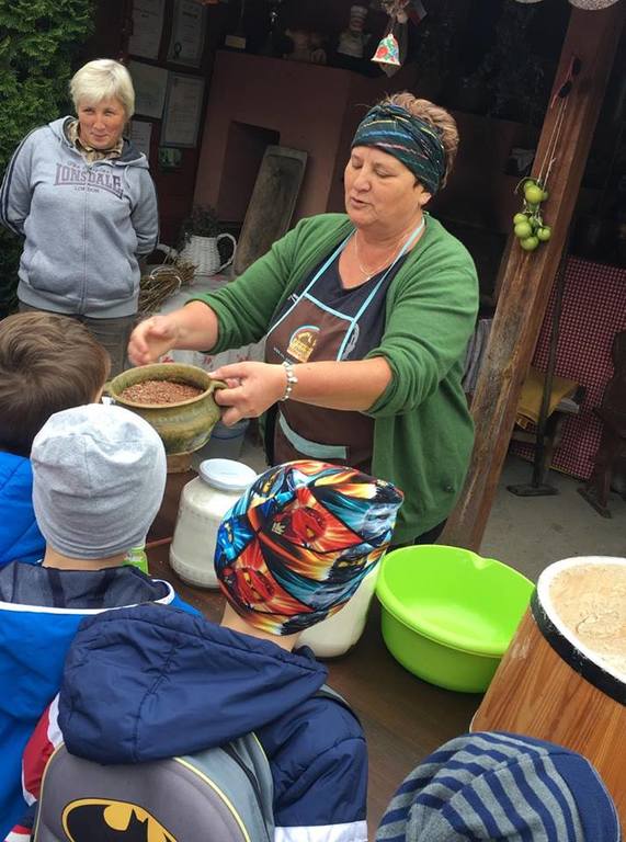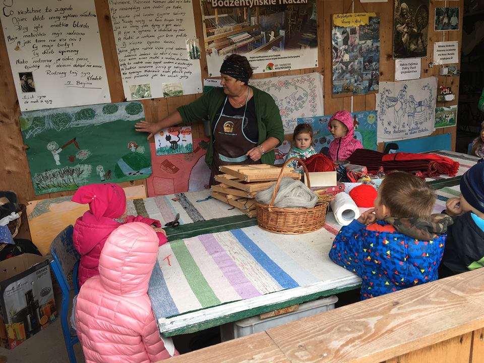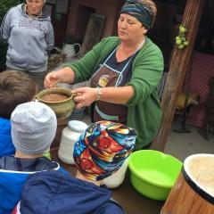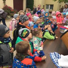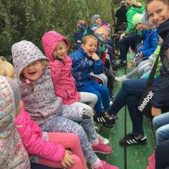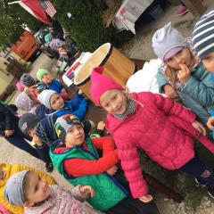Wycieczka do gospodarstwa agroturystycznego „Na Górce” przyniosła Żabką i Biedronką wiele wrażeń. Dzieci obcowały ze zwierzętami zagrodowymi, ulubieńcem był szczeniaczek o imieniu Iskierka. Poznały procedurę wypieku chlebka. Wyrabiały ciasto i piekły podpłomyki. Odwiedziły warsztat tkacki, podziwiały gobeliny oraz zapoznały się z tradycyjnymi ludowymi strojami z naszego regionu. Dzieci ozdabiały sylwety zwierząt wypalone w drewnie, oglądały szmaciane laleczki, które Pani Jadzia samodzielnie wykonuje w swoim gospodarstwie. Nawet jedną z nich otrzymały w prezencie. Piekły kiełbaski oraz kosztowały domowe ciasta oraz pyszny chlebek. Ogromną atrakcją była dla dzieci przejażdżka furmanką, którą bardzo chciały wracać do przedszkola