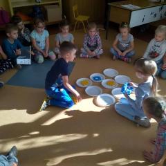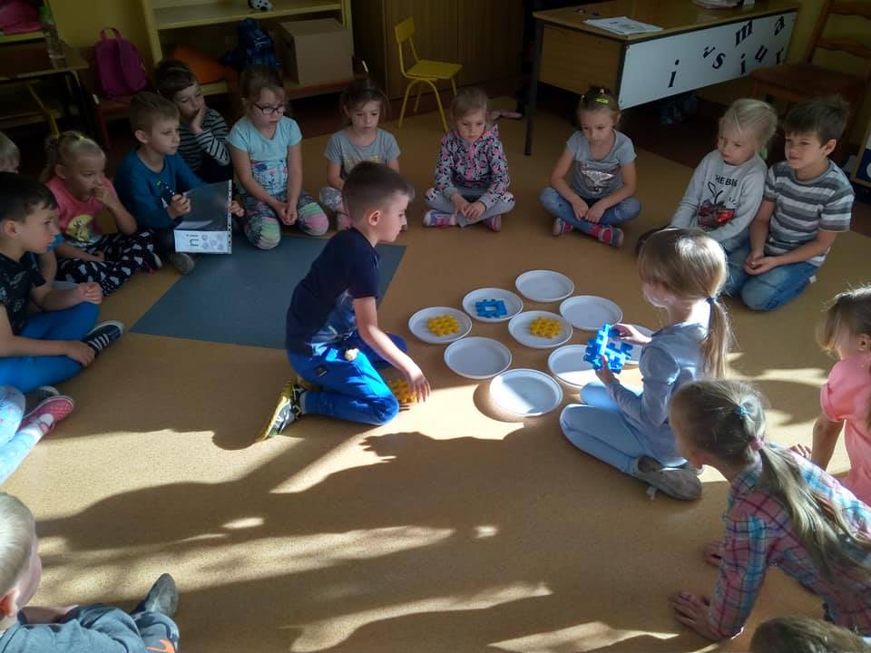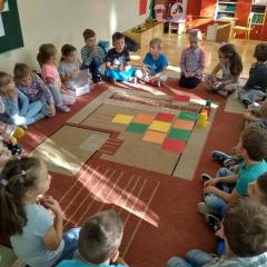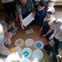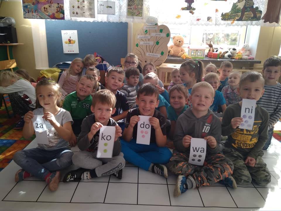 W ramach Code Week w piątek zakodowaliśmy przedszkole bawiąc się w "podchody". Wędrowaliśmy od sali do sali, w których były przygotowane zadania z kodowania. Za każde wykonane zadanie dzieci zabierały sylabę z różną ilości kropek. Po powrocie do swojej sali dzieci układając zebrane sylaby wg wzrastającej ilości kropek odczytali hasło: ZAKODOWANI.