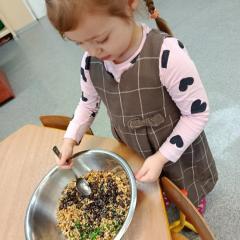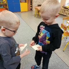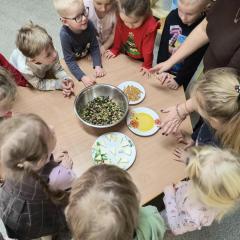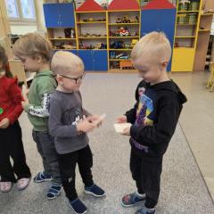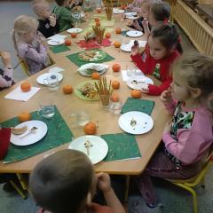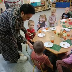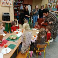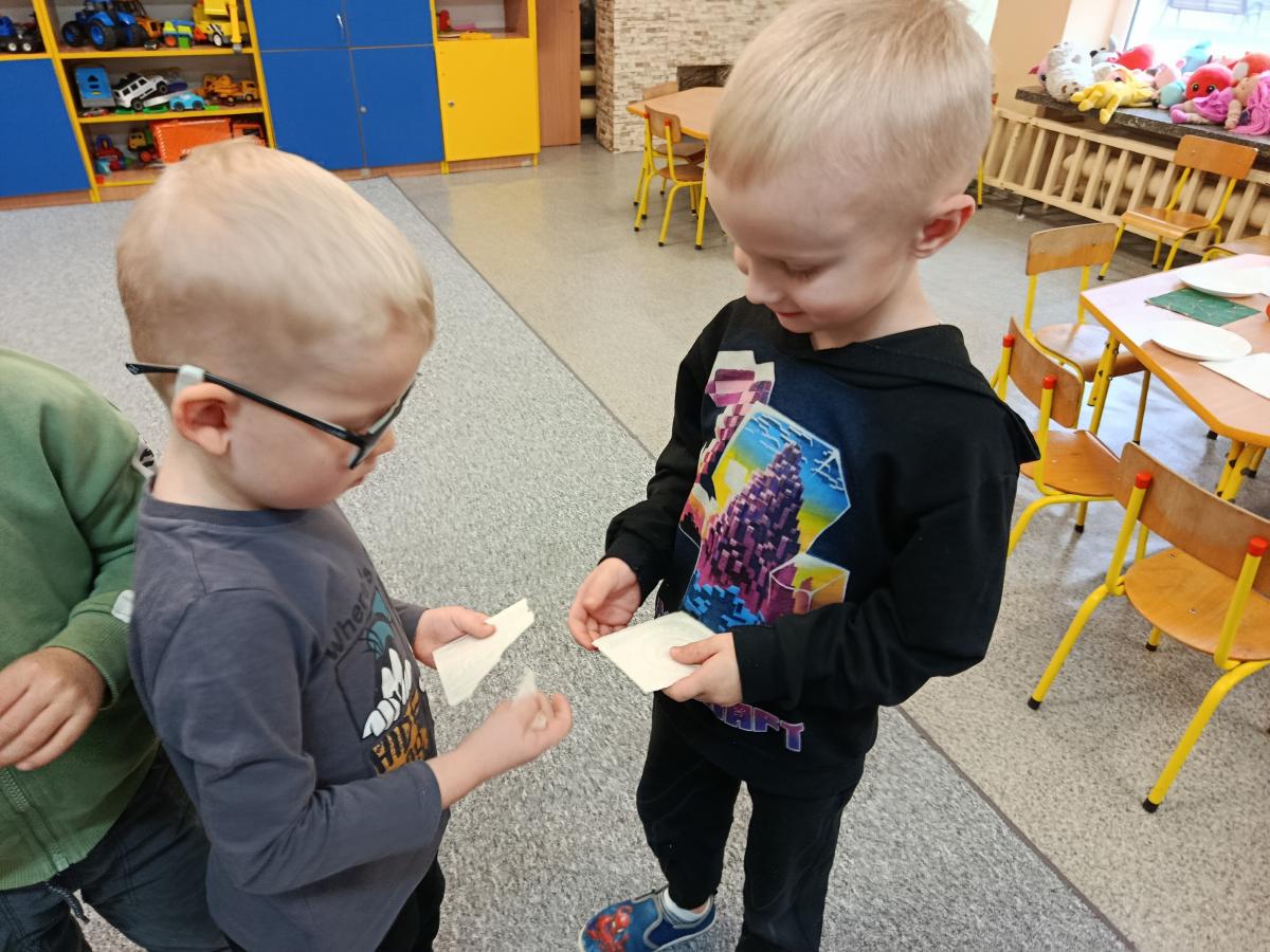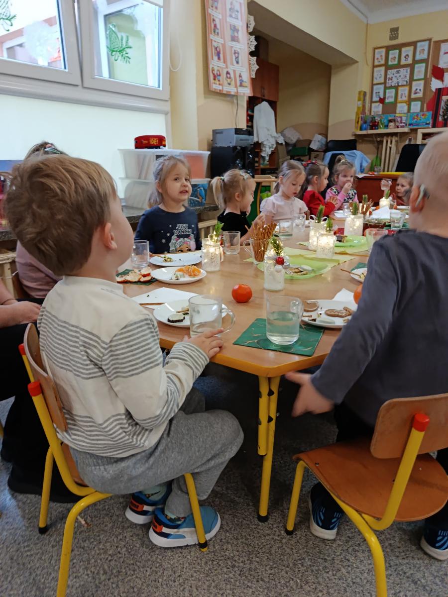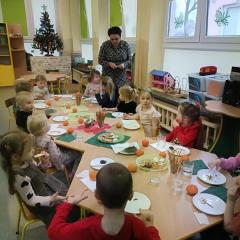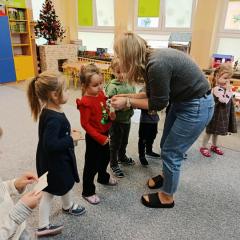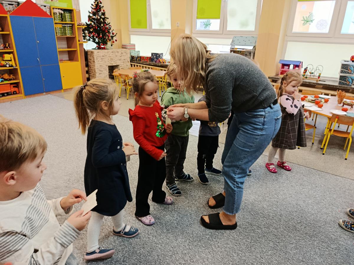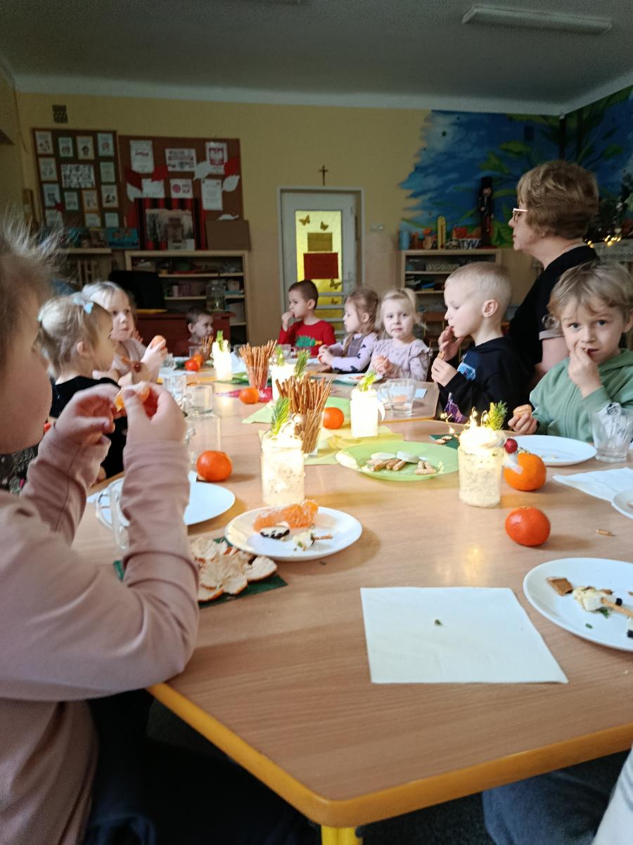 Grupa „Motylki” przygotowała uroczystą wigilię – dzieci zadbały o pięknie nakryty stół oraz świąteczne przekąski. Dzięki księdzu Robertowi odbyło się tradycyjne dzielenie opłatkiem, podczas którego składano sobie serdeczne życzenia bożonarodzeniowe. Spotkanie przebiegało w ciepłej i życzliwej atmosferze, sprzyjającej wspólnemu przeżywaniu zbliżających się Świąt Bożego Narodzenia. Ważnym elementem uroczystości było wspólne kolędowanie, które wprowadziło wszystkich w świąteczny nastrój. Do składania życzeń dołączyła również Pani Dyrektor. Na nadchodzące Święta Bożego Narodzenia życzymy wszystkim zdrowia, radości, rodzinnego ciepła oraz pomyślności w Nowym Roku.