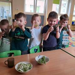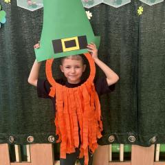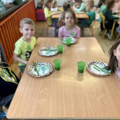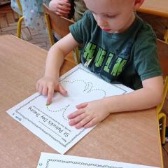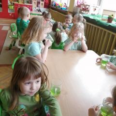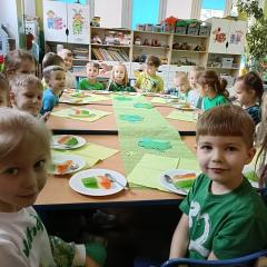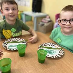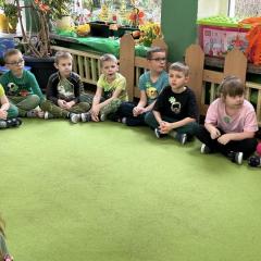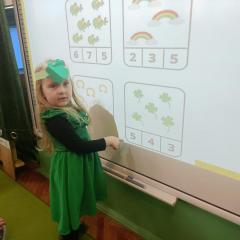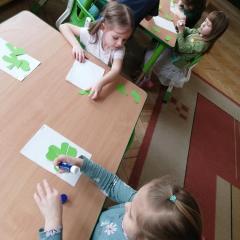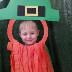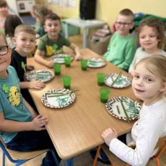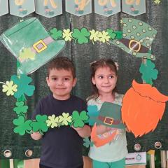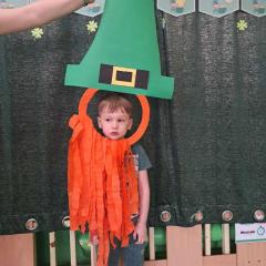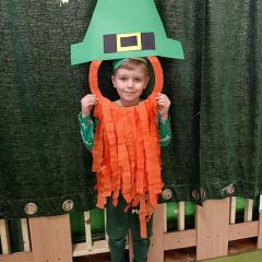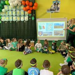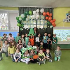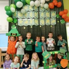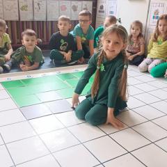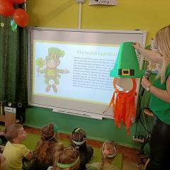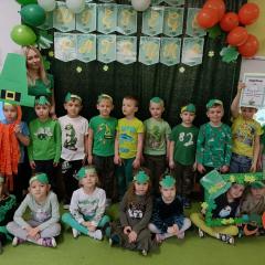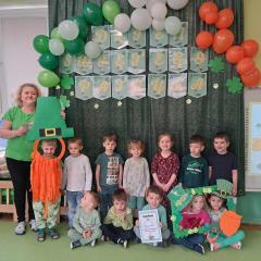 Z okazji Dnia Świętego Patryka w naszym przedszkolu odbyły się radosne obchody tego irlandzkiego święta narodowego i religijnego. Obowiązującym kolorem tego dnia była zieleń, nawiązująca do trawiastego krajobrazu Irlandii i symbolizująca koniczynę. W tym dniu poznaliśmy legendę o św. Patryku – patronie Irlandii, zwyczaje i symbole związane z tym świętem oraz dowiedzieliśmy się jak wygląda flaga tego kraju. Poznaliśmy małego skrzata Irlandii o imieniu Leprechaun, który, jak głosi legenda, ukrywa złoto na końcu tęczy. Wzbogaciliśmy nasze słownictwo o nowe wyrazy w języku angielskim – rainbow, gold, shamrock, Leprechaun oraz świetnie się bawiliśmy przy dźwiękach irlandzkiej muzyki. Ponieważ nasze przedszkolaki bardzo lubią kodowanie, postanowiliśmy lepricona. Przećwiczyliśmy też matematykę, licząc zielone koniczynki i monety skrzata. Na zakończenie czekała na nas , smaczna niespodzianka – galaretka w kolorze irlandzkiej flagi pyszny zielony sok oraz żelki. Wszystkim Przedszkolakom ten dzień upłynął bardzo ciekawie i radośnie.