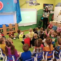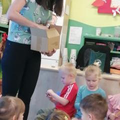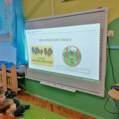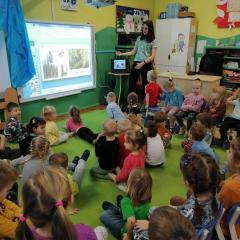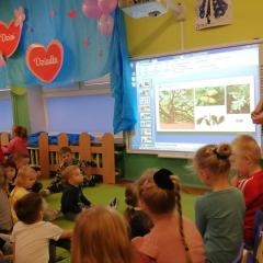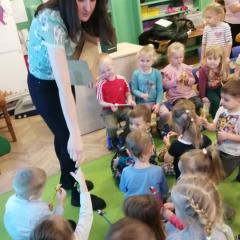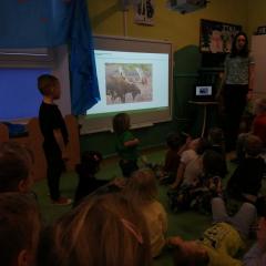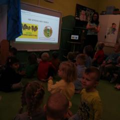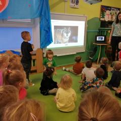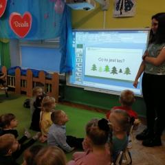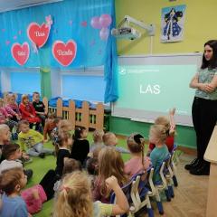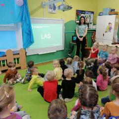 Dnia 20 stycznia 2023 r. najmłodsze przedszkolaki z grupy „Misie” i „Jeżyki” 3 - 4latki, uczestniczyły w interesujących zajęciach edukacyjnych, które poprowadziła Pani Magdalena Struzikiewicz z Nadleśnictwa Kielce. Na zajęciach zostało poruszonych wiele kwestii dotyczących lasu w tym, zwierząt i roślin spotykanych na jego terenach. Wspólnie z dziećmi, omówione zostały również korzyści, jakie człowiek czerpie z tego jakże cennego daru natury. Ważnym aspektem stał się również sposób zachowania na terenie lasu, zarówno dzieci jak i dorosłych. Najbardziej bliskim dzieciom tematem, okazała się idea dokarmiania zwierząt podczas zimy. Przedszkolaki chętnie odpowiadały na zadawane pytania, prezentując wysoki poziom wiedzy. W nagrodę za aktywny udział, Pani Magdalena obdarowała dzieciaki upominkami a radość, jaką okazali podopieczni, stała się wyrazem wdzięczności dla prowadzącej. To były interesujące zajęcia, rozwijające zainteresowania dzieci otaczającą przyrodą.